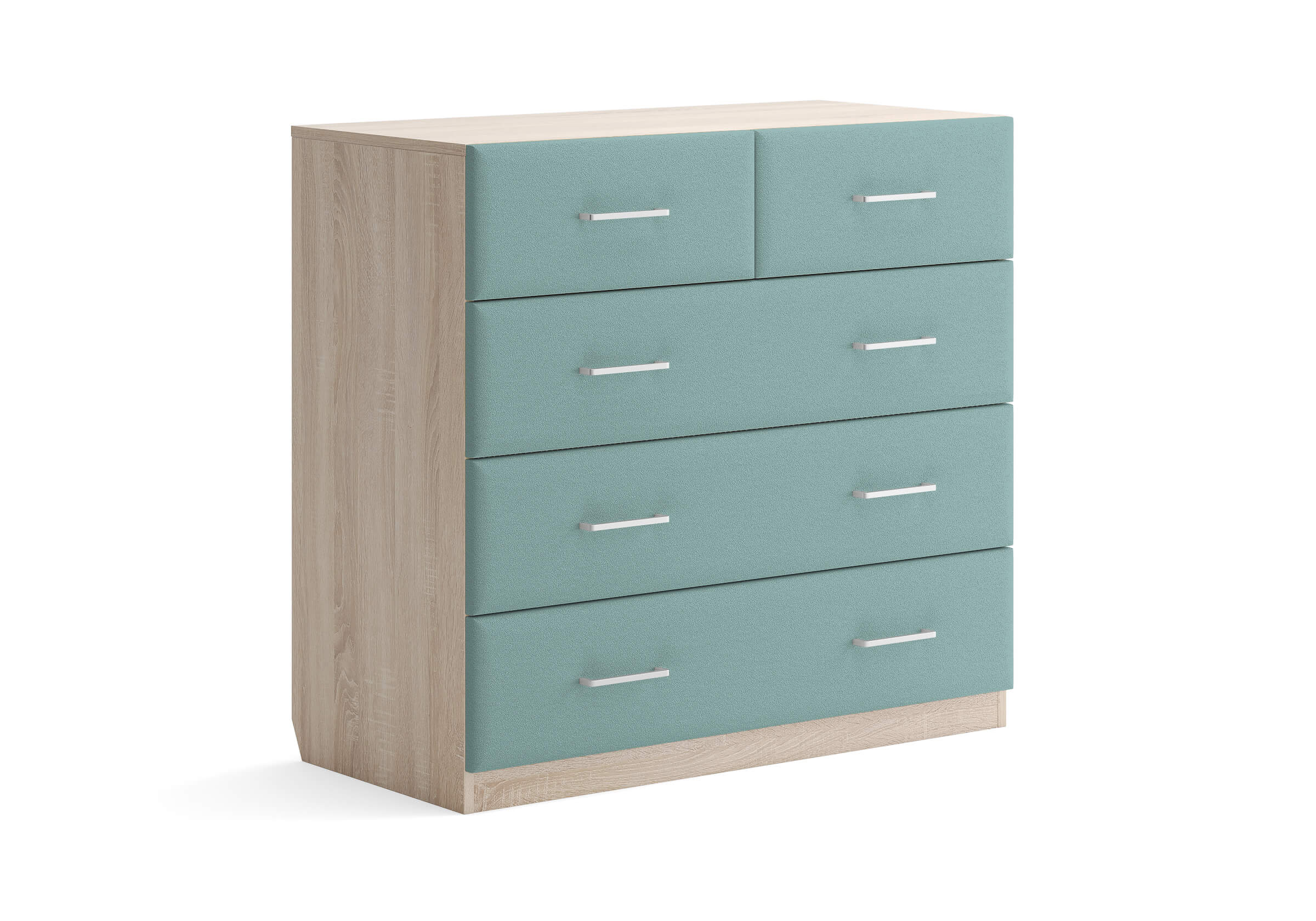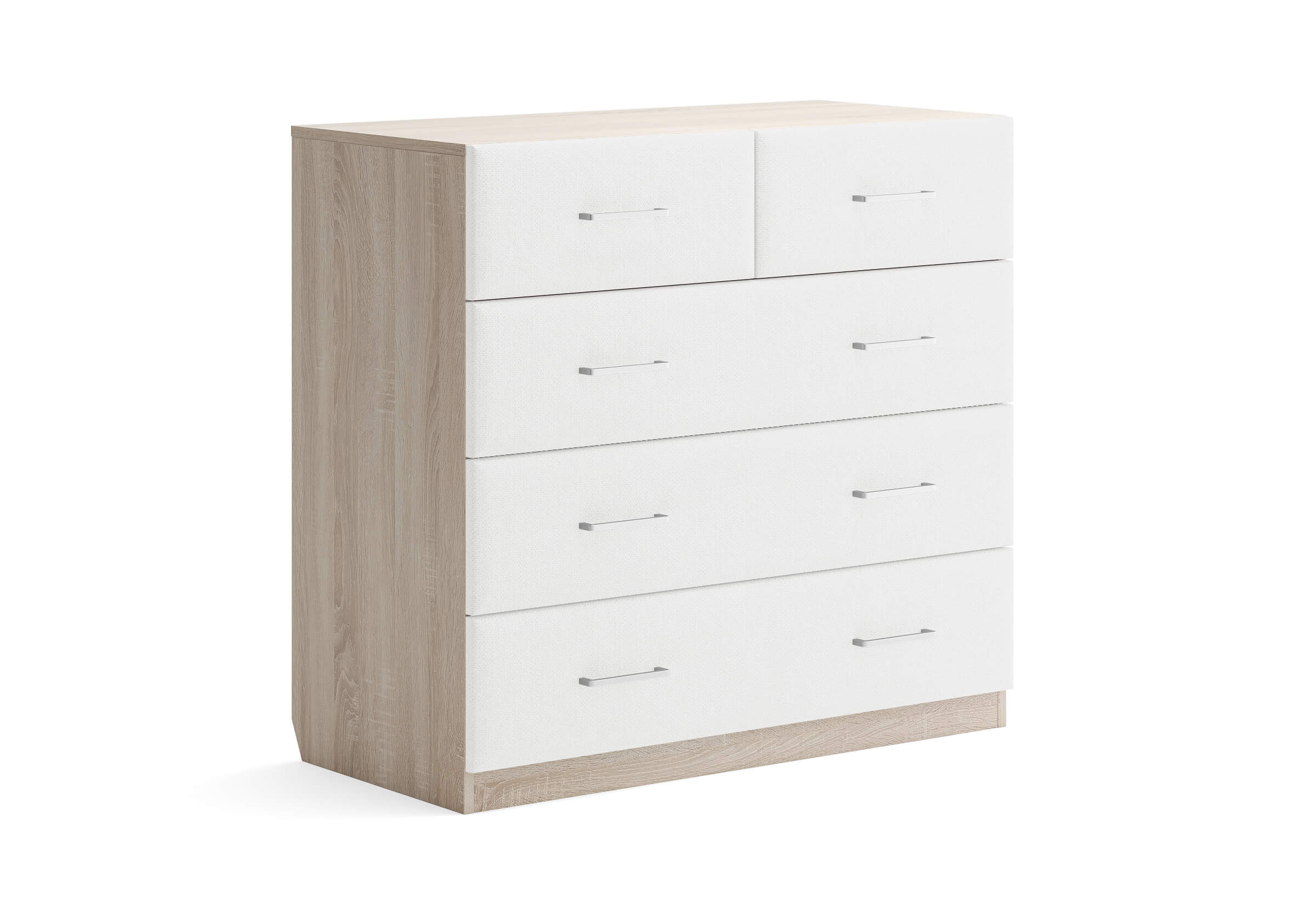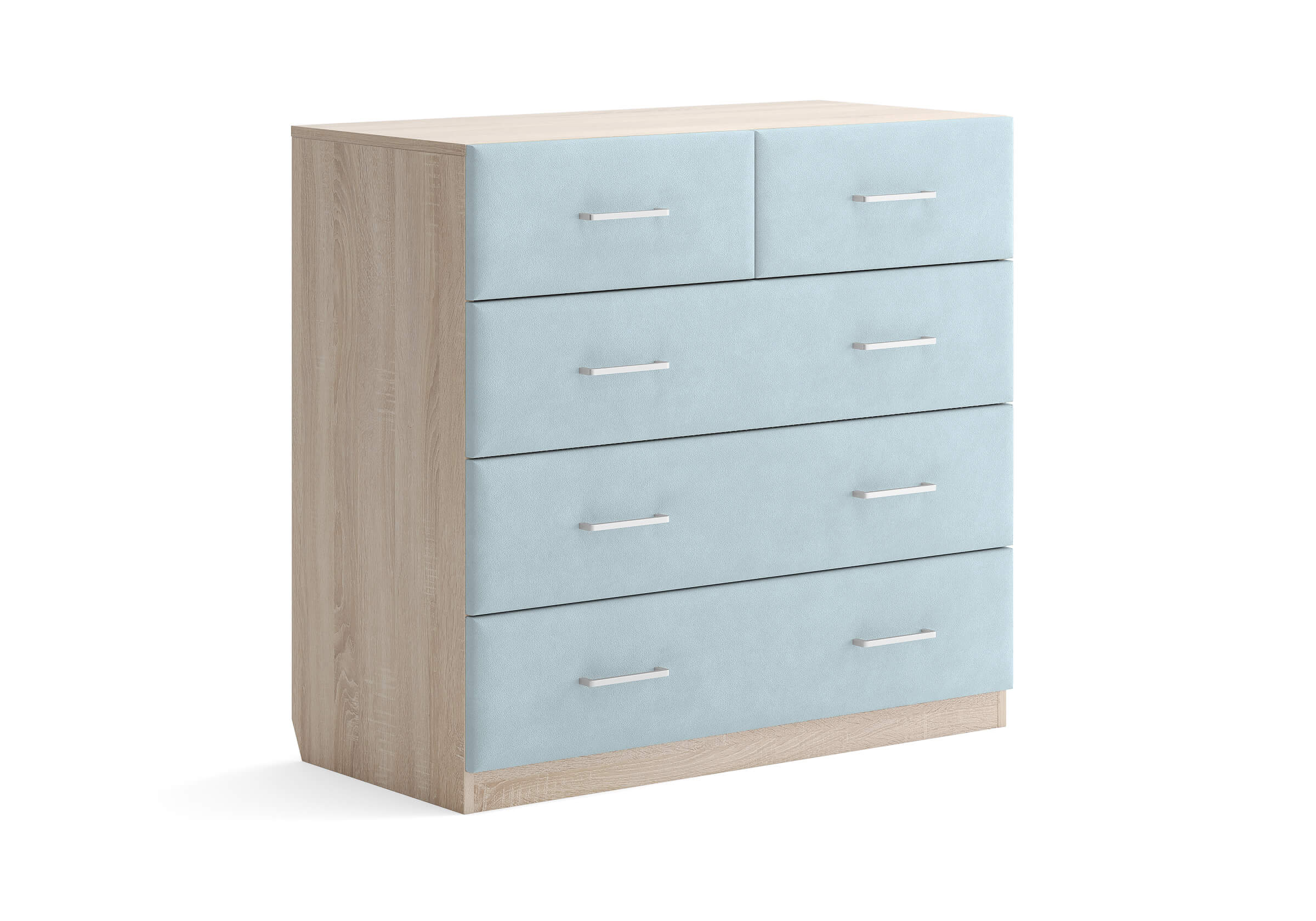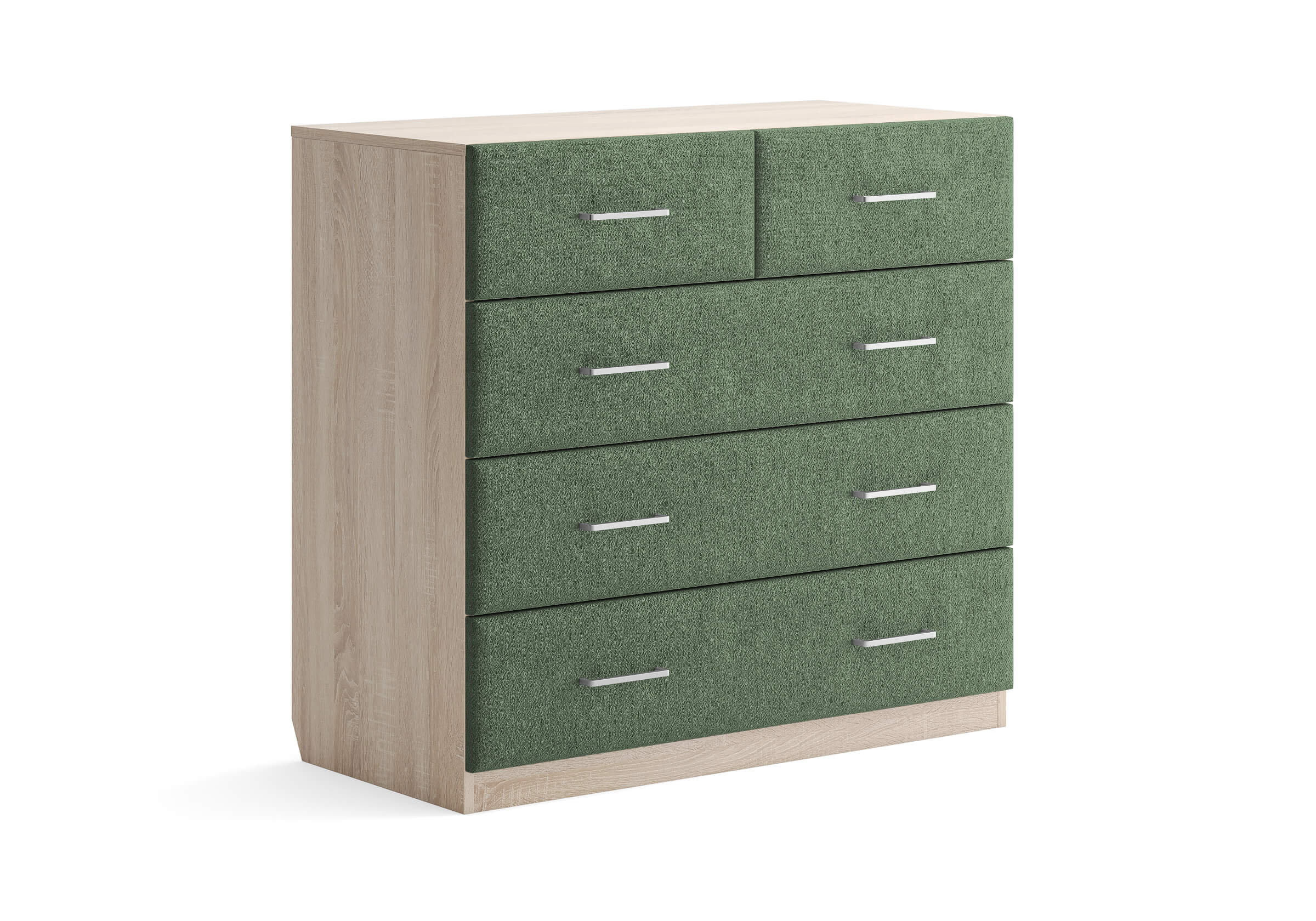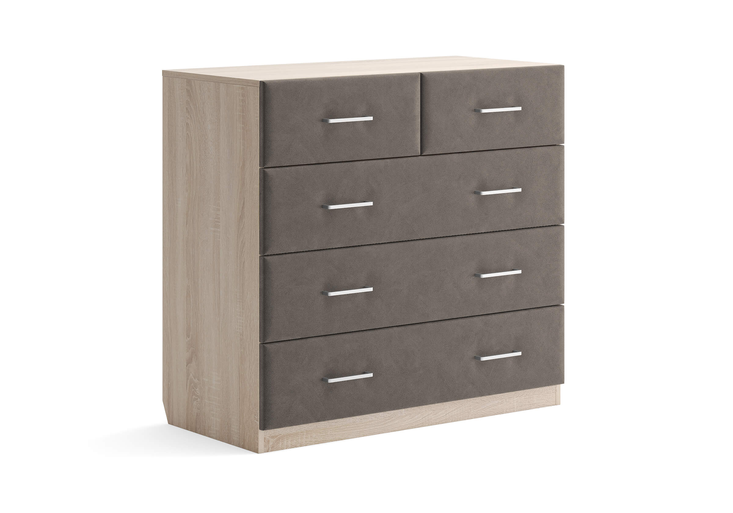 Комбинированный комод Tomas с пятью вместительными ящиками станет элегантным дополнением интерьера. Корпус, выполненный из высококачественной ЛДСП, гарантирует прочность и долговечность, а мягкие фасады в ткани и изящные металлические ручки добавят уют. Комод имеет скос под плинтус, это позволяет устанавливать его вплотную к стене. Благодаря своему дизайну и широкому выбору вариантов исполнения комод можно разместить не только в спальне, но и в прихожей или гостиной.