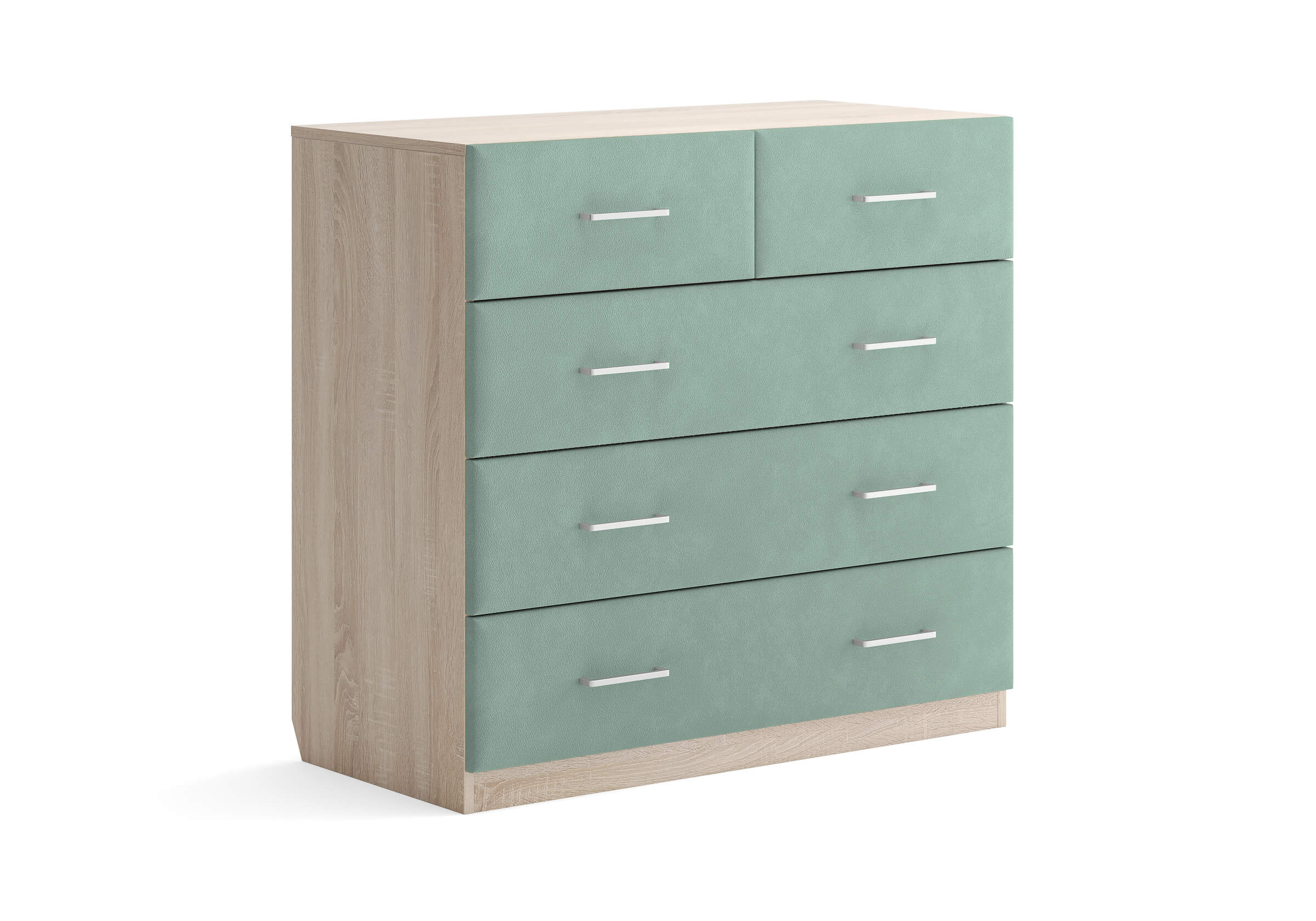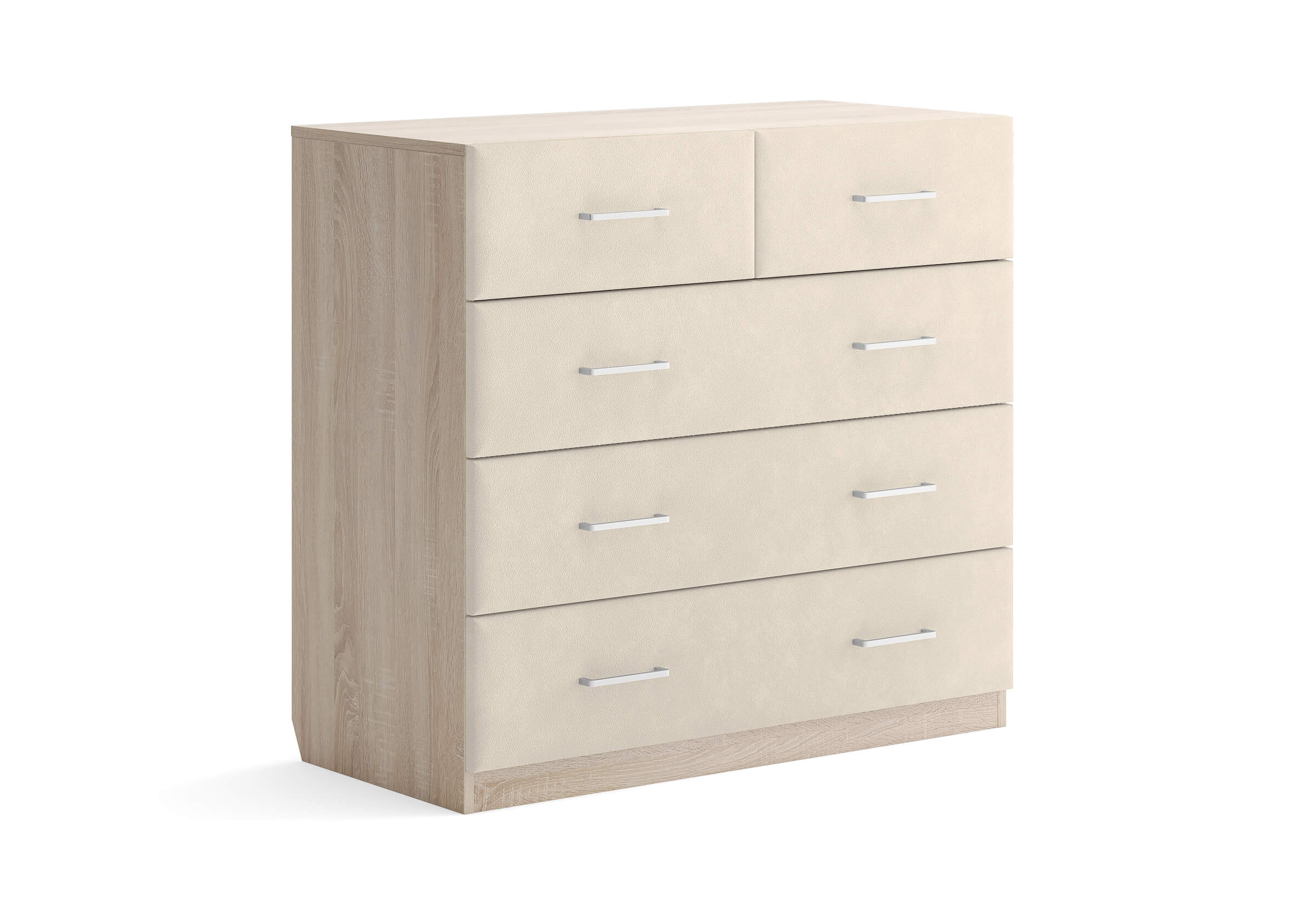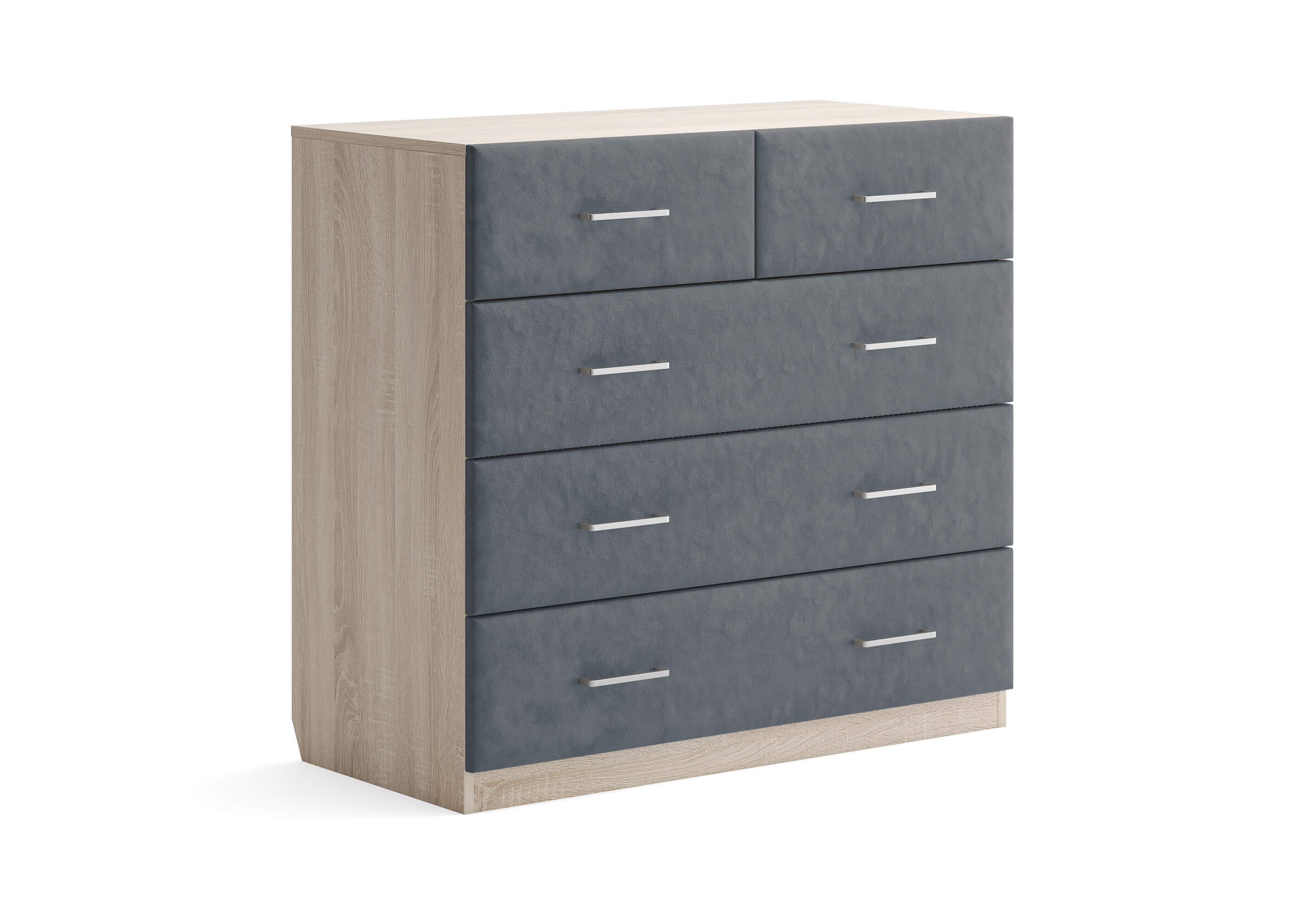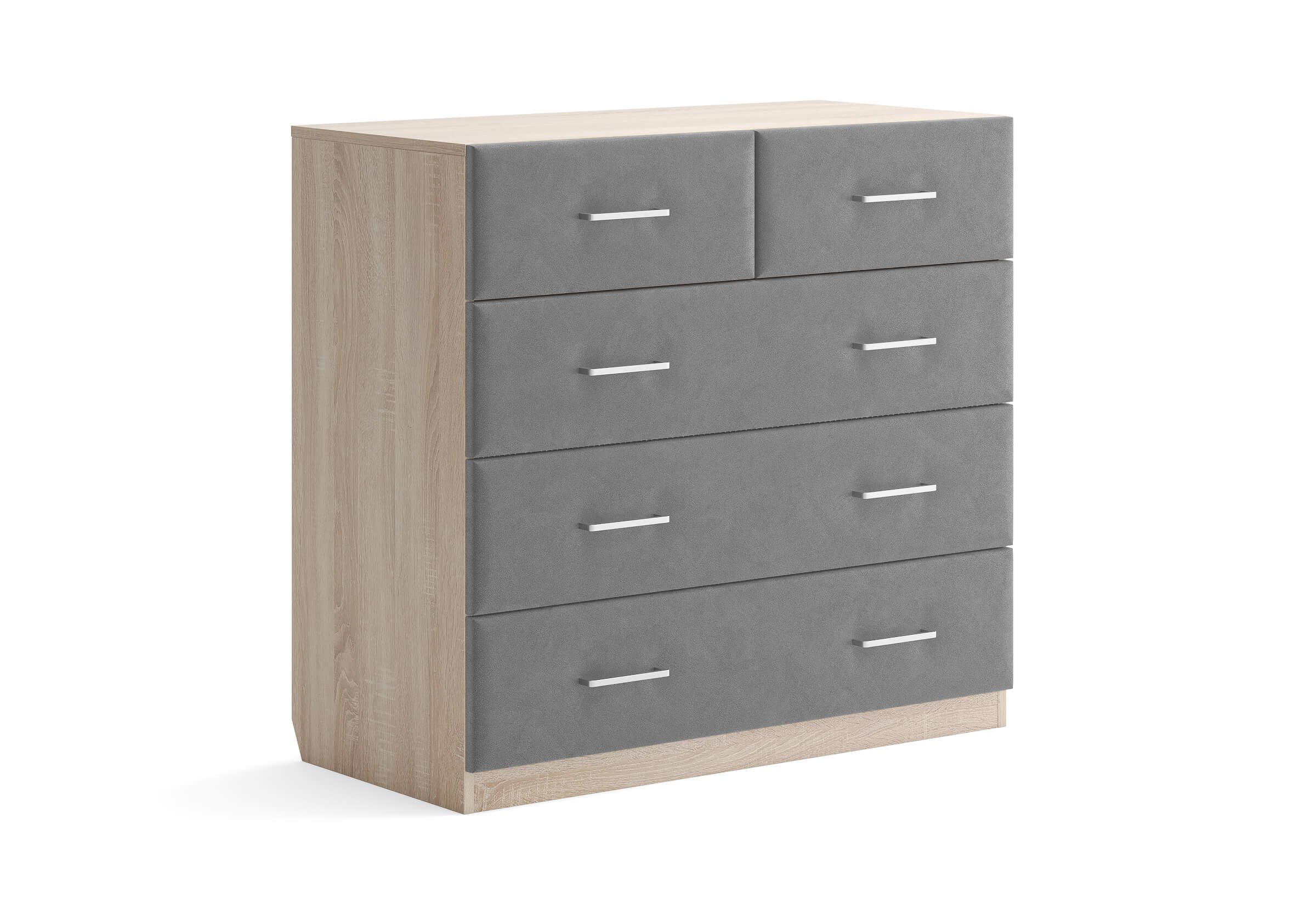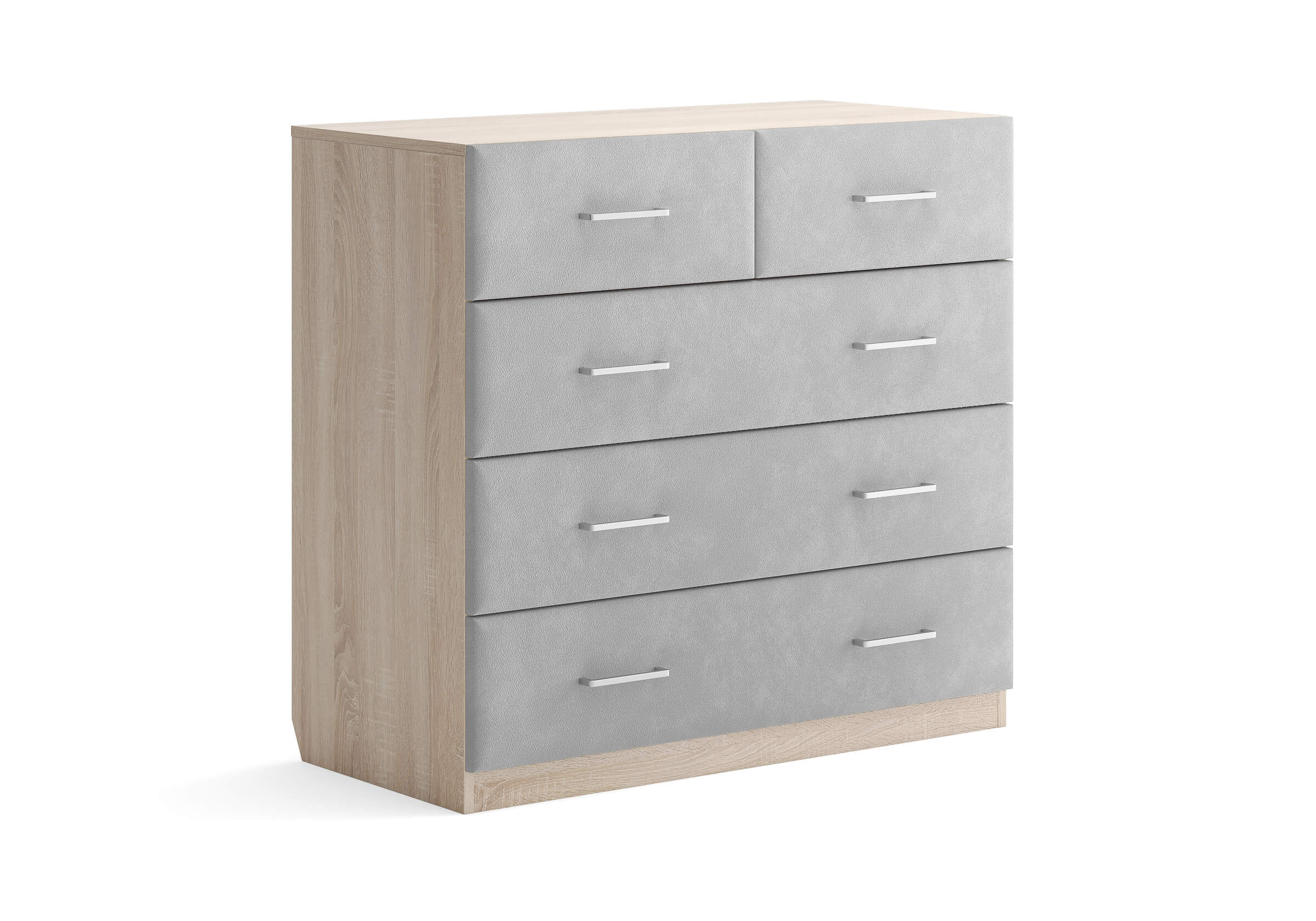 Комбинированный комод Tomas с пятью вместительными ящиками станет элегантным дополнением интерьера. Корпус, выполненный из высококачественной ЛДСП, гарантирует прочность и долговечность, а мягкие фасады в ткани и изящные металлические ручки добавят уют. Комод имеет скос под плинтус, это позволяет устанавливать его вплотную к стене. Благодаря своему дизайну и широкому выбору вариантов исполнения комод можно разместить не только в спальне, но и в прихожей или гостиной.