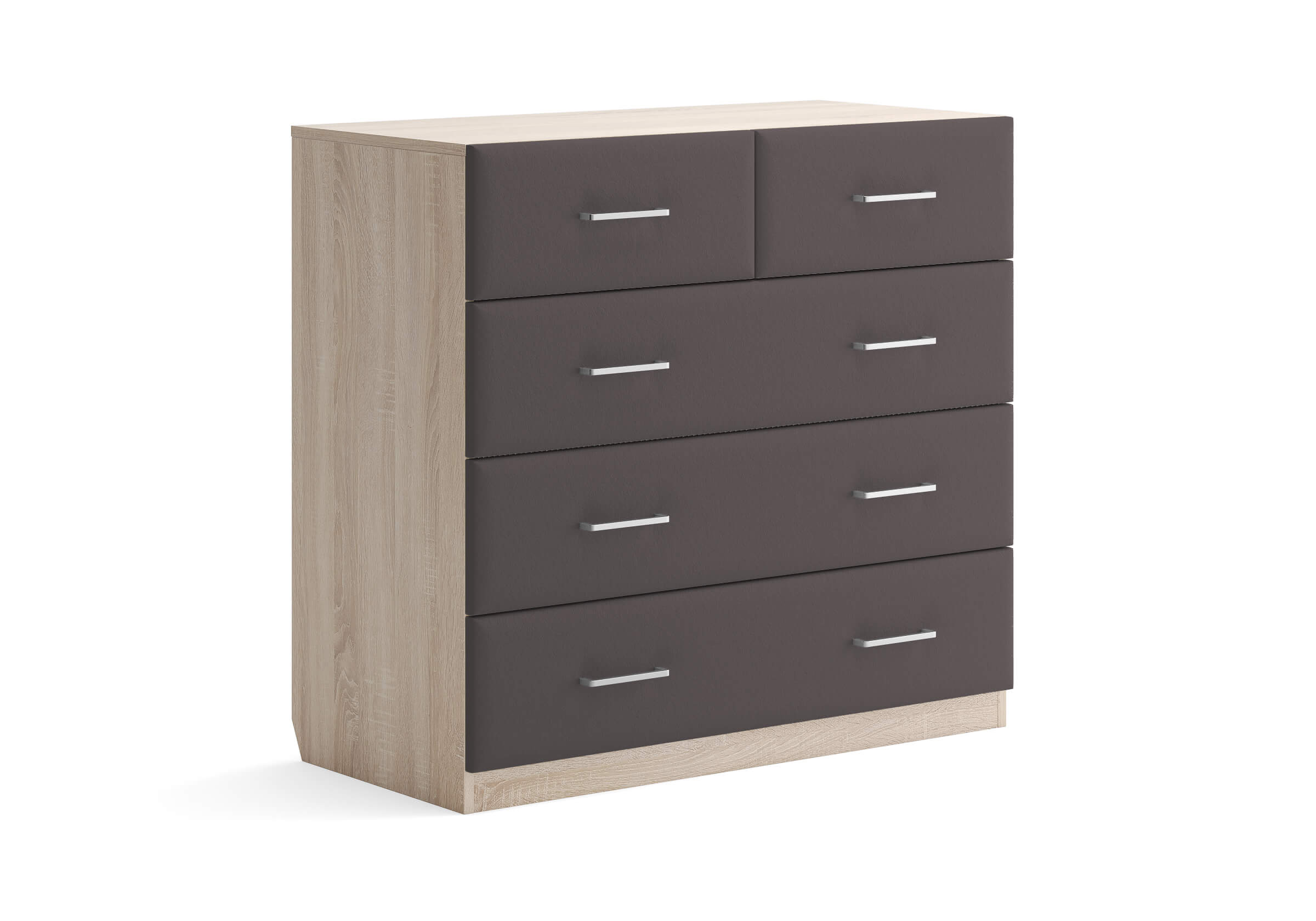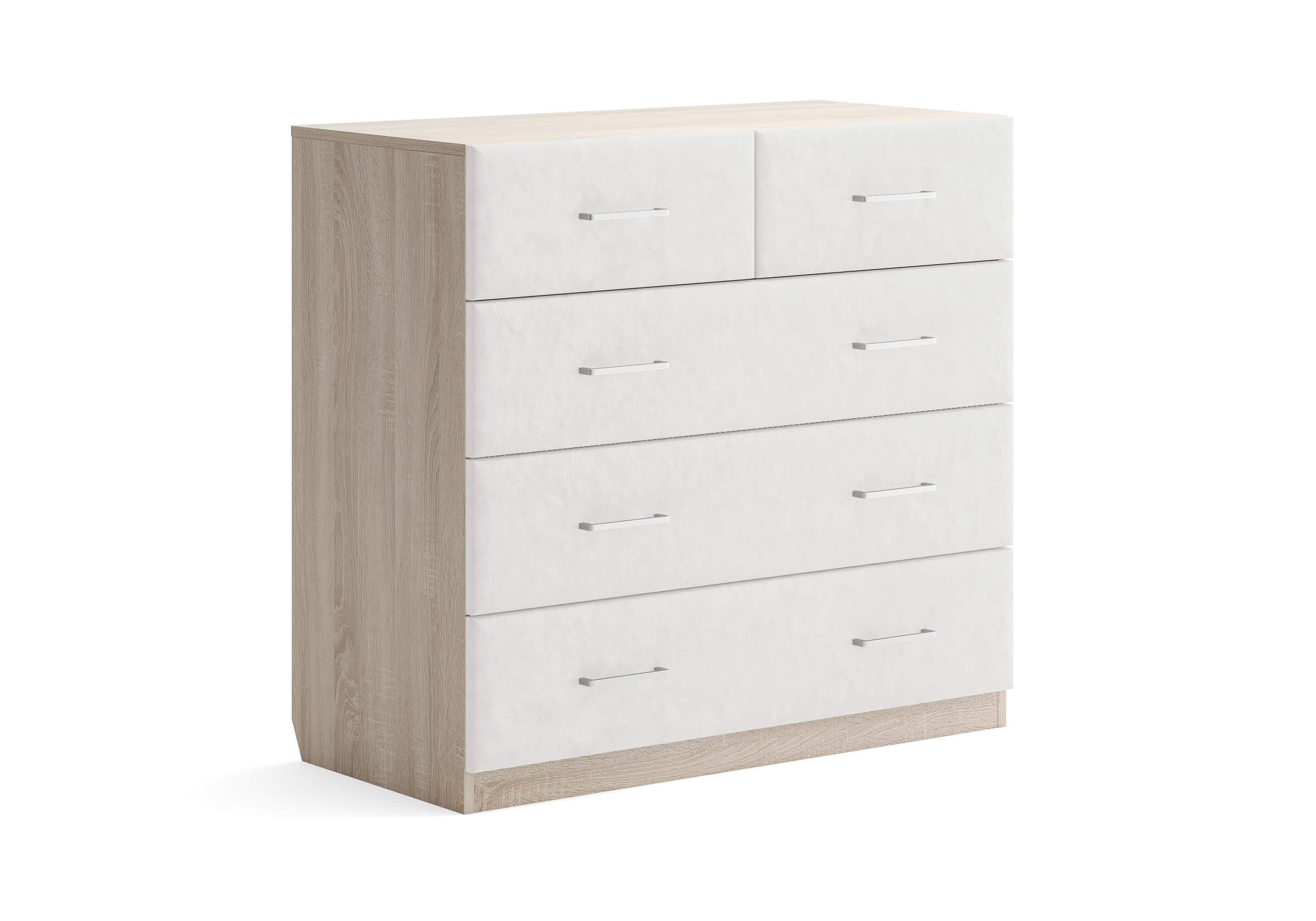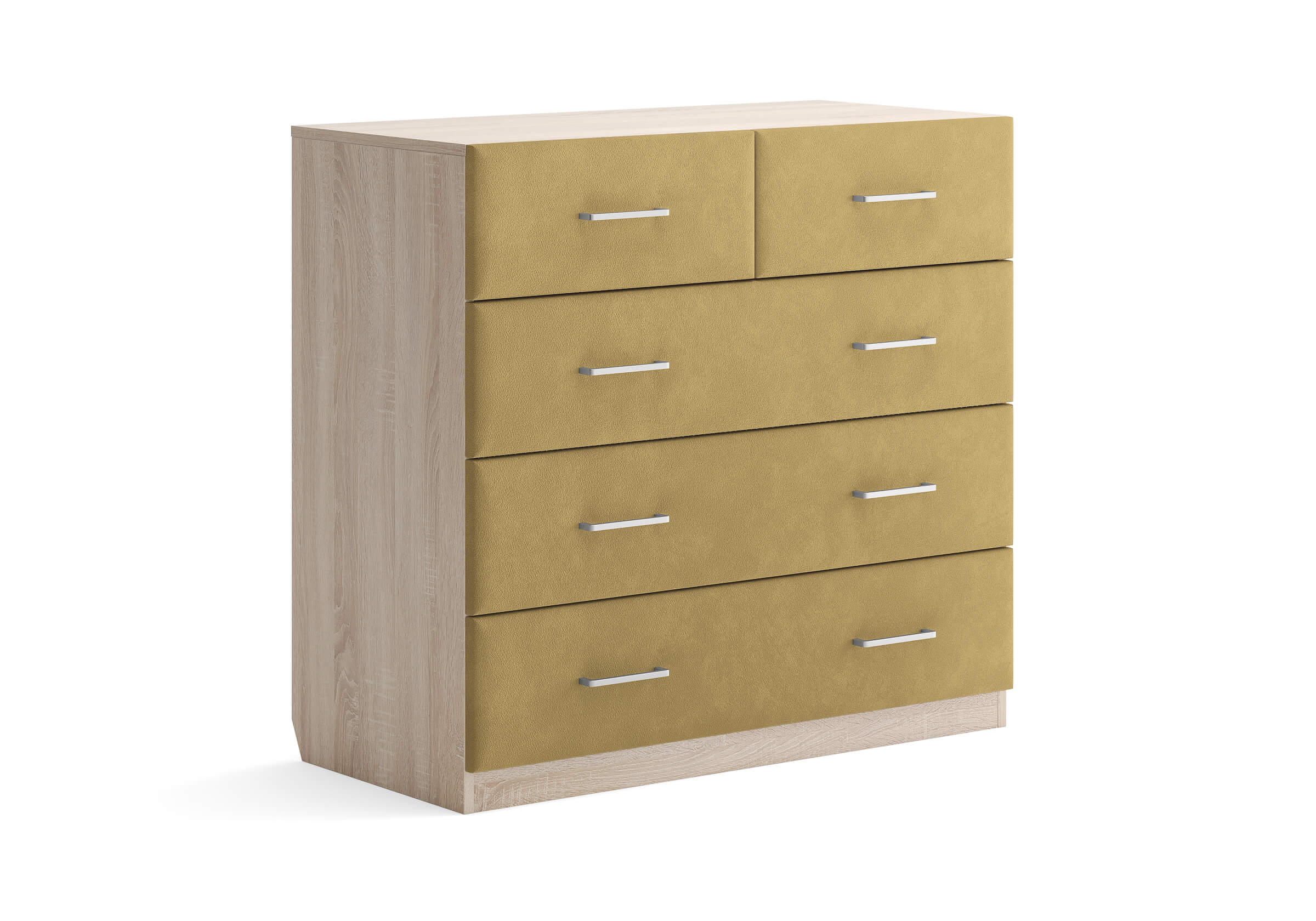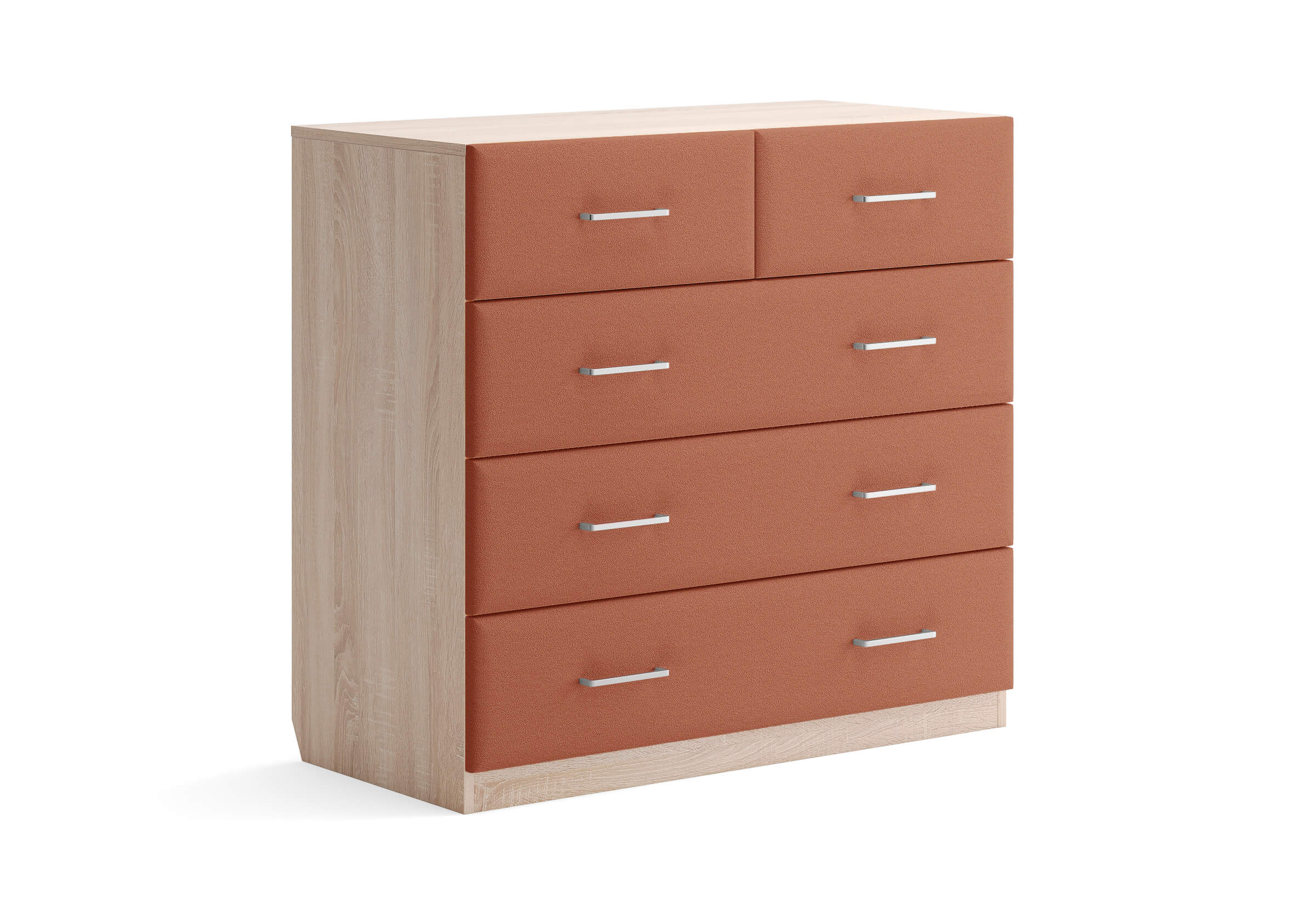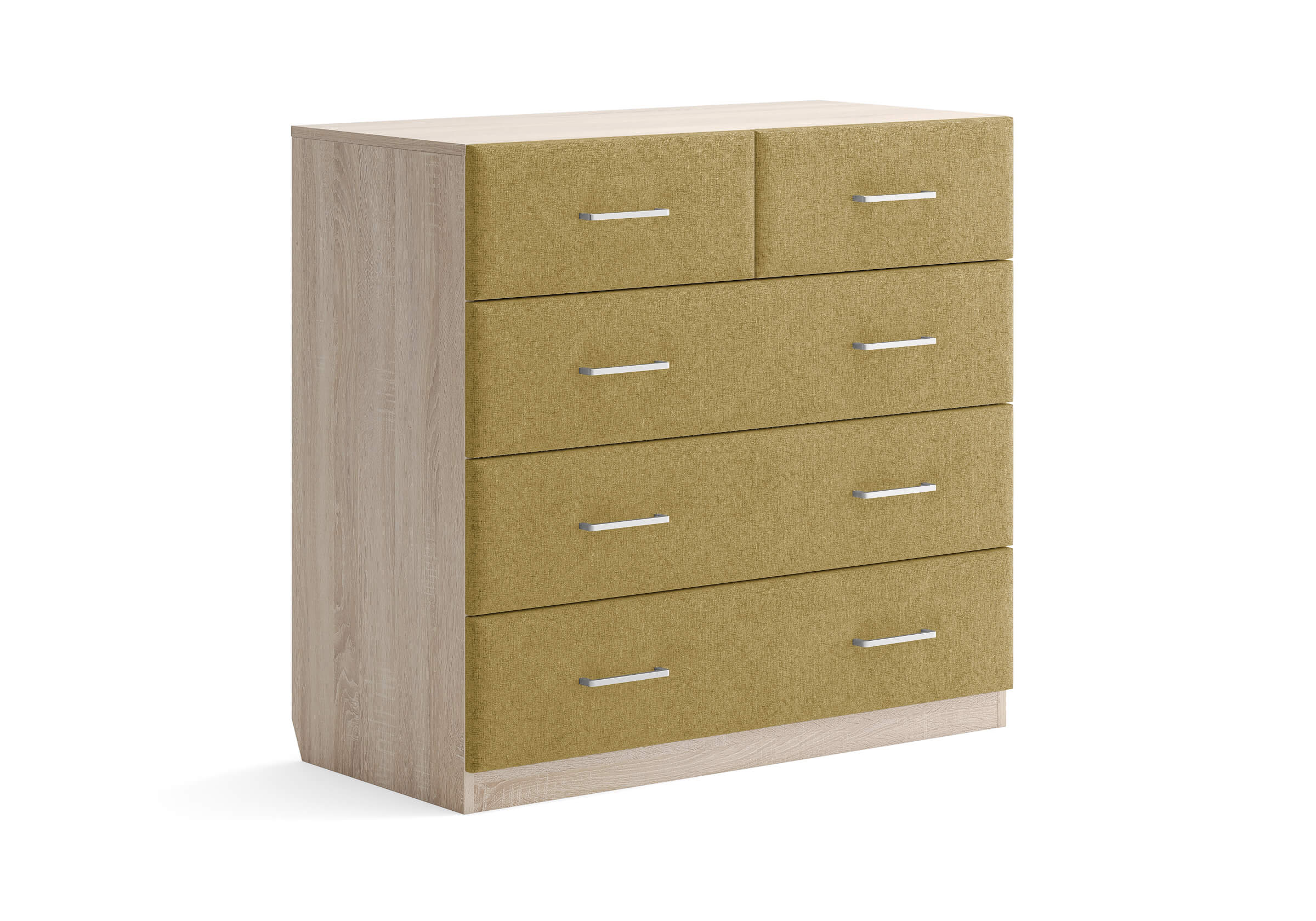 Комбинированный комод Tomas с пятью вместительными ящиками станет элегантным дополнением интерьера. Корпус, выполненный из высококачественной ЛДСП, гарантирует прочность и долговечность, а мягкие фасады в ткани и изящные металлические ручки добавят уют. Комод имеет скос под плинтус, это позволяет устанавливать его вплотную к стене. Благодаря своему дизайну и широкому выбору вариантов исполнения комод можно разместить не только в спальне, но и в прихожей или гостиной.