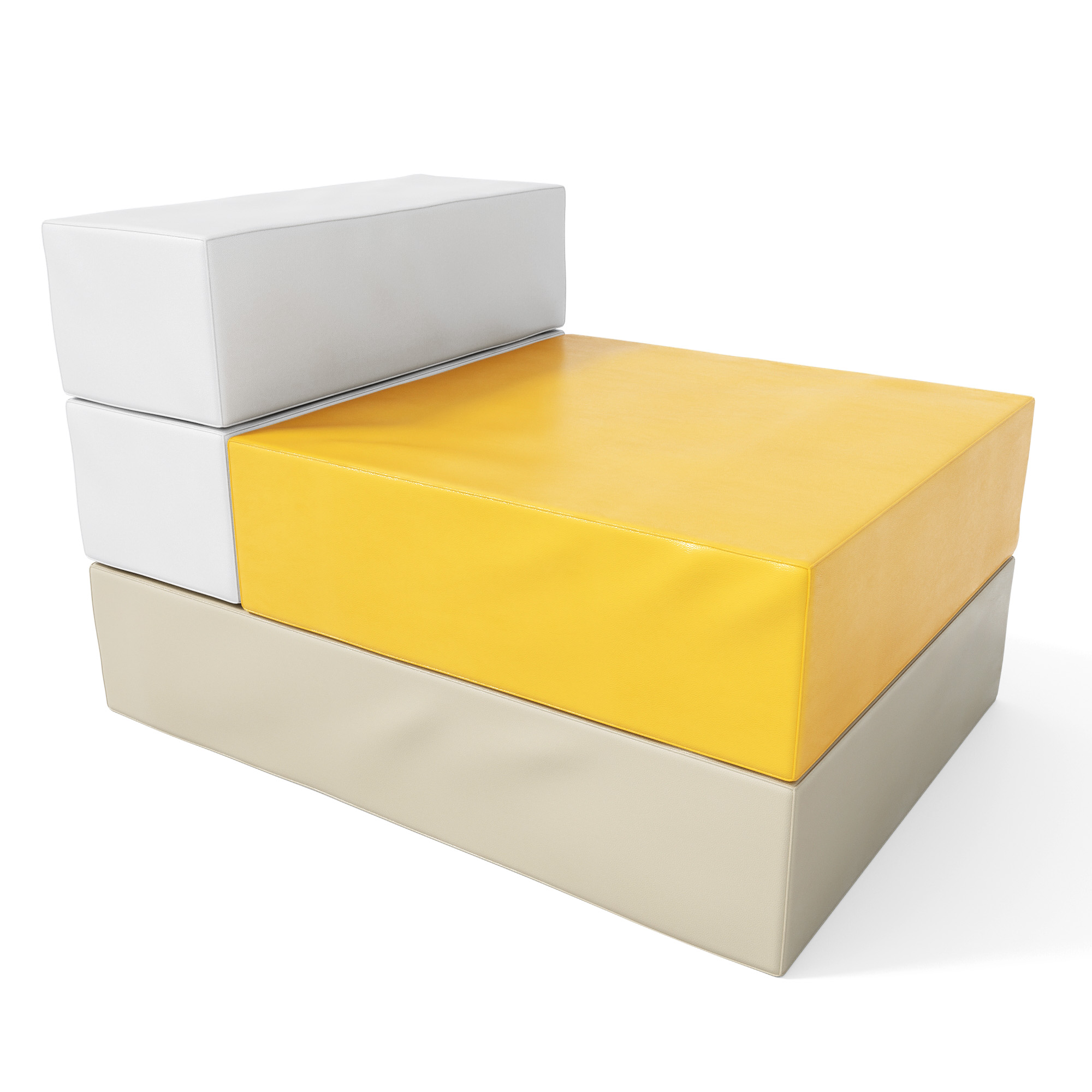 Кресло ДМФ-МК-01.93.04 — состоит из четырех разноцветных деталей, с помощью которых можно создать разнообразные кресла и диванчики для отдыха, а также множество прочих игровых конструкций.