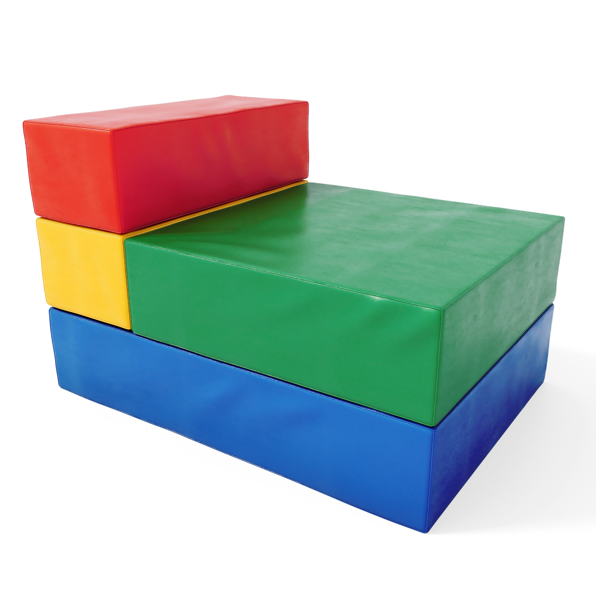 Кресло ДМФ-МК-01.93.04 — состоит из четырех разноцветных деталей, с помощью которых можно создать разнообразные кресла и диванчики для отдыха, а также множество прочих игровых конструкций.