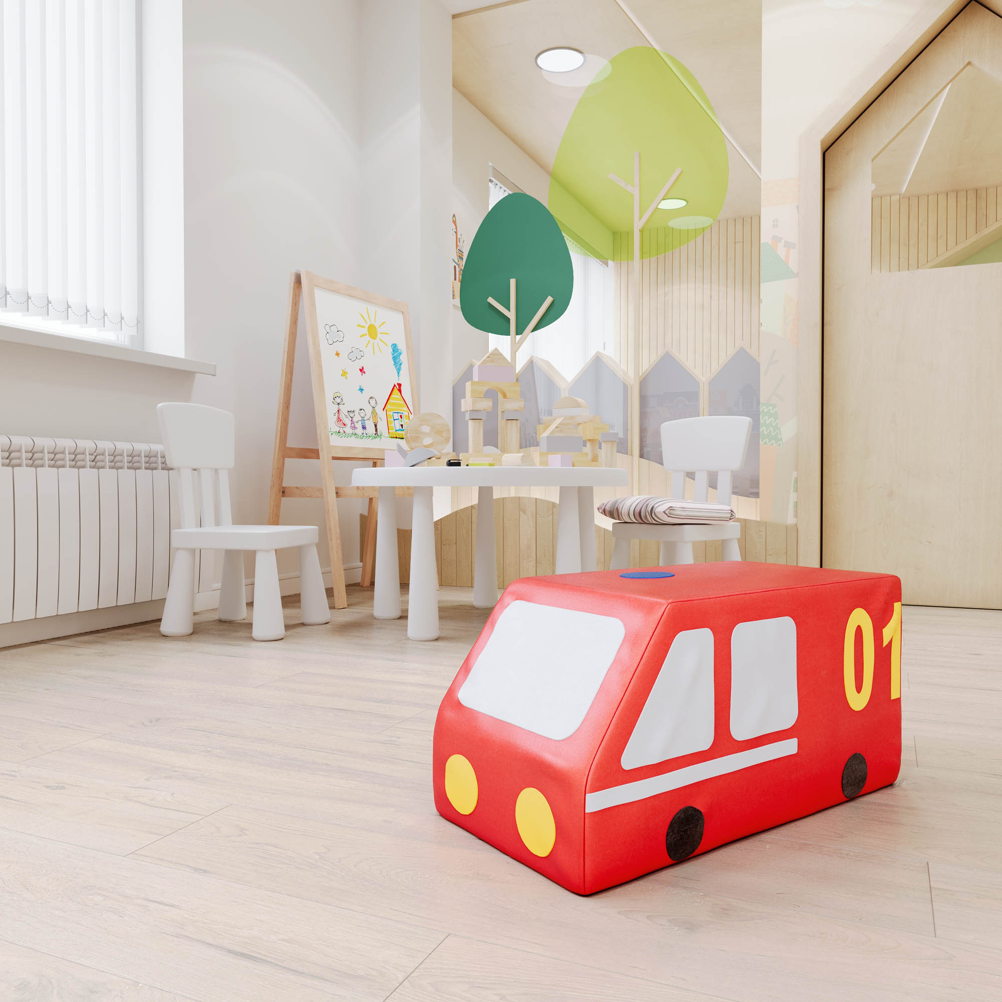Контурная игрушка «Пожарная машина» — мягкая игрушка в виде машины для детей любого возраста. Тренирует вестибулярный аппарат, укрепляет мышцы ног и спины. Игрушку можно использовать вместе с другими мягкими модулями. Подходит для детских игровых комнат в общественных местах, дошкольных и младших школьных учреждениях, можно использовать дома и на даче. Габаритные размеры 600 х 250 х 300. Допустимая нагрузка до 50 кг. Вес с упаковкой 1,5 кг.