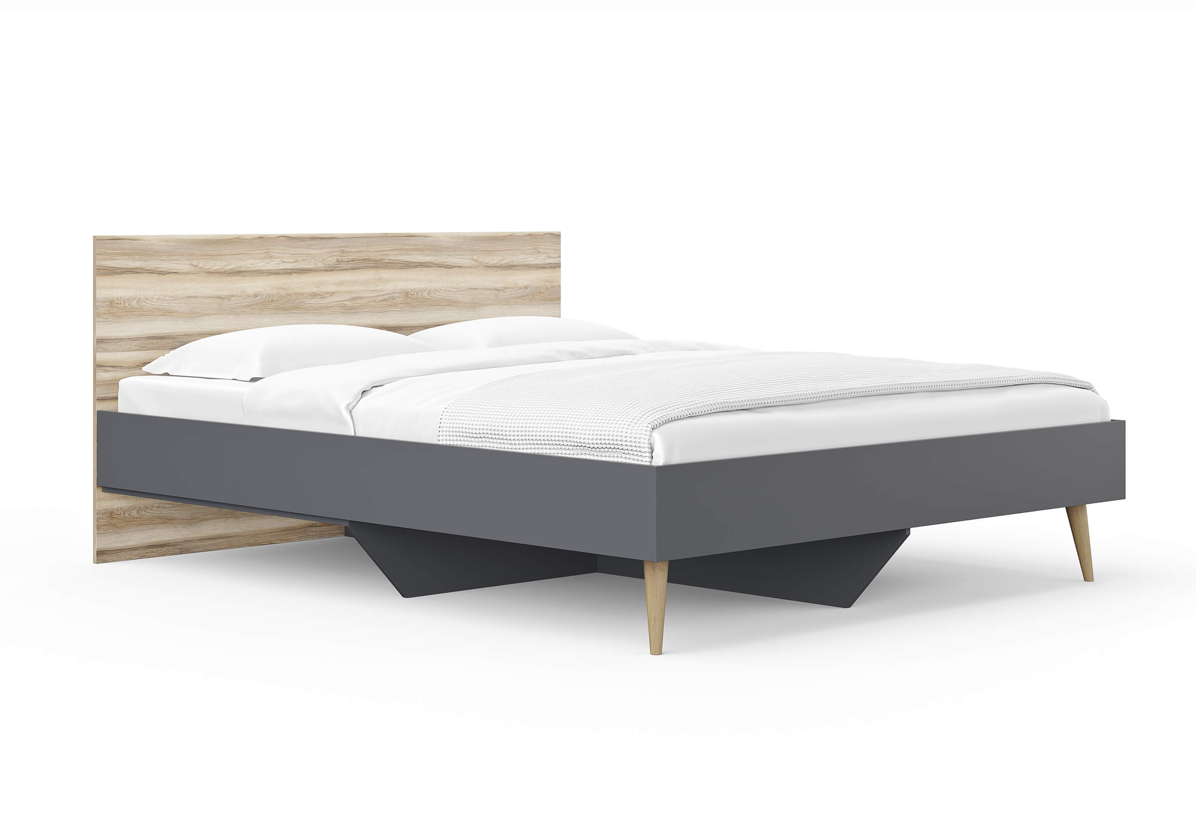 Кровать Ines оригинальное решение для спальни в скандинавском стиле. Благодаря деревянным ножкам кровать смотрится легкой и воздушной. В качестве основания используется настил из ЛДСП. Система усиленных средней и центральной царг позволяют выдерживать высокие нагрузки. Большое расстояние от пола до царги облегчает уборку под кроватью, делает доступной использование робота-пылесоса. Кровать можно укомплектовать ящиками для хранения вещей (приобретаются дополнительно) [ https://sonum.ru/catalog/mebel/yashchik-dlya-khraneniya-veshchey/ ] .