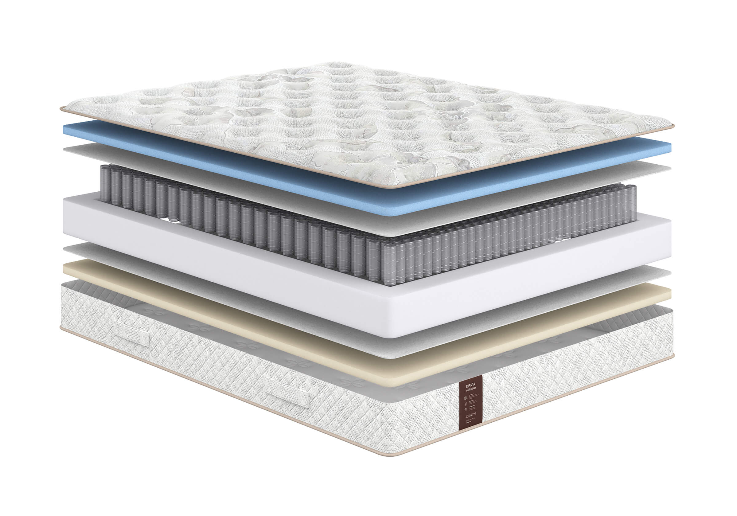 Двусторонний матрас Dianta Optima с разной жесткостью. В матрасе используются материал с эффектом памяти и современный гипоаллергенный материал Foam. Чехол двухстороннего матраса выполнен из высококачественного трикотажа, простеганного на объемном гипоаллергенном синтепоне. Состав: — Турецкий трикотаж, стеганный на высокоэластичной пене и синтепоне — Пена с эффектом памяти — Белый хлопковый войлок — Независимый пружинный блок ChessPocket — Белый хлопковый войлок — Высокоэластичная пена — Усиление по периметру матраса