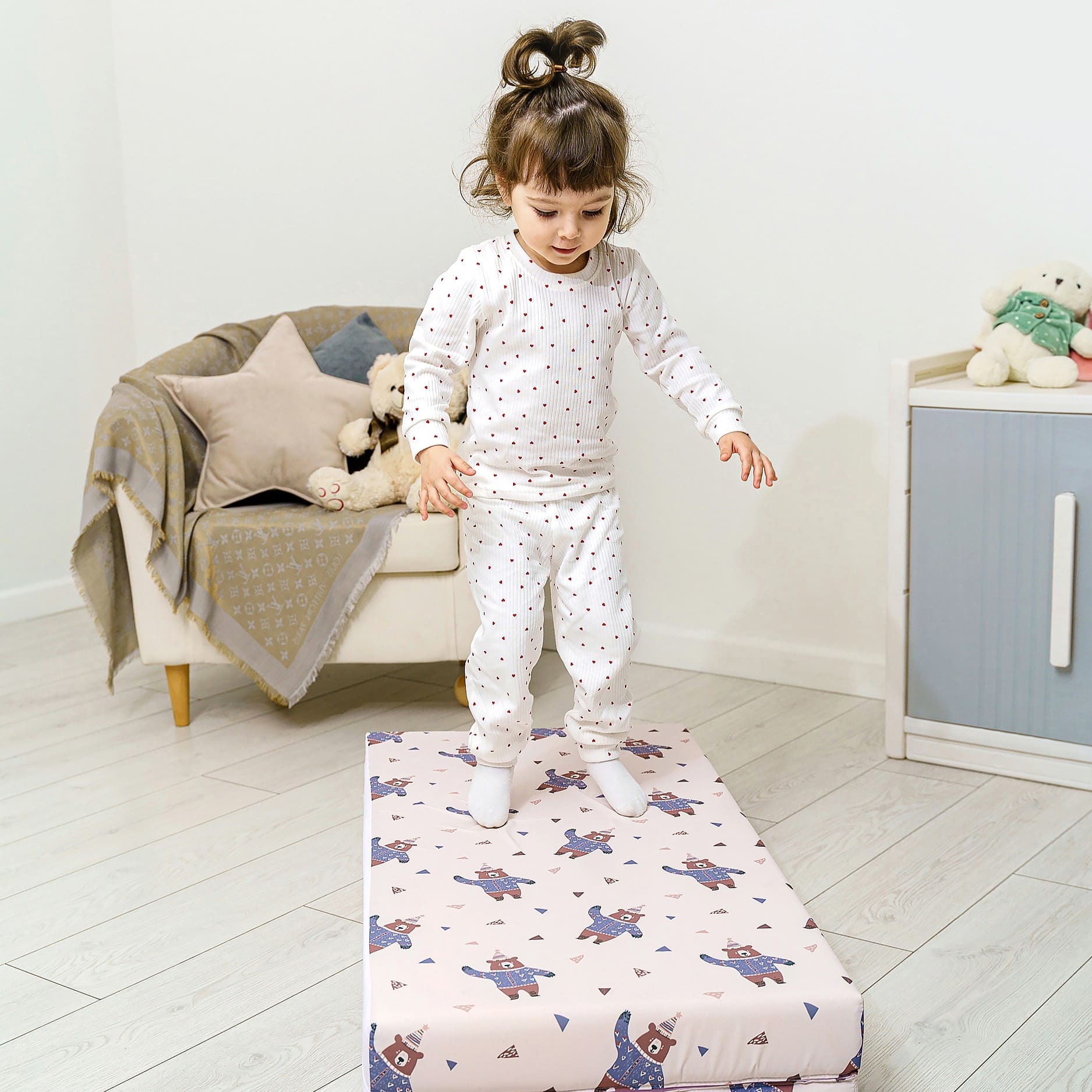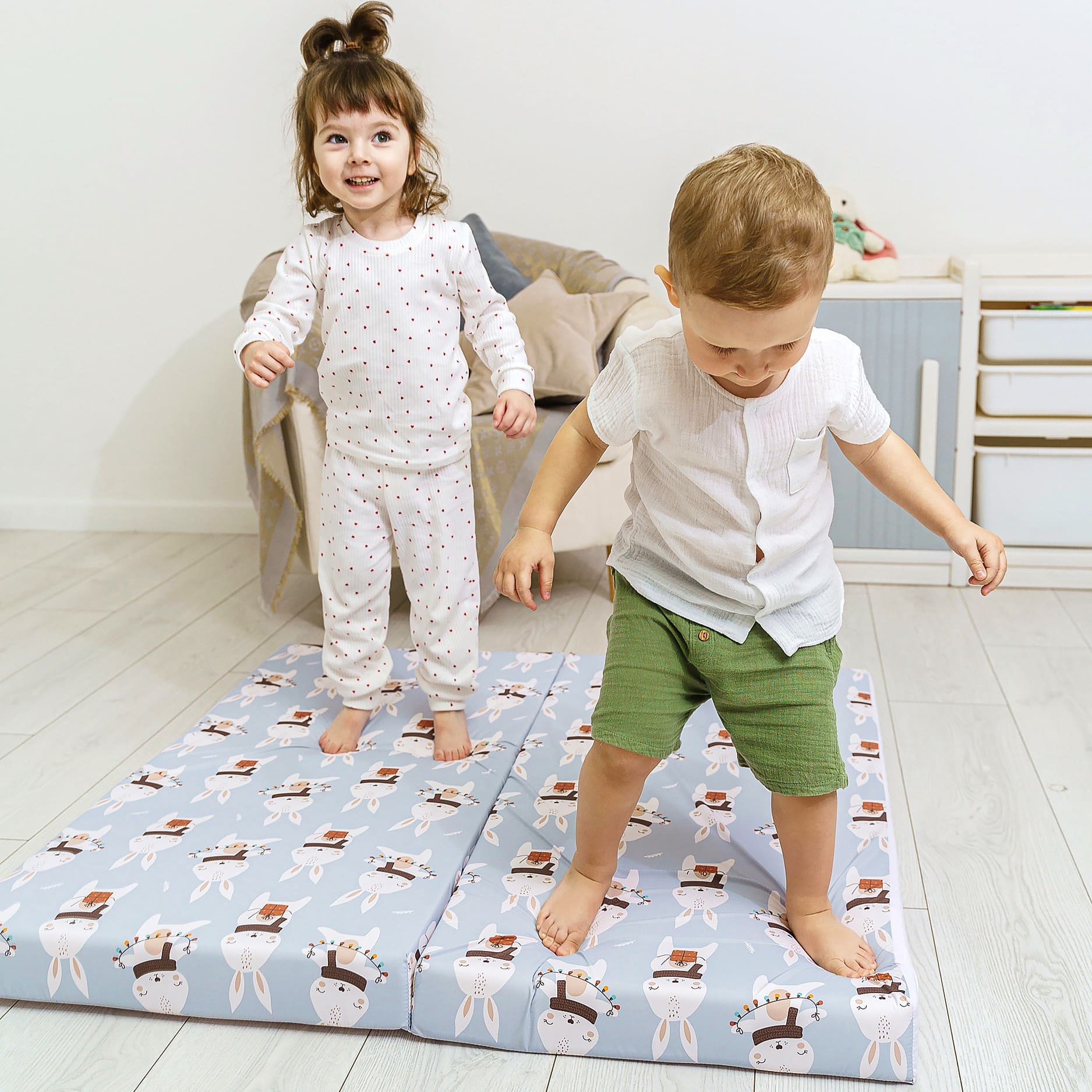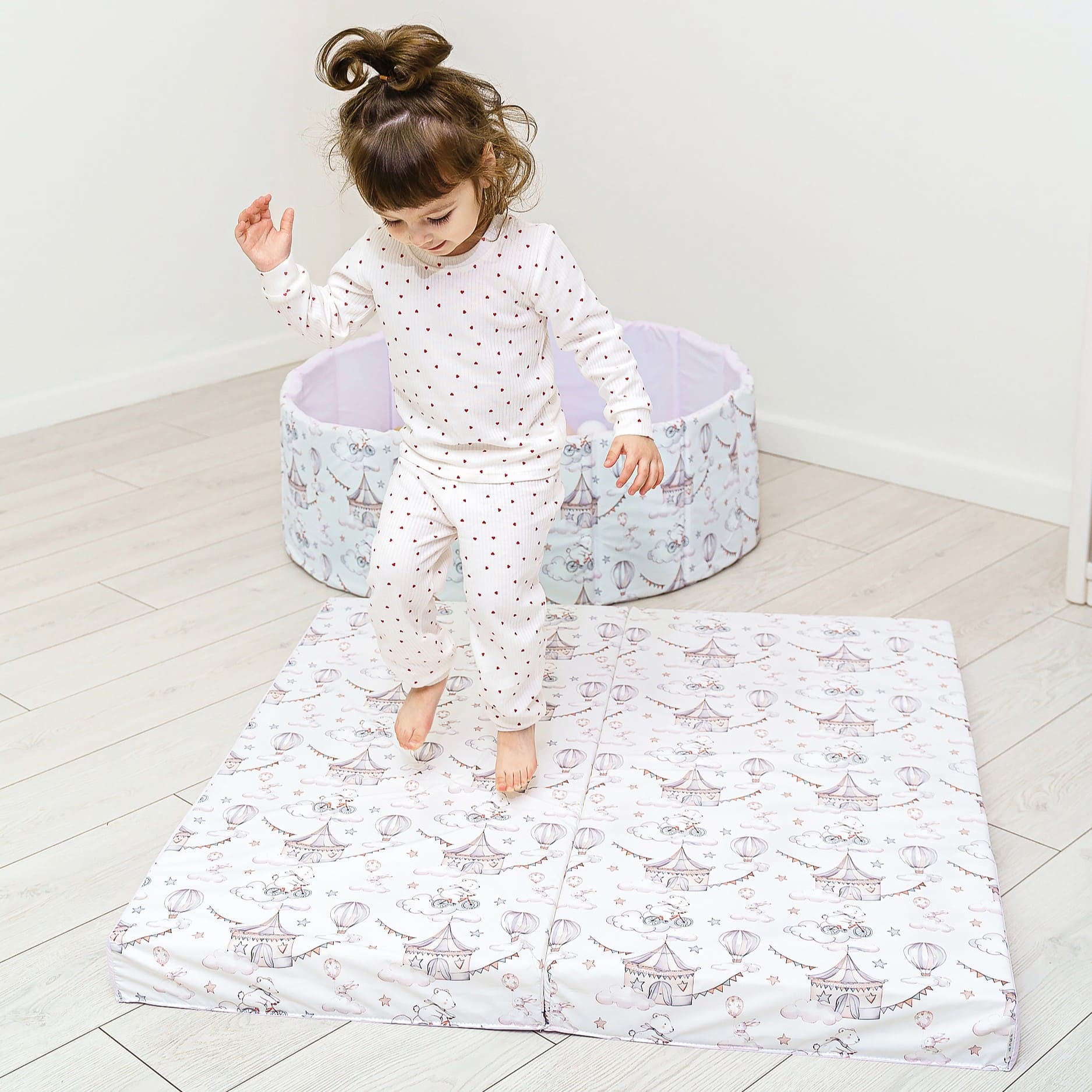 · Современный дизайн: Мы выбрали успокаивающую пастельную палитру, которая идеально впишется в любой интерьер — от детской в скандинавском стиле до классической гостиной. Мат выглядит стильно, ненавязчиво и создает уютную атмосферу.