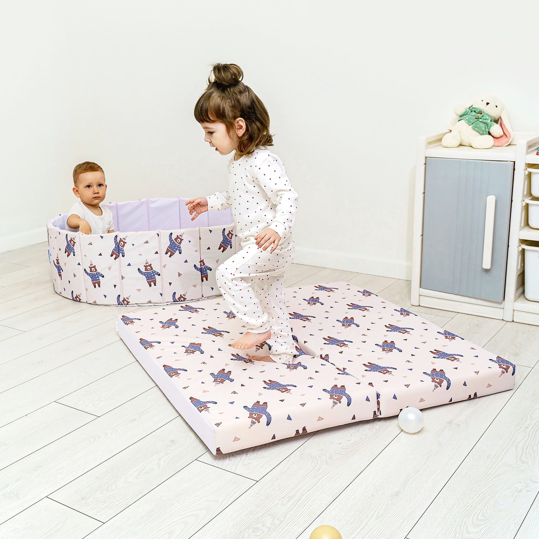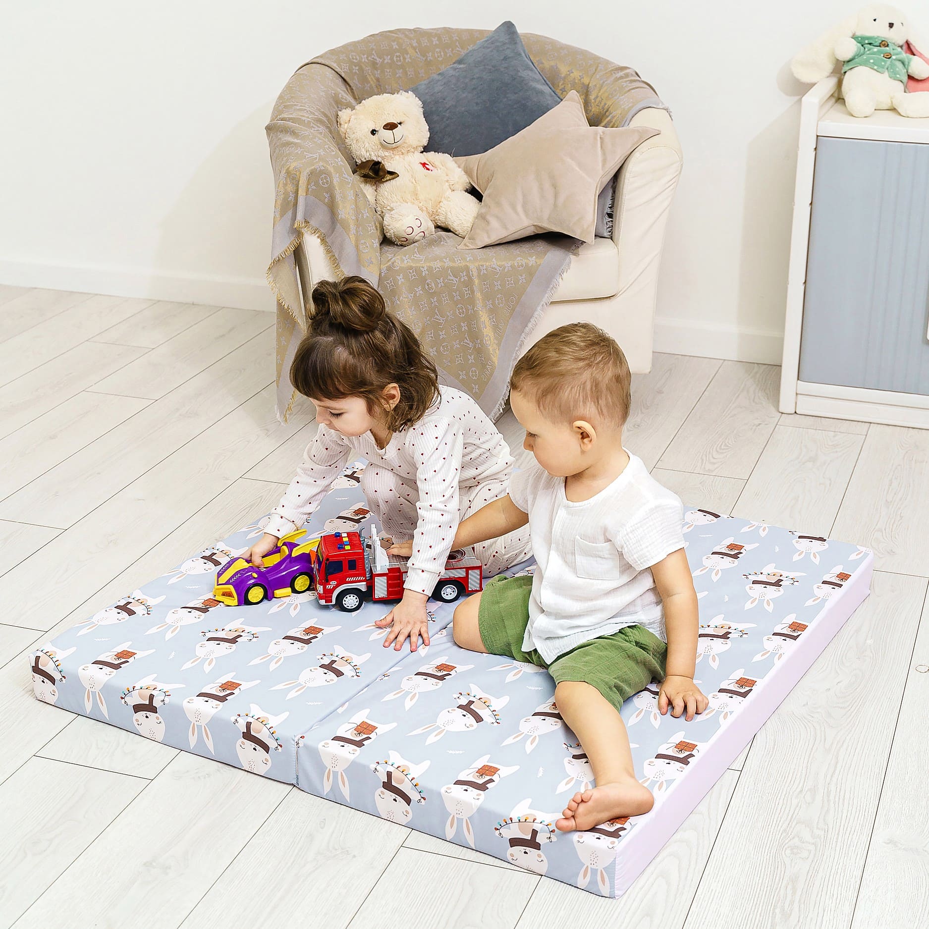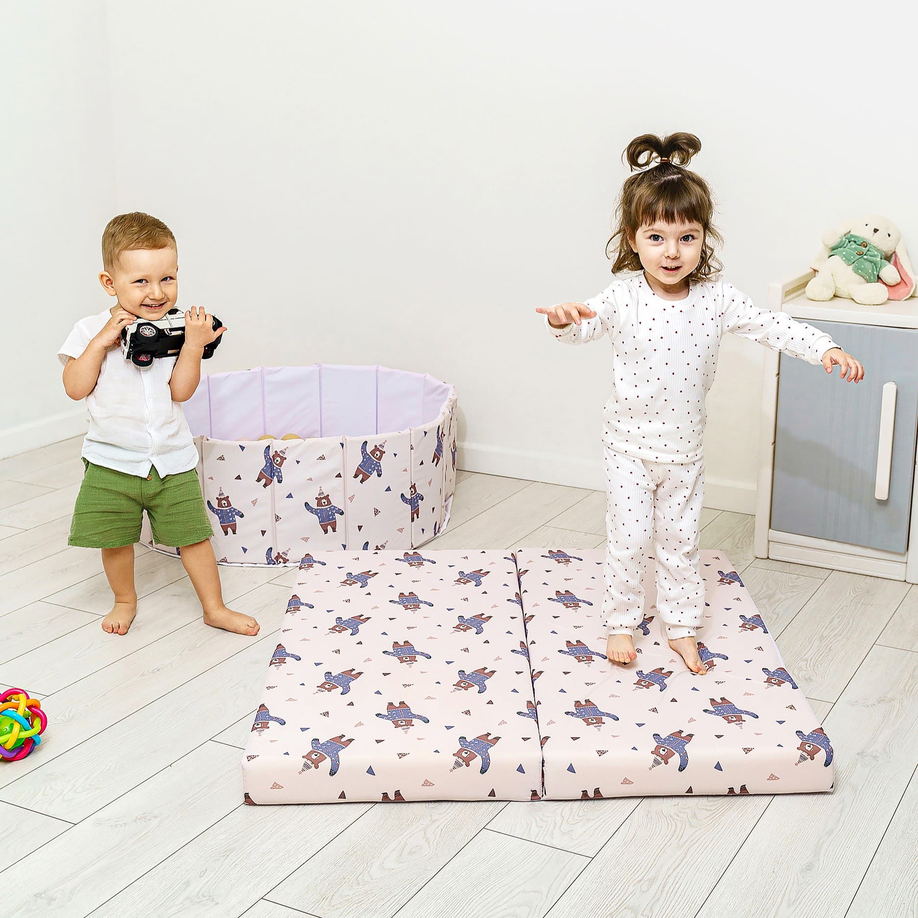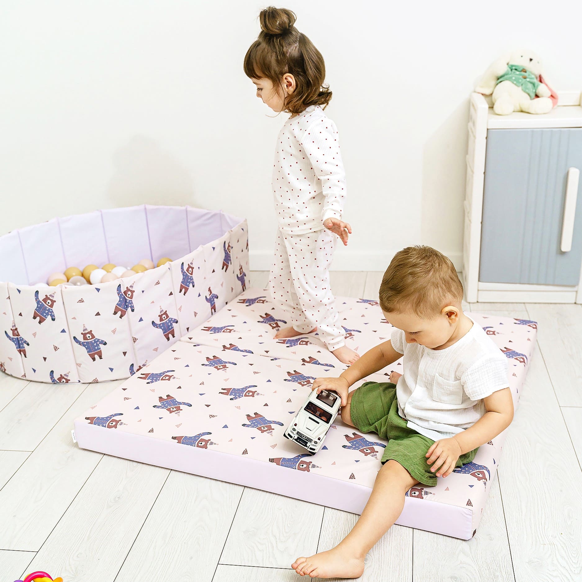 · Современный дизайн: Мы выбрали успокаивающую пастельную палитру, которая идеально впишется в любой интерьер — от детской в скандинавском стиле до классической гостиной. Мат выглядит стильно, ненавязчиво и создает уютную атмосферу.