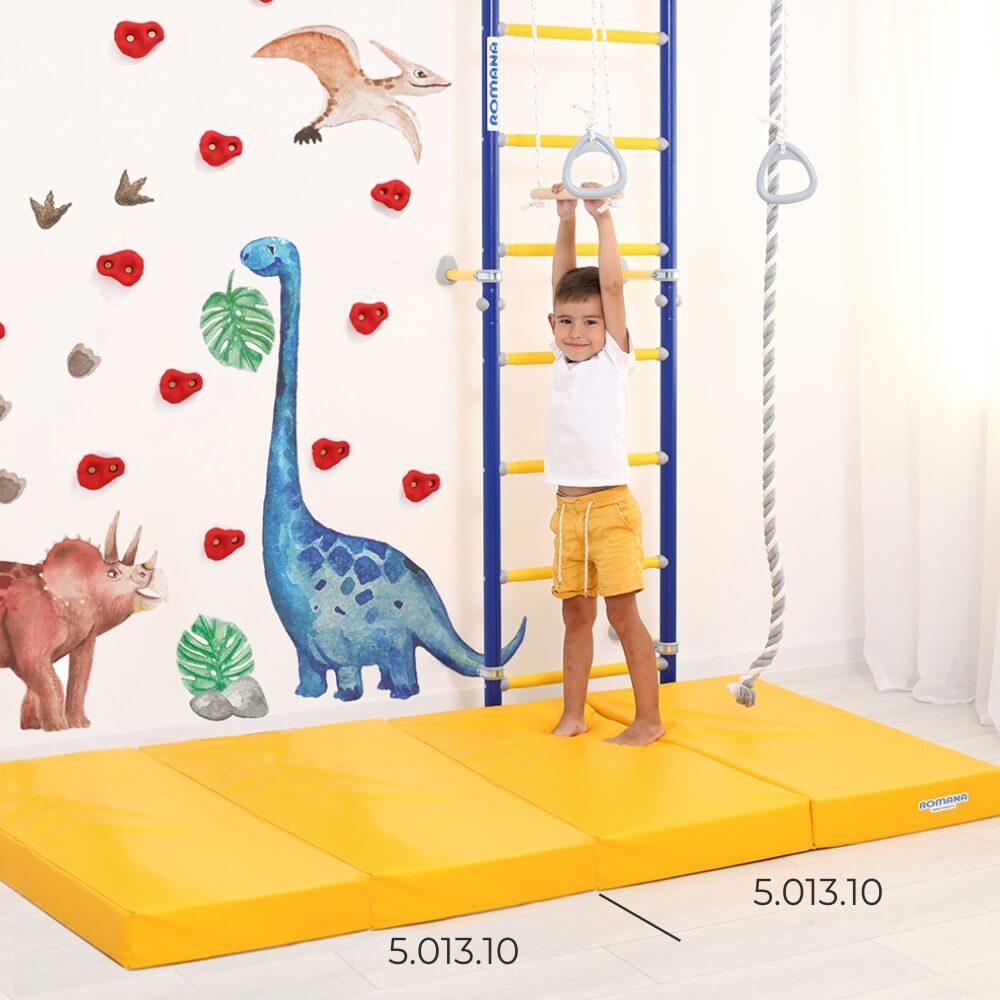 Квадратный складной мат Romana создаст комфортные безопасные условия для физического развития. Мягкий щит может служить как отдельный элемент спортивного инвентаря, обеспечивая оптимальные условия для занятий спортом. Кроме того, мат является необходимым комплектующим элементом к шведской стенке, обеспечивая безопасность занятий на ней. Изделие состоит из двух частей, надежно соединенных между собой единым материалом. Это гарантирует долгий срок службы, прочность и устойчивость к деформациям.