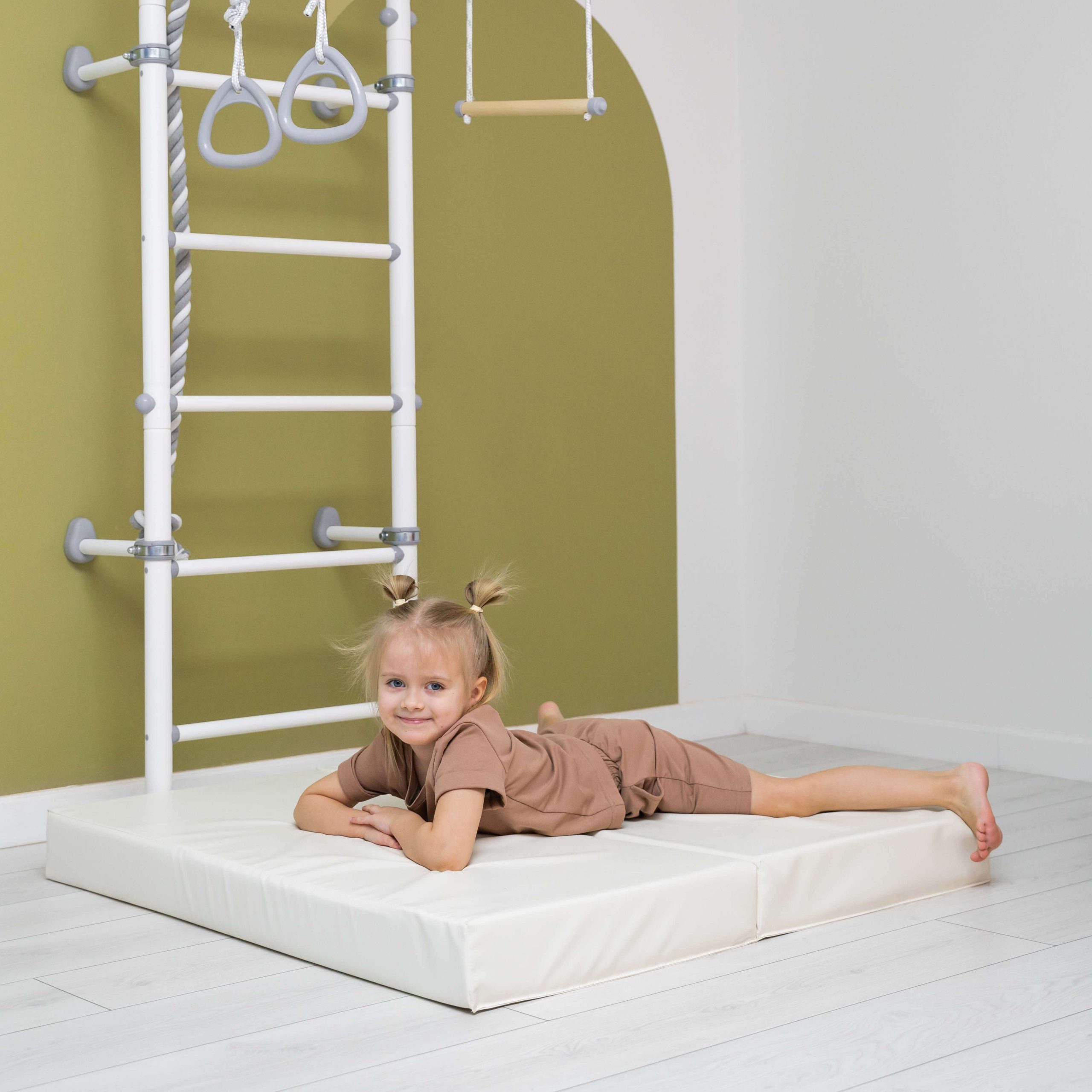 Практичный квадратный мат имеет следующие габариты: 1000*1000*100мм в разложенном виде и 1000*500*200мм в сложенном. Благодаря компактности, организация хранения мата проста. Изделие можно легко разложить или убрать, при необходимости. Габариты мата позволяют создать зону безопасности во время тренировок на шведской стенке. Представленный мат оптимально укомплектует как пристенные, так и распорные спортивные комплексы. Цветовые решения, разработанные профессиональными дизайнерами, позволяют изделию гармонично вписаться в интерьер. Спокойные серые и бежевые оттенки однотонных матов контрастируют с яркими расцветками двусторонних матов. Отличительной особенностью двусторонних матов является разная окраска его сторон. Это позволяет менять цвет изделия в любое время, просто перевернув его.