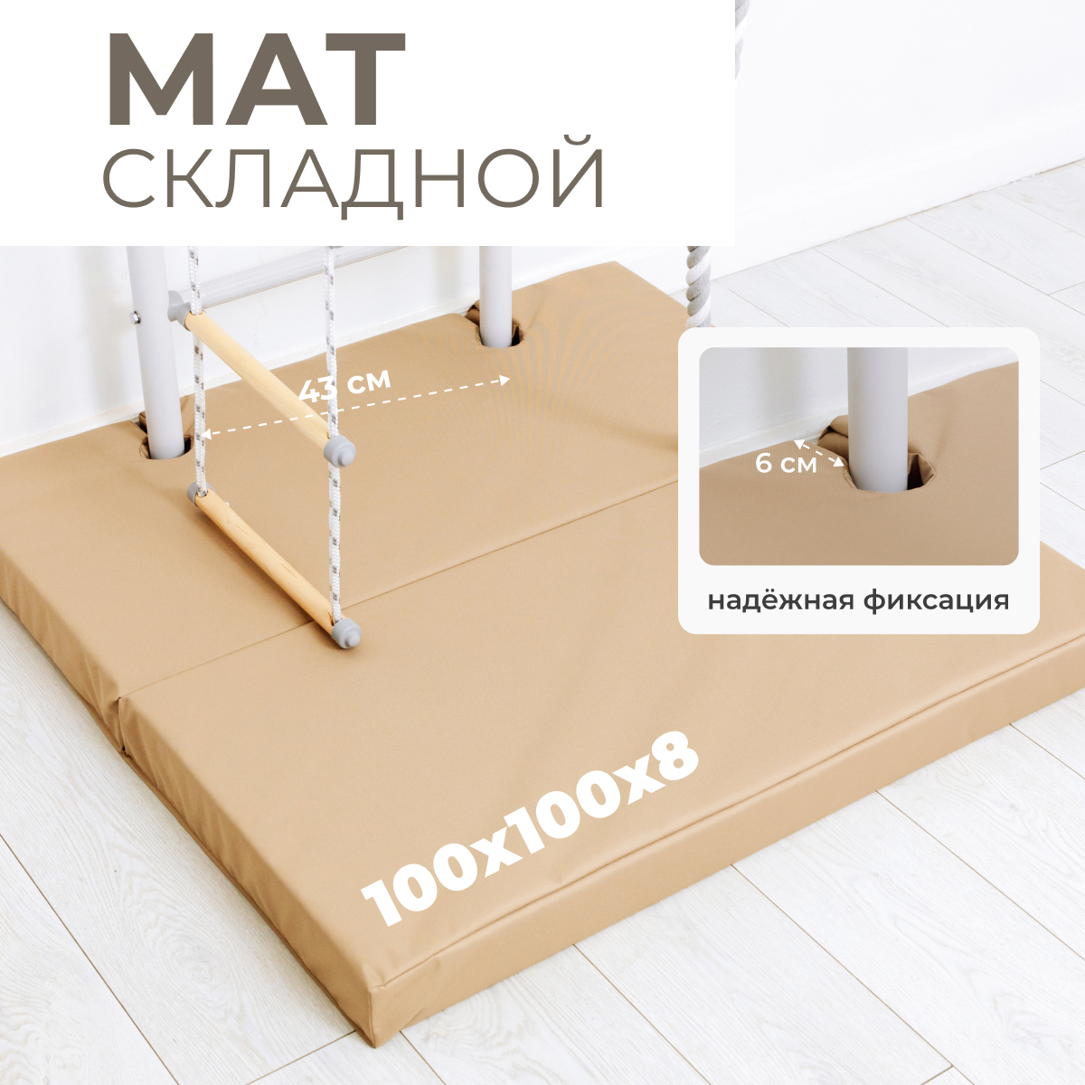 Мат с прорезями для шведской стенки (мягкий щит) Romana 1000*1000*80, в 2 сложения (бежевый)