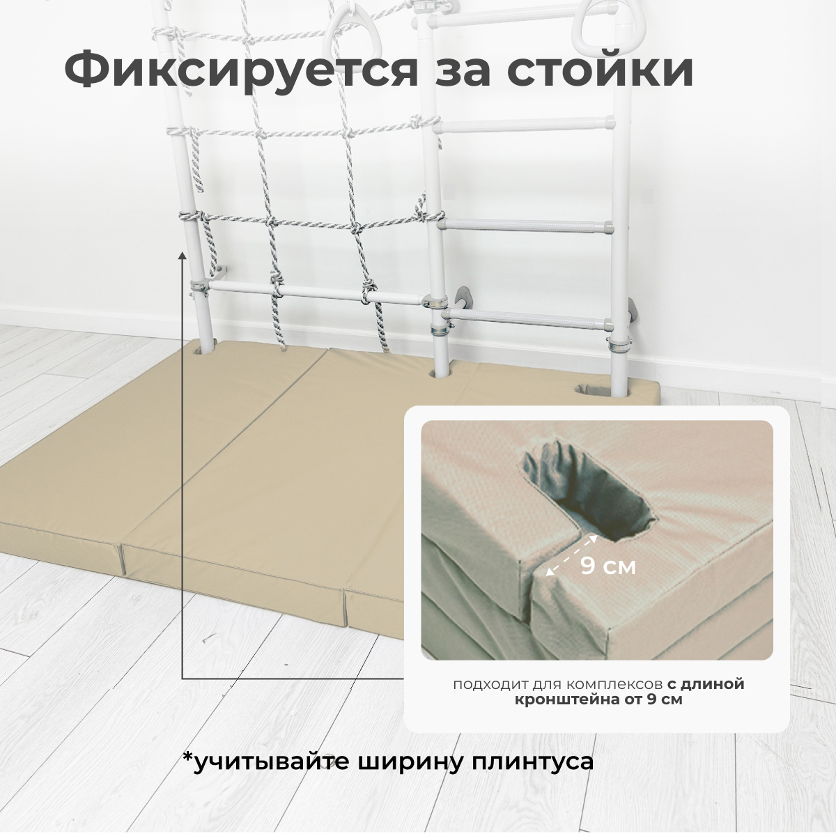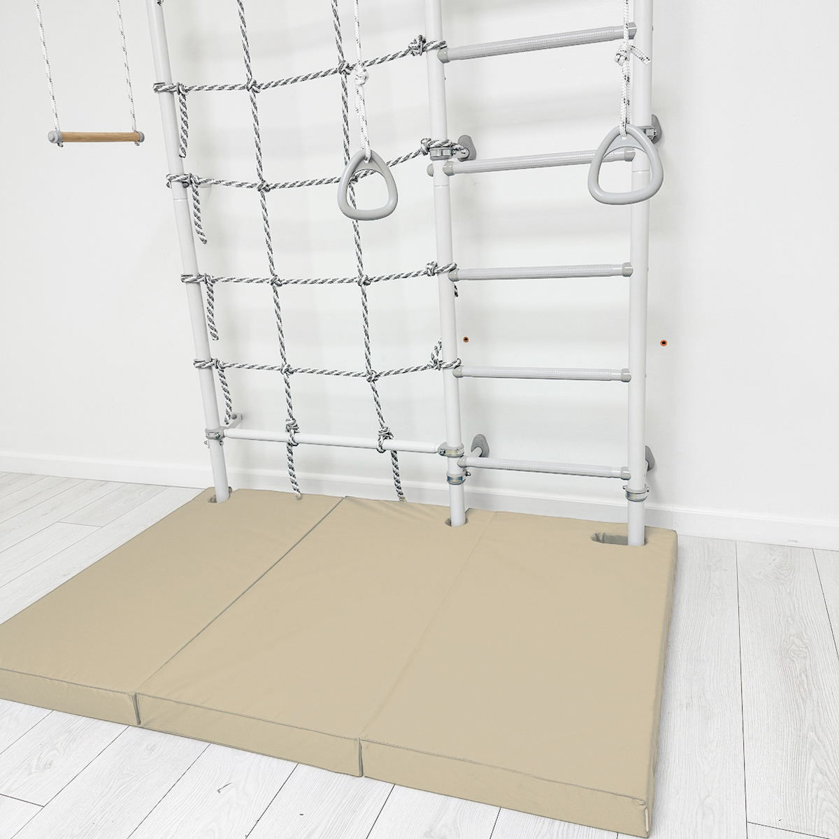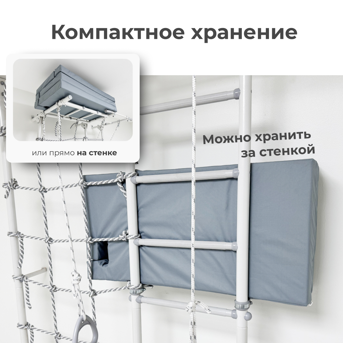 · Компактное хранение — пол всегда свободен: Закончили тренировку? Мат легко складывается и удобно размещается прямо на шведской стенке или за ней. Теперь не нужно искать место для хранения в комнате — ваш пол остается свободным для игр и повседневной жизни.