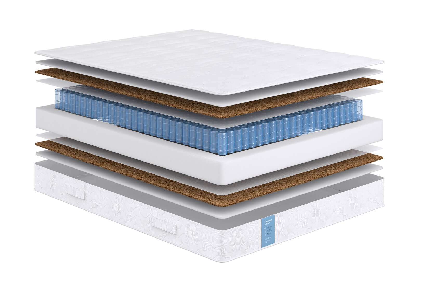 Матрас на основе блока независимых пружин Pocket, плотностью 512 пружин на спальное место, снимает нагрузку с позвоночника и качественно поддерживает область поясницы. Кокосовая койра обеспечивает жесткость, а современный гипоаллергенный материал Foam придает комфорт. Средняя жесткость матраса подойдет для широкой возрастной группы. Чехол матраса изготовлен из практичного и современного трикотажа. Состав: — Трикотаж, стеганный на высокоэластичной пене и синтепоне — Высокоэластичная пена Foam — Кокосовая койра — Независимый пружинный блок Pocket — Кокосовая койра — Высокоэластичная пена Foam — Усиление по периметру матраса