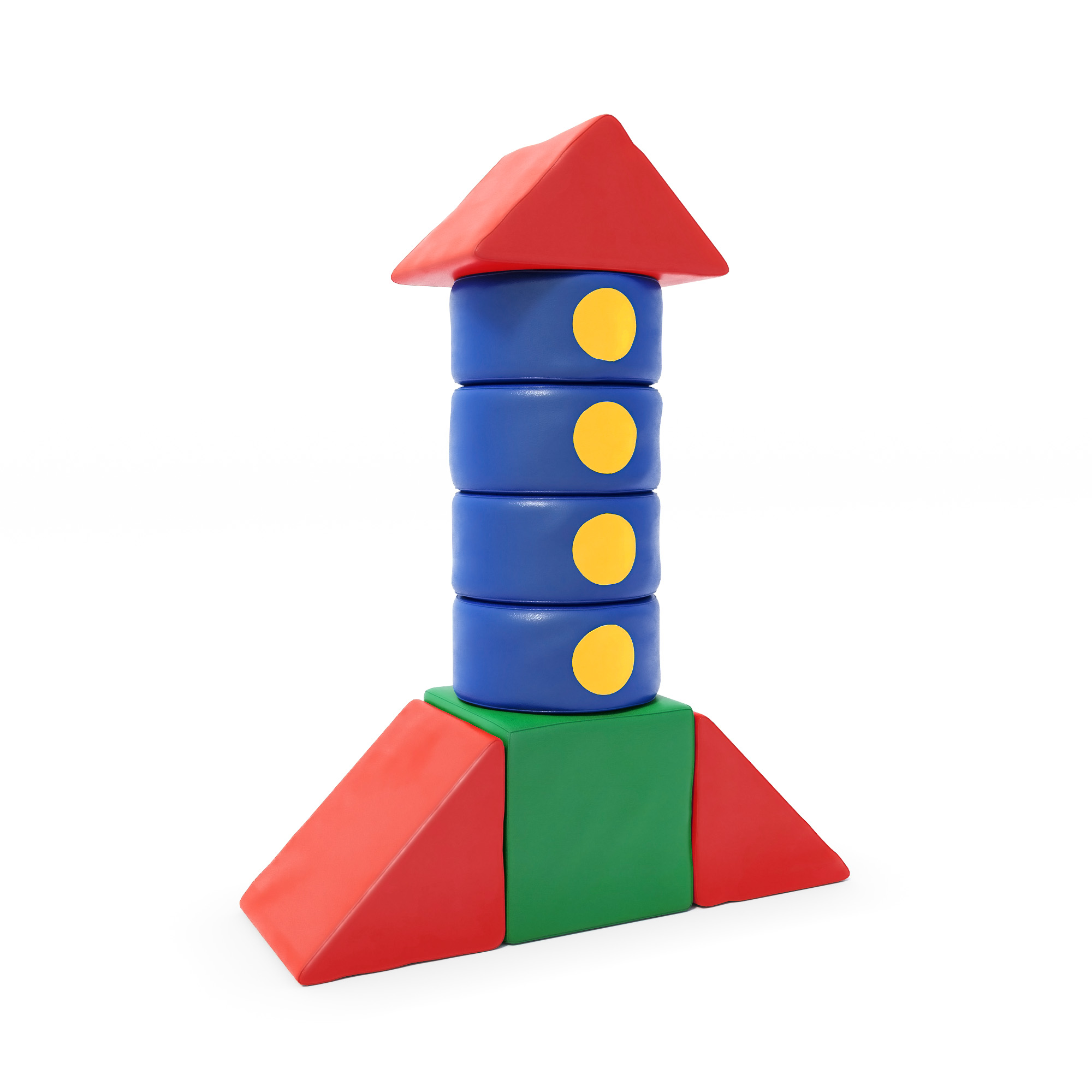 Мягкий комплекс Ракета ДМФ-МК-08.71.00 состоит из 8 элементов: треугольник, цилиндр, куб. Все элементы выполнены из поролона плотнотью 18кг/м3, обтянутые винилискожей. Все элементы могут использоваться по отдельности. Материал устойчив к деформации, разрыву, царапинам, истиранию, воздействию влаги и моющих средств, высоким температурам, световому старению, а также имеет высокую прочность на изгиб и стойкость окраски. Яркие цвета развлекают и надолго привлекают внимание ребенка, а необычная форма позволяет самостоятельно изучать окружающую среду в игровой форме, развивая моторику и вестибулярный аппарат, ловкость и выносливость.