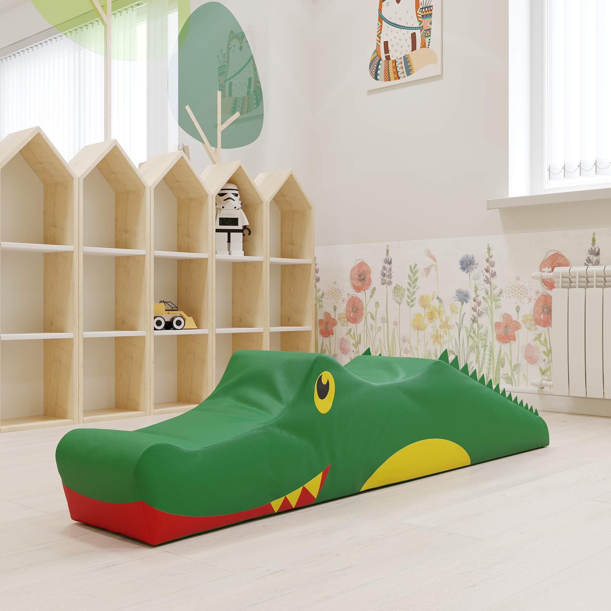 Мягкий комплекс «Крокодил» — мягкая игрушка в виде крокодила для сюжетных и спортивных игр. Прочное покрытие долго сохраняет форму и цвет, легко моется, игрушку можно использовать и дома, и на даче. Подходят для детских игровых комнат в общественных местах, дошкольных и младших школьных учреждениях, а так же можно использовать дома и на даче. Габаритные размеры 1400 х 250 х 300 мм. Вес с упаковкой 2,5 кг.