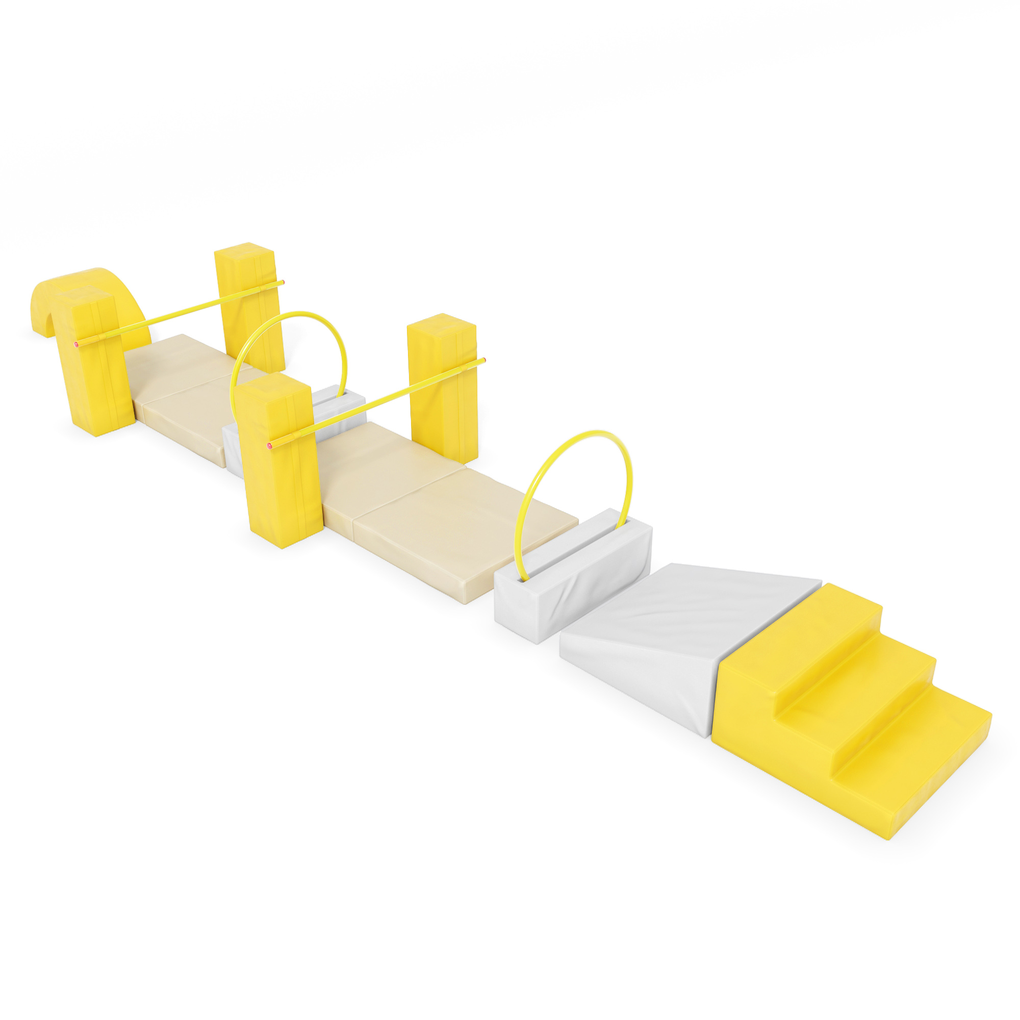 Спортивный модуль «Крокодил» — полоса препятствий из семи модулей и четырех матов. Позволяет разнообразить физическую нагрузку в спортивной и игровой форме. Хорошо выдерживает активную нагрузку, быстро восстанавливает свою первоначальную форму и не требует сложного гигиенического ухода. Подходит для детских садов и игровой комнаты дома или на даче. В комплекте: ступени, трапеция, мат, обруч, прямоугольник, арка. Допустимая нагрузка 50 кг. Габаритные размеры 7000 x 1060 х 600 мм. Вес с упаковкой 15 кг.