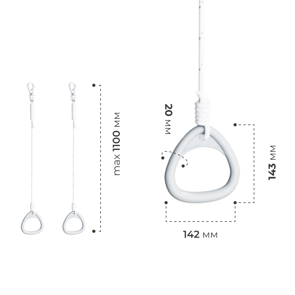 Гимнастические кольца ROMANA фиксируются на любой перекладине домашних спортивных комплексов. Их можно регулировать по высоте для удобства занятий. Если ребенок любит висы и подтягивания — кольца будут очень полезным навесным оборудованием для развития мышц рук, спины и живота.