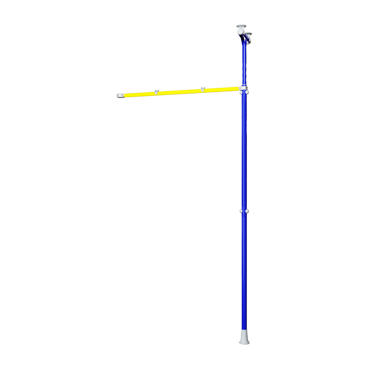 Распорная стойка с перекладиной подойдет в качестве дополнительного элемента к спортивным комплексам, устанавливаемым враспор. На этой перекладине можно разместить навесное оборудование, такое как качели, кольца, трапецию и т.д. Удобство стойки со связью в том, что ее можно расположить с любой стороны от ДСК и под нужным углом. По необходимости, к комплексу можно присоединить несколько стоек.