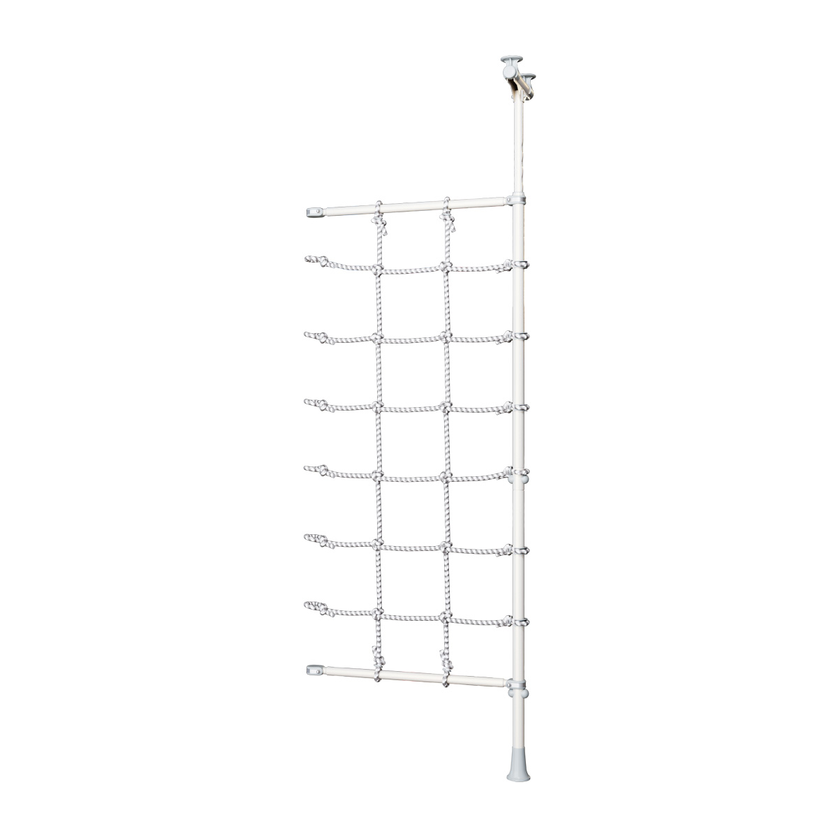 Распорный комплект с канатным лазом служит дополнительным элементом к спортивным комплексам ROMANA. Его преимущество заключается в возможности установки с любой стороны лестницы комплекса. Лаз дает детям простор для новых интересных игр и выполнения разных упражнений: вис, подтягивания, лазание. Сетка лаза выполнена из шнура повышенной прочности.