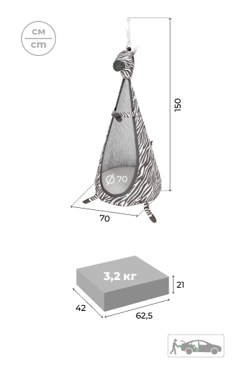 Материал изделия: гамак — 100% хлопок, подушка надувная (сиденье) — спандбонд/поливинилхлорид, подушка — поролон