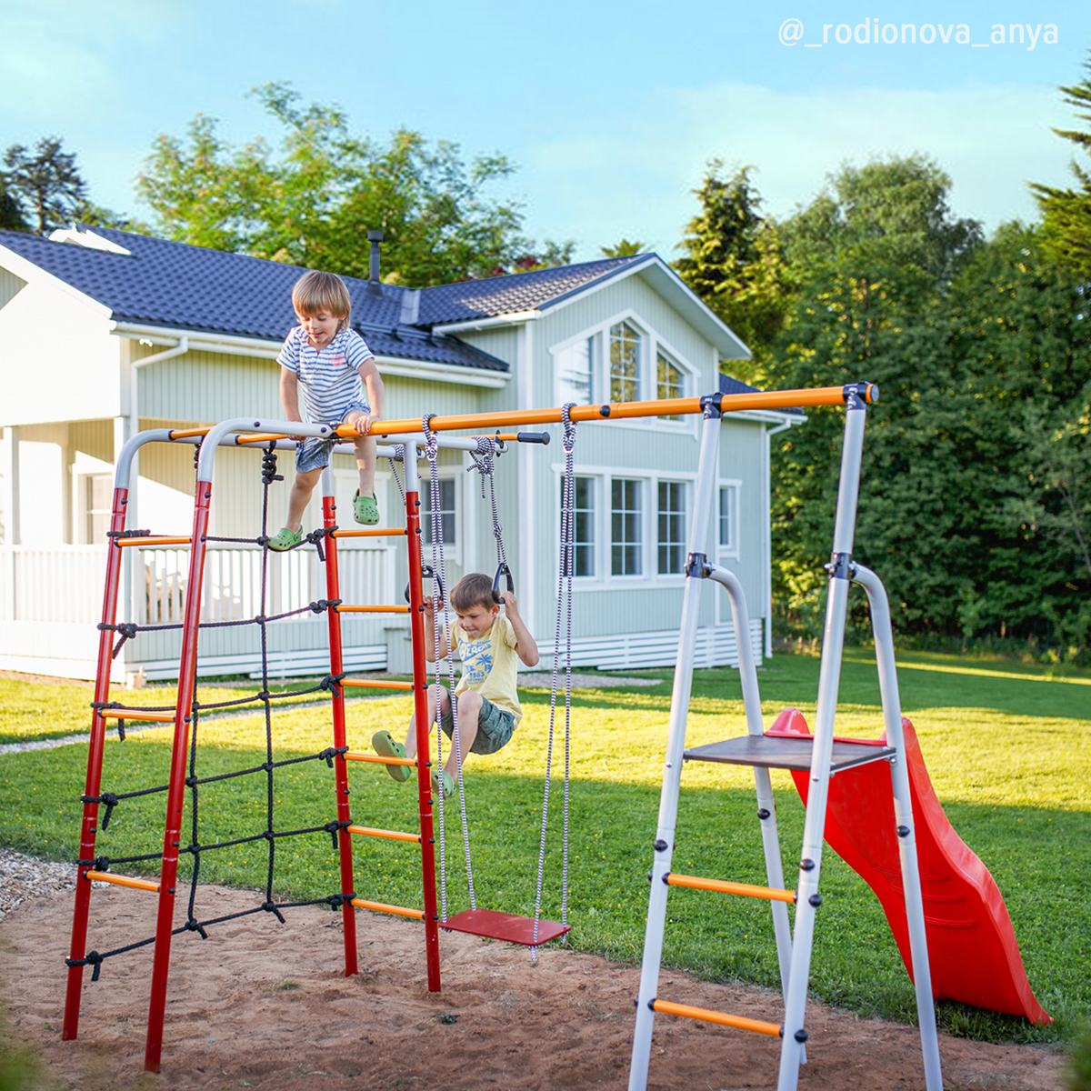 Крепление на прочных канатах делает качели ROMANA надежными и безопасными в использовании. В качестве сиденья используется простая фанерная перекладина. Порадуйте себя и своих близких в загородной резиденции — качели подарят самые положительные эмоции и детям, и взрослым!