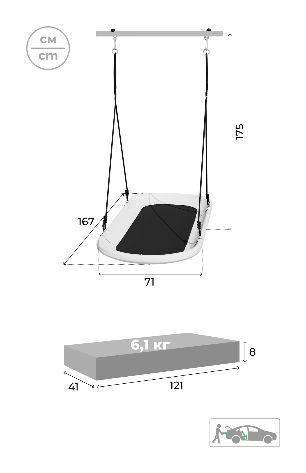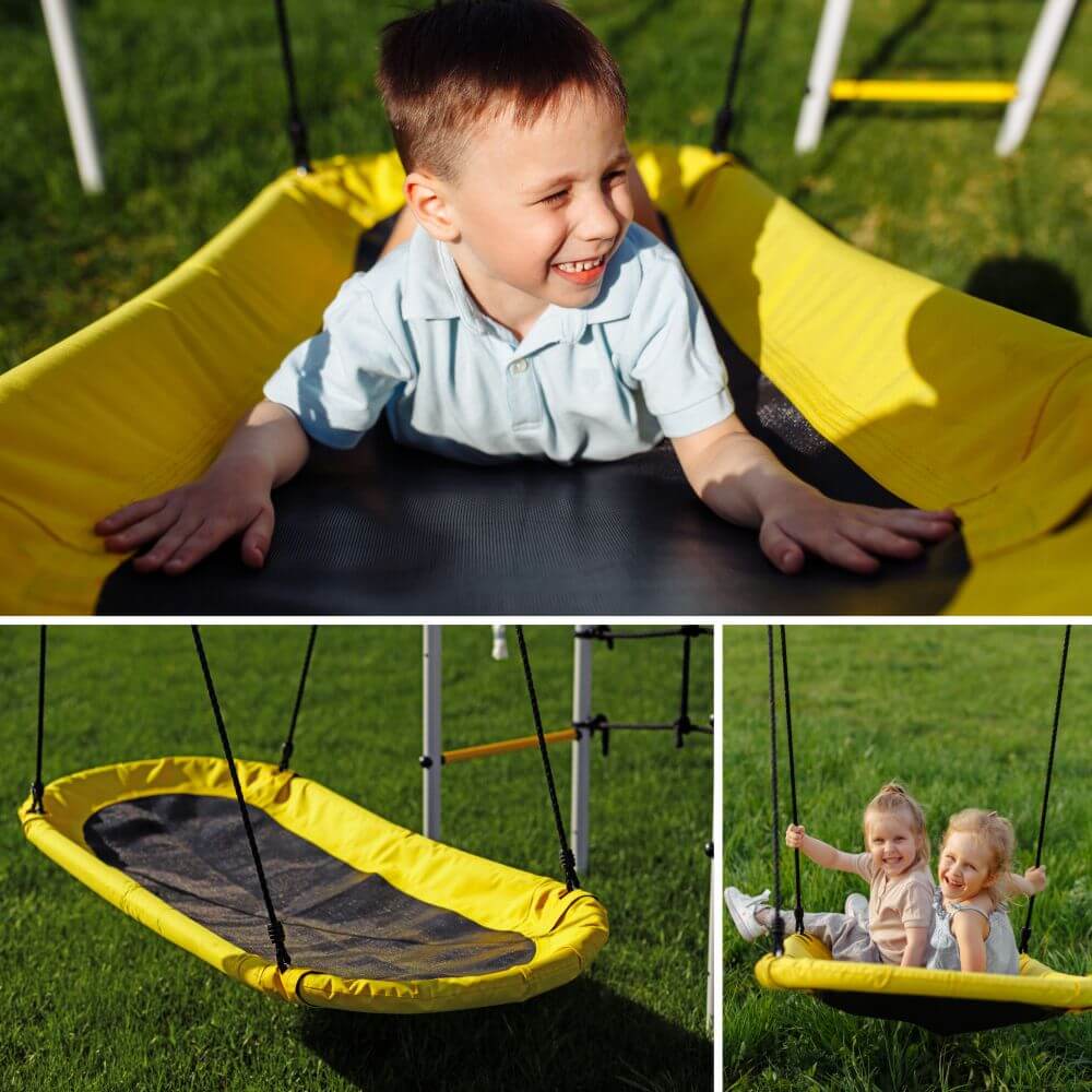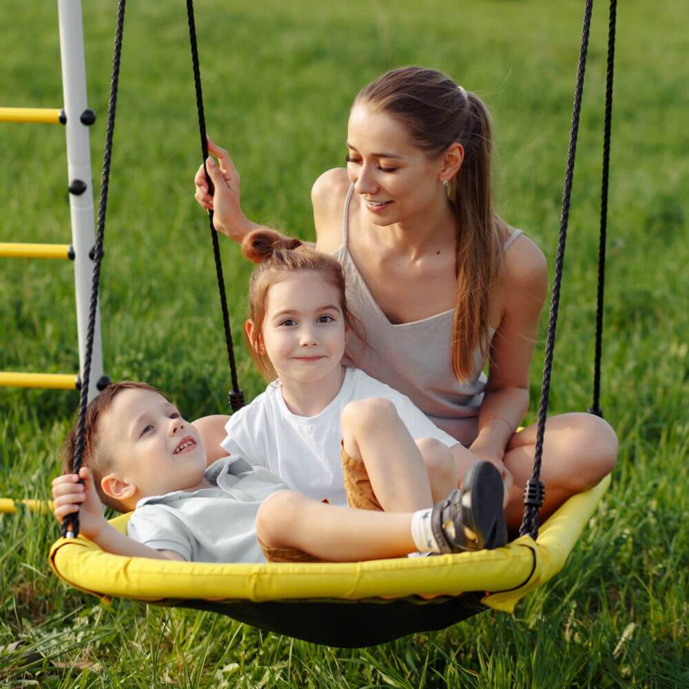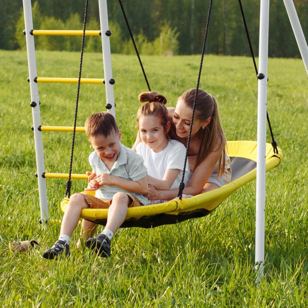 Качели предназначены для детей разных возрастных групп (от трех лет), допустимая нагрузка на изделие 100кг.