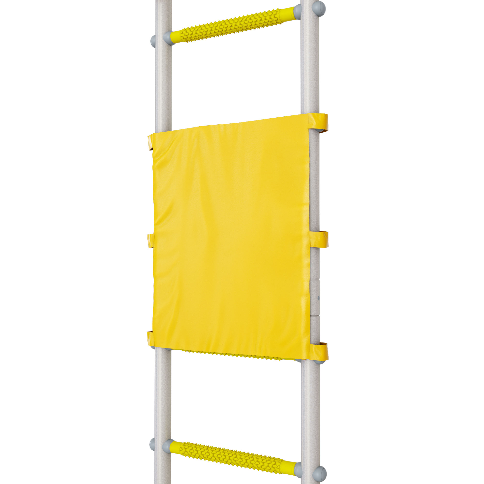 Изделие двустороннее, закрывает обе стороны шведской стенки. Установка ограничителя проста: достаточно разместить изделие на допустимой высоте, и закрепить липучками. Материал «крепежа» надежно фиксирует ограничитель на выбранной высоте, а качественные липучки обеспечивают долговечность эксплуатации.