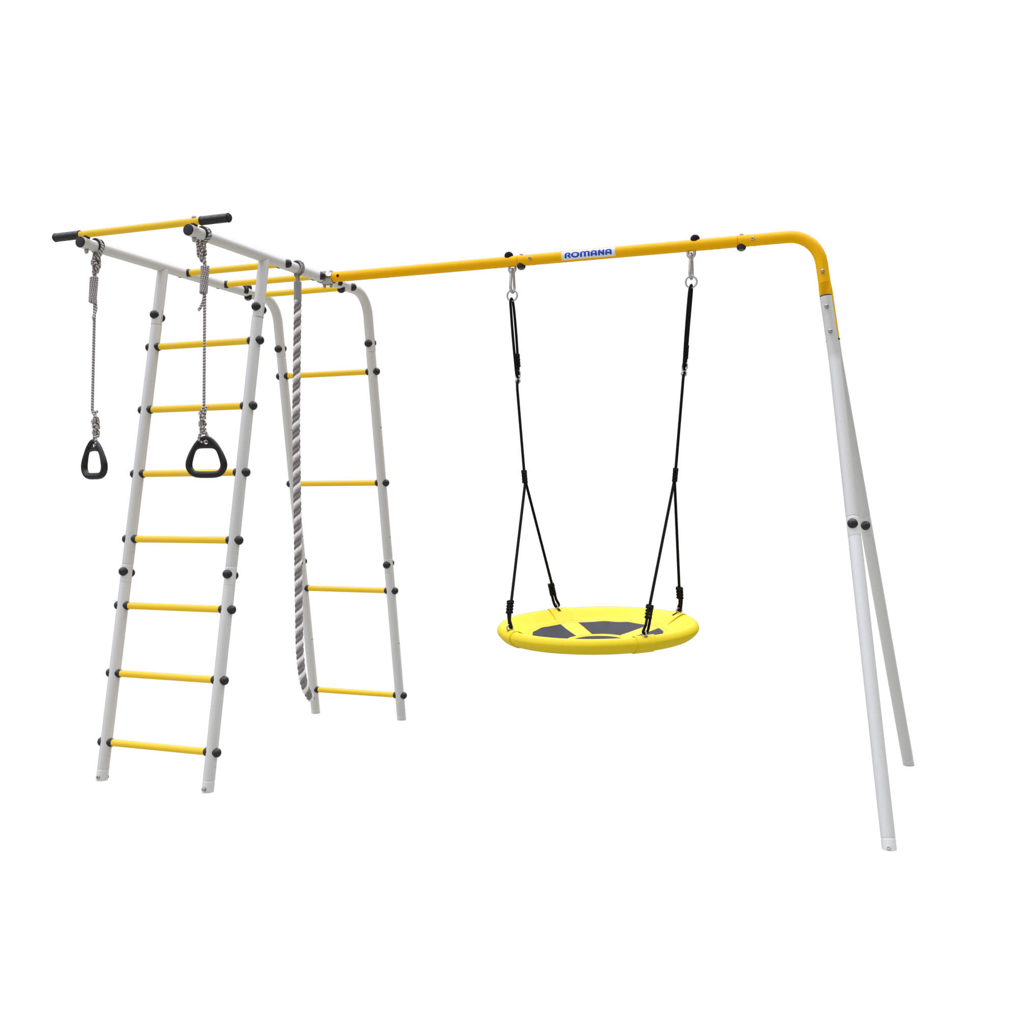 Детский спортивный комплекс для дачи ROMANA Космос (желтый/серый)(с качелями гнездо)