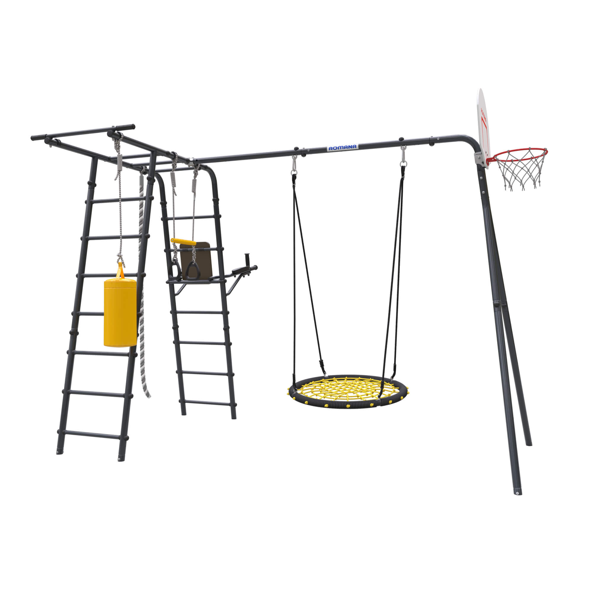 Детский спортивный комплекс для дачи ROMANA Космос (желтый/серый)(с качелями гнездо)