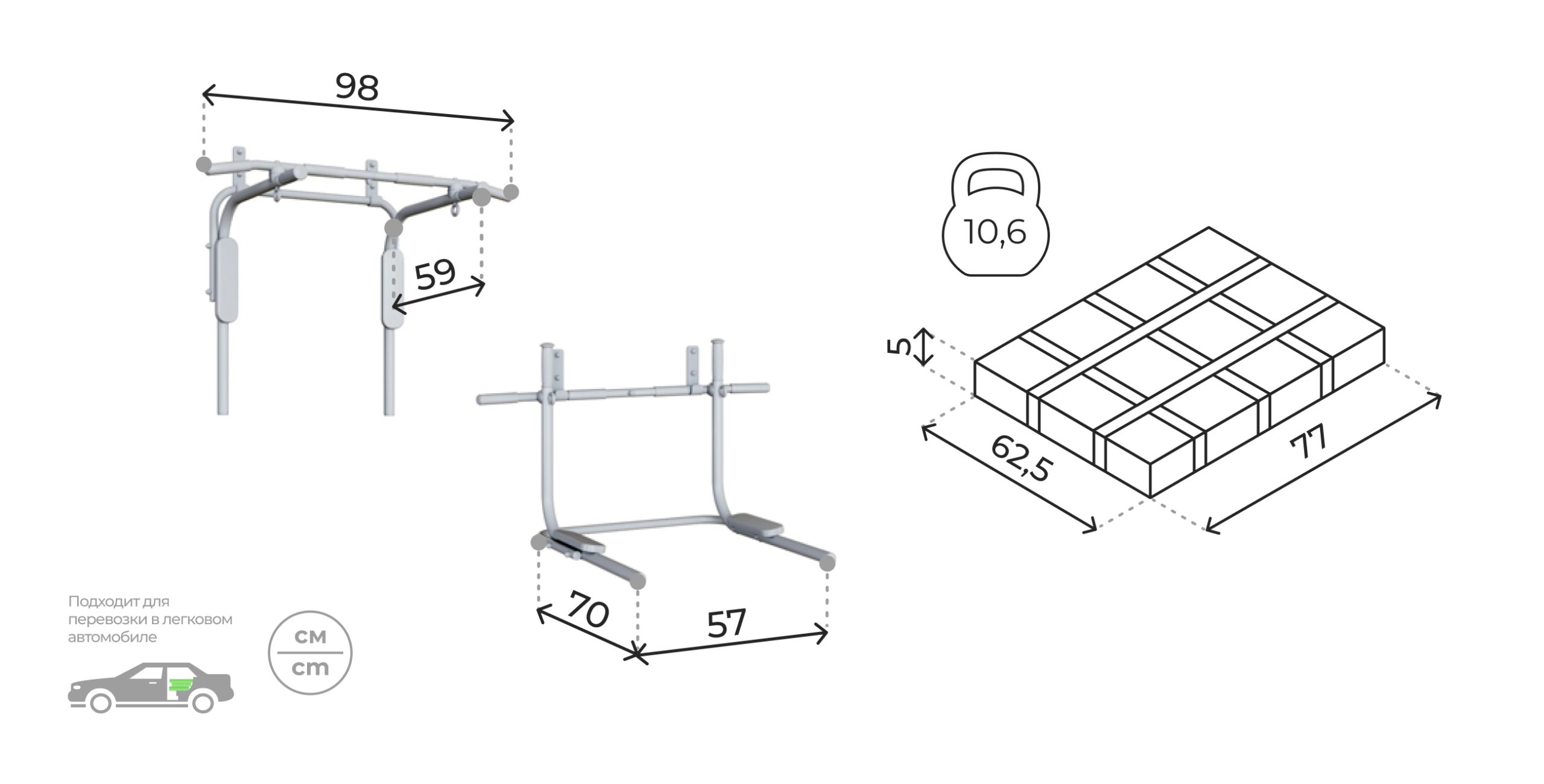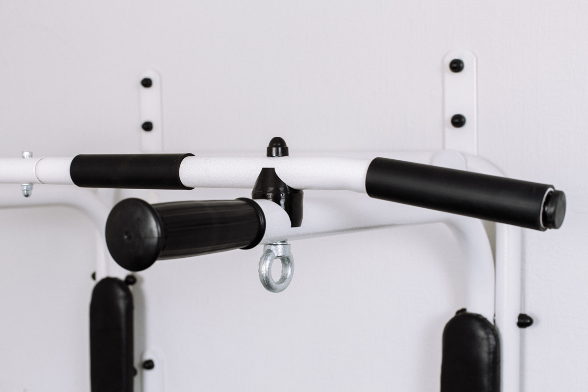 Турник-брусья представляет собой многофункциональный тренажер, который позволяет прорабатывать и укреплять основные группы мышц: трицепс, бицепс, спину, грудь, пресс. На турнике можно осуществлять подтягивания различными видами хватов, на брусьях – отжимания и подъемы ног для проработки пресса. Благодаря конструктивным особенностям, тренажер в любой момент можно переместить из положения «турник» в положение «брусья» и обратно. Покрытие на перекладине препятствует соскальзыванию рук, а мягкие подлокотники на брусьях обеспечивают комфортные условия во время занятий. Дополнить комплекс можно боксерским мешком весом 1кг, 5кг, 12кг или 20кг на выбор.
