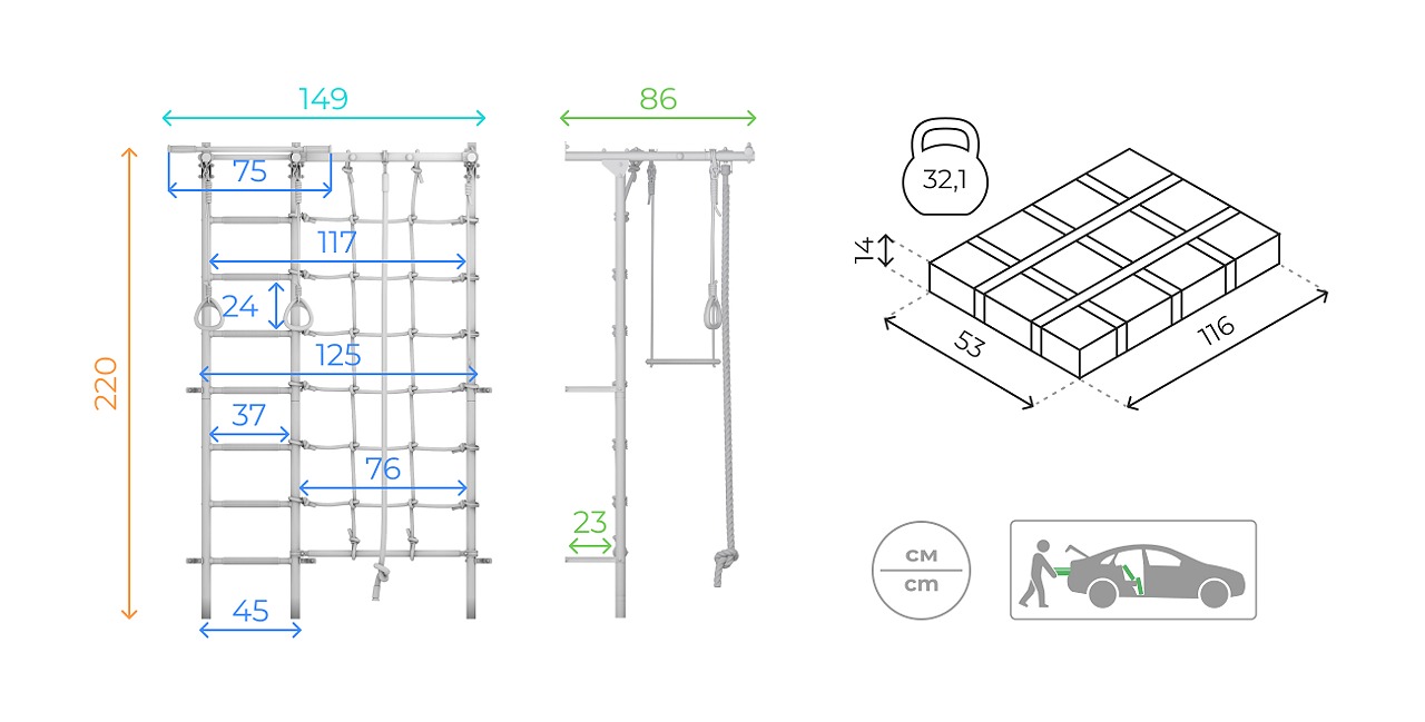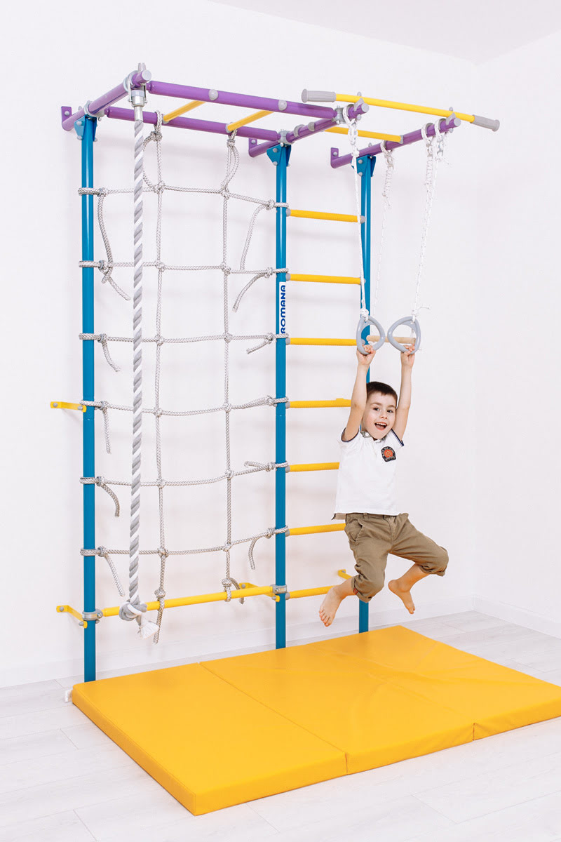 Игровой комплекс изготовлен из высококачественных материалов и обладает прочной конструкцией, что гарантирует его долговечность и надежность. Он оснащен различными элементами, такими как турник, рукоход, трапеция, канат и кольца, позволяющими выполнять разнообразные упражнения. Благодаря этому шведская стенка подходит как для детей, так и для взрослых.
