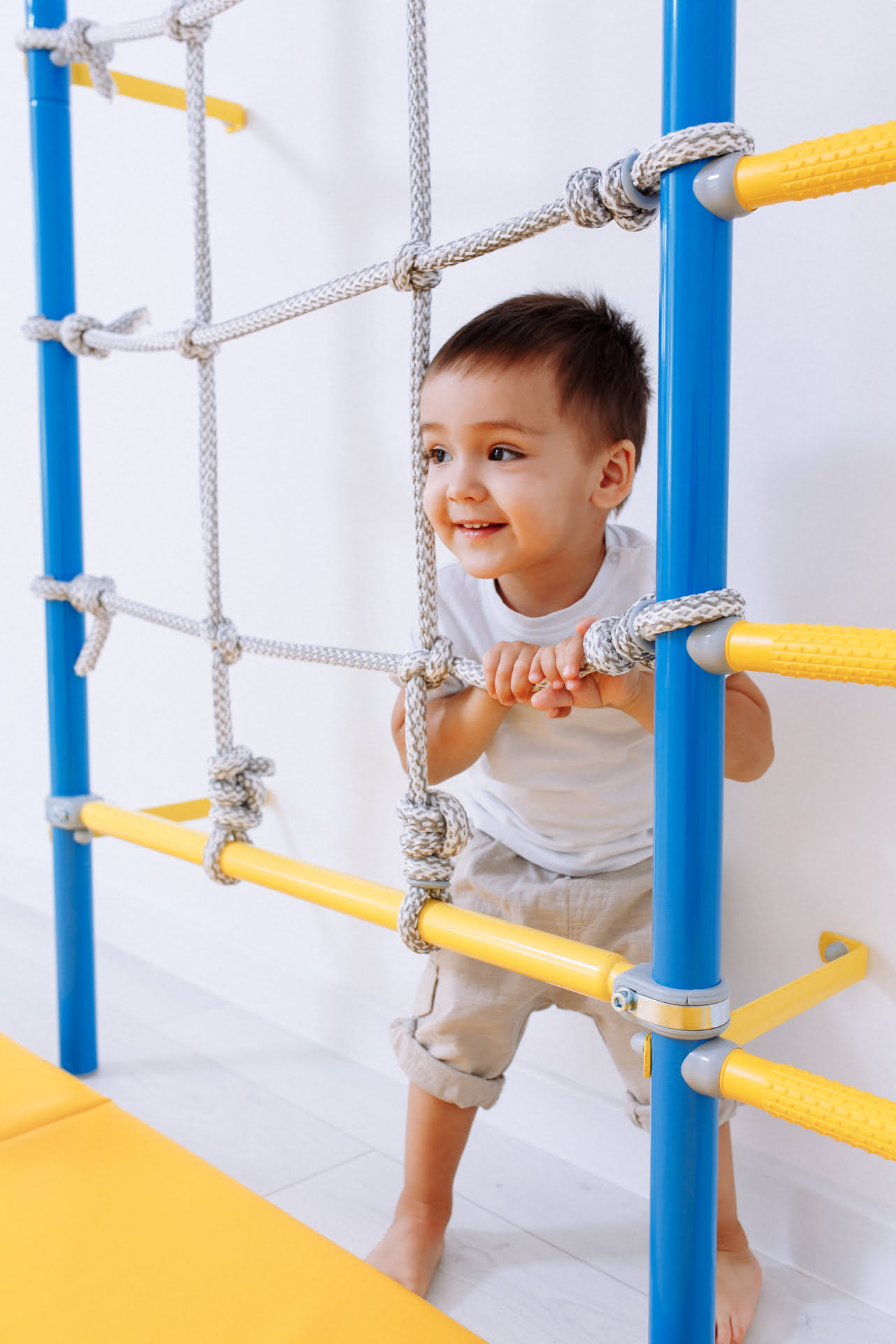 Лестница оснащена массажными ступенями, которые отлично развивают тактильные ощущения и моторику.