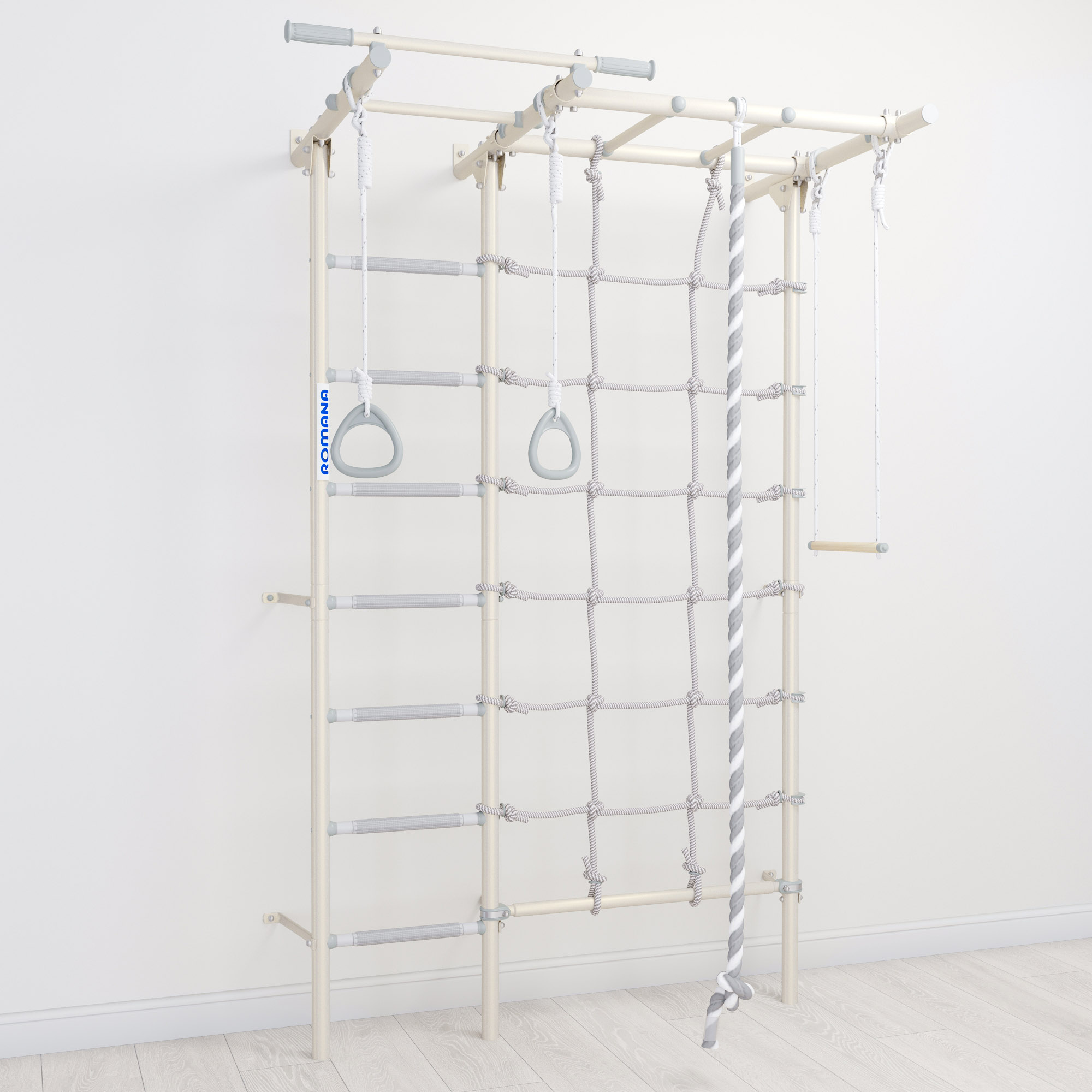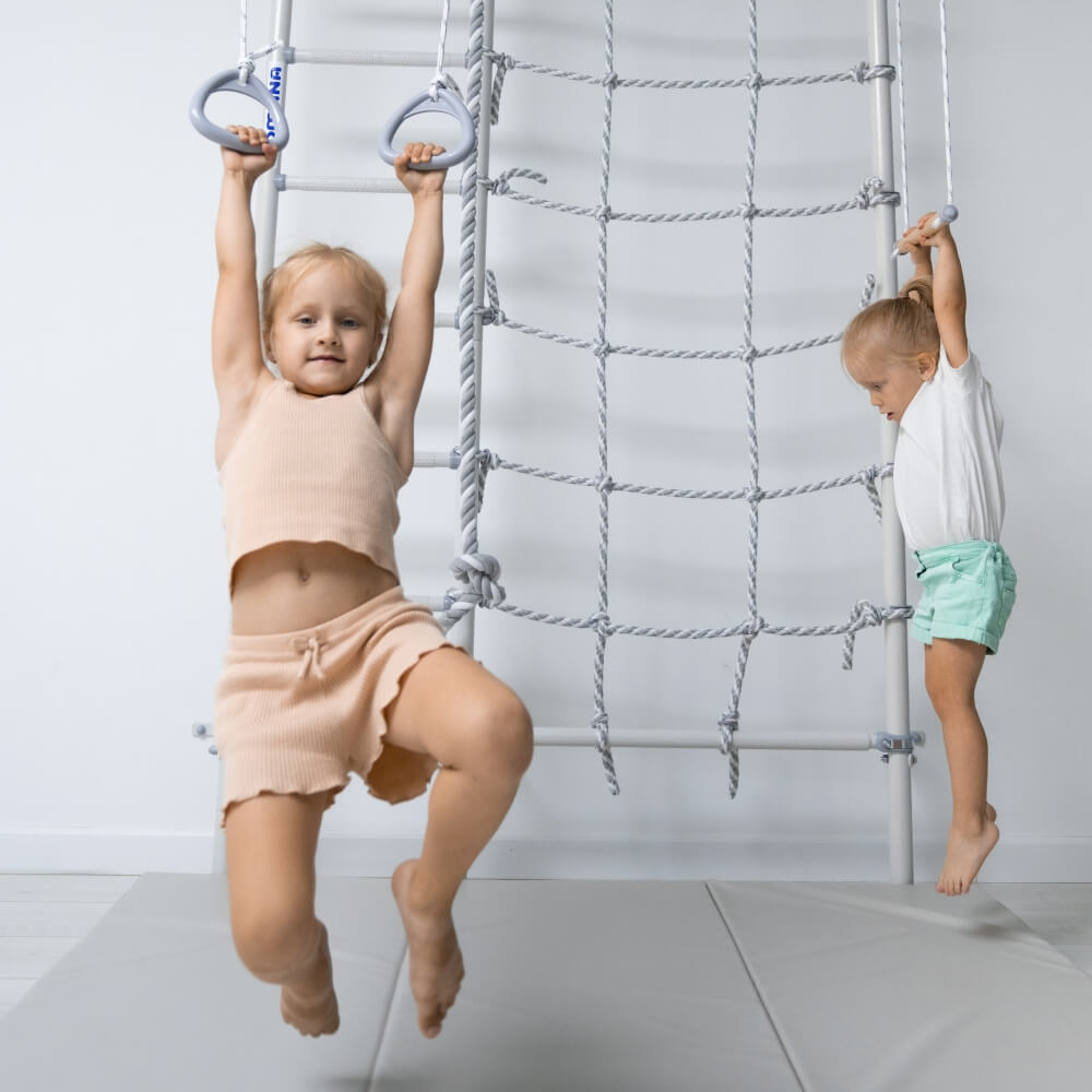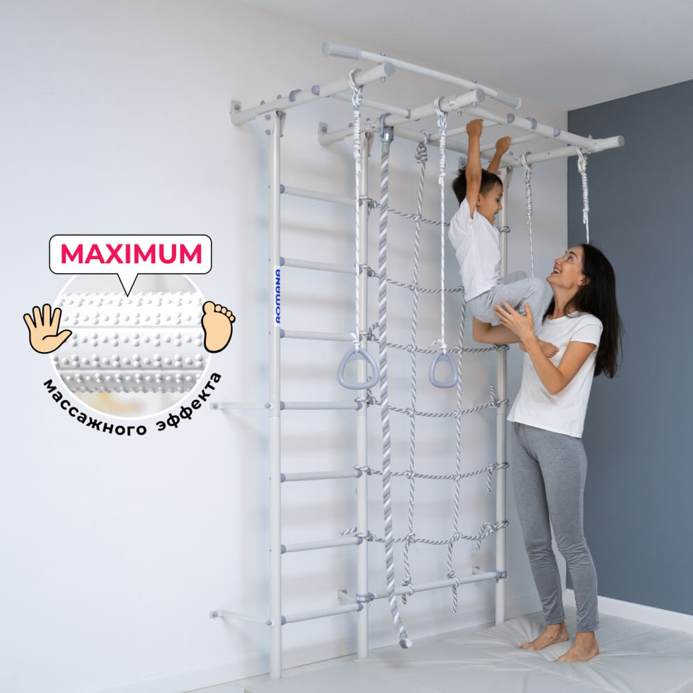 Игровой комплекс изготовлен из высококачественных материалов и обладает прочной конструкцией, что гарантирует его долговечность и надежность. Он оснащен различными элементами, такими как турник, рукоход, трапеция, канат и кольца, позволяющими выполнять разнообразные упражнения. Благодаря этому шведская стенка подходит как для детей, так и для взрослых.