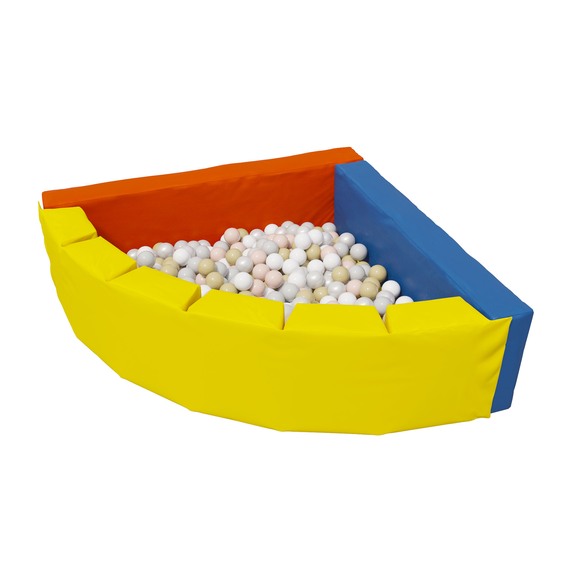 Сухой бассейн с шариками «Фасолька» — это яркий бассейн оригинальной формы в виде уголка для детской комнаты или дачного участка. Органично вписывается в угол помещения, позволяя экономить пространство. Помогает ребенку развивать ловкость и моторику. Состоит из мягких элементов, выполненных из поролона и винилискожи. Детали быстро и просто соединяются между собой с помощью липучек, собрать и разобрать изделие родители смогут самостоятельно в самые короткие сроки. Прочные соединения, устойчивая конструкция, удобная и мягкая поверхность основы и бортиков, защищают ребенка при падениях и максимально обеспечивают безопасность детей во время игры. Благодаря оригинальному дизайну: яркие цвета — развлекают и надолго привлекают внимание ребенка, а необычная форма — развивает ловкость, координацию и детскую фантазию. Хорошо моется. В комплекте: бассейн, 300 шариков. Вес 17 кг.