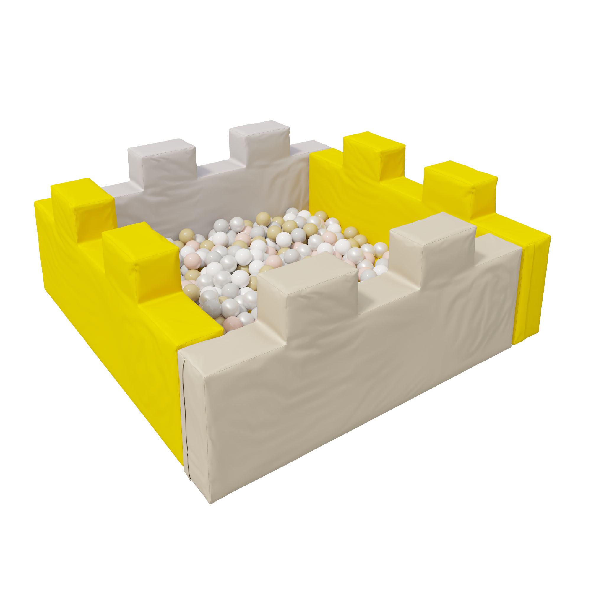 Сухой бассейн с шариками «Форт» — просторный бассейн оригинальной формы в виде крепостной стены, подходит для детской комнаты или игр на свежем воздухе на дачном участке. Помогает ребенку развиваться физически, а также может надолго занять детей игрой. Благодаря оригинальному дизайну: яркие цвета — развлекают и надолго привлекают внимание ребенка, а необычная форма — развивает ловкость, координацию и детскую фантазию. Мягкие блоки соединяются на «липучке», что позволяет собирать и разбирать конструкцию. Прочные соединения, устойчивая конструкция, удобная и мягкая поверхность основы и бортиков, защищают ребенка при падениях и максимально обеспечивают безопасность детей во время игры. Хорошо моется. В комплекте: бассейн, 300 шариков. Габаритные размеры 1400 х 1400 x 550 мм. Вес с упаковкой 18 кг.
