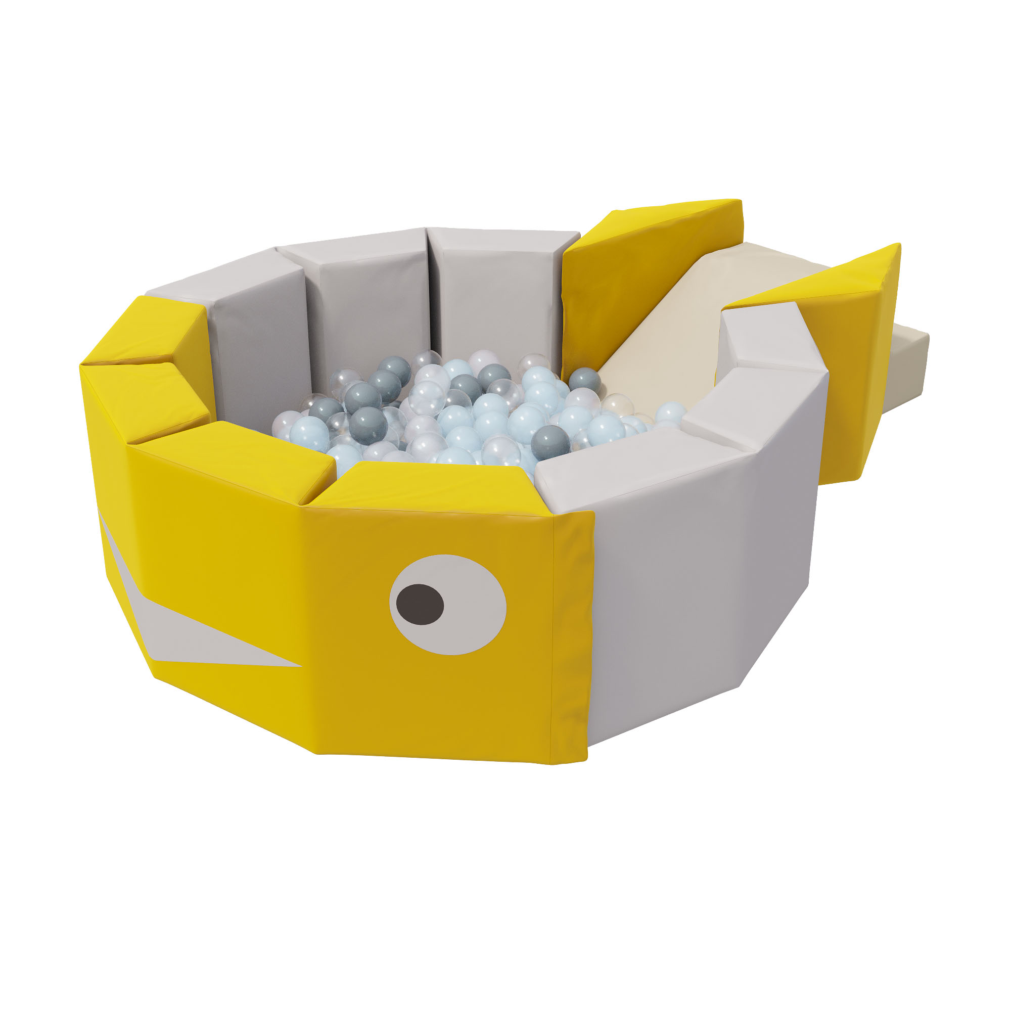 Сухой бассейн с шариками «Кит» — это яркий бассейн оригинальной формы в виде рыбки для детской комнаты или дачного участка. Бассейн складывается из мягких обшитых качественной износостойкой Винилискожи поролоновых деталей – дети не ударятся при контакте с ними, а изделие прослужит долгие годы. Мягкие блоки соединяются на «липучке», что позволяет собирать и разбирать конструкцию. Прочные соединения, устойчивая конструкция, удобная и мягкая поверхность основы и бортиков, защищают ребенка при падениях и максимально обеспечивают безопасность детей во время игры. Благодаря оригинальному дизайну: яркие цвета — развлекают и надолго привлекают внимание ребенка, а необычная форма — развивает ловкость, координацию и детскую фантазию. Прост в уходе – как сам бассейн, так и шарики легко очищаются от загрязнений с помощью обычной воды и влажной губки. В комплекте: бассейн, 300 шариков. Габаритные размеры 1200 х 1500 x 400 мм. Вес 14 кг.