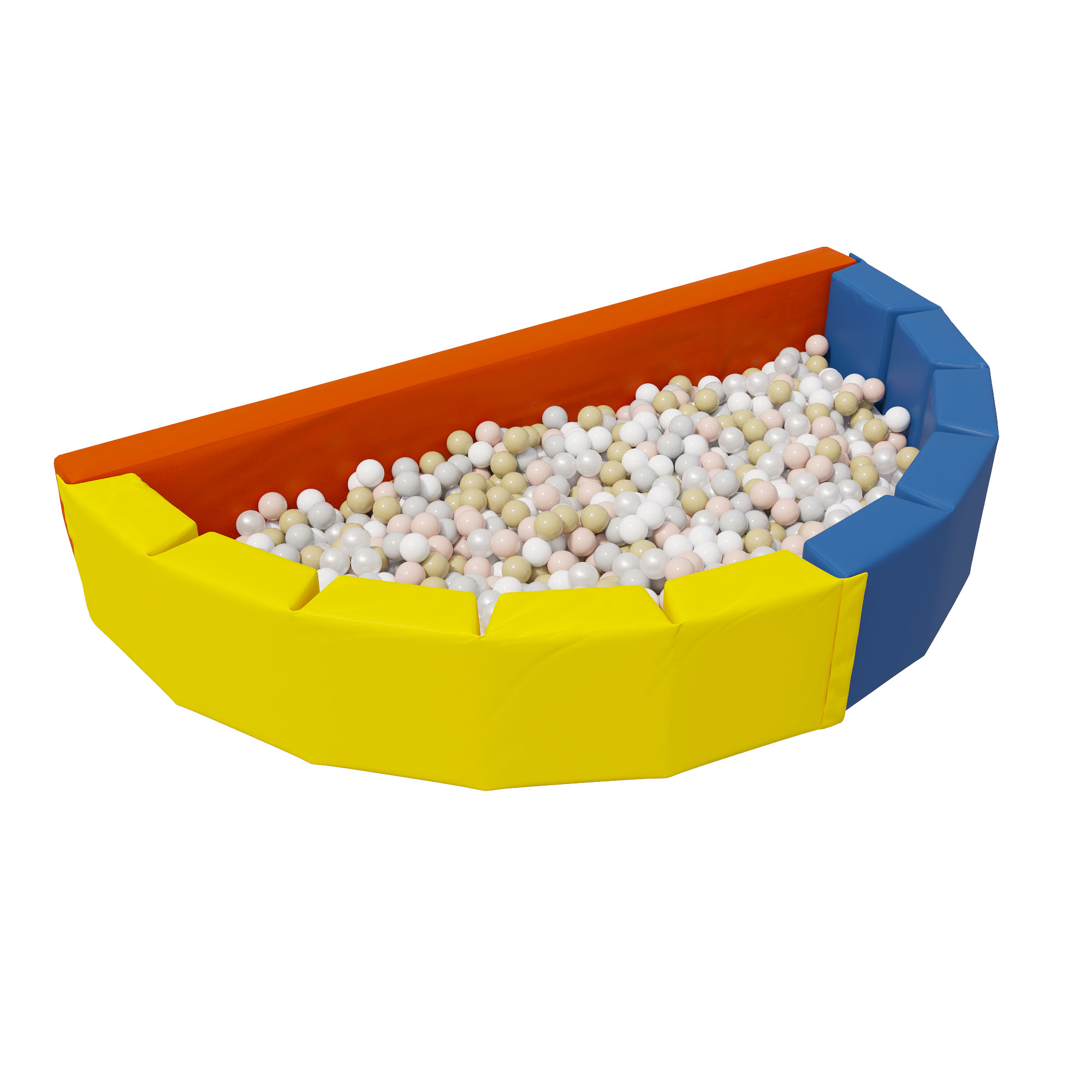 Сухой бассейн с шариками «Ломтик» — яркий бассейн оригинальной формы полукругом для детской комнаты или дачного участка. Отлично впишется в небольшие помещения, может быть использован в городской квартире. Благодаря оригинальному дизайну: яркие цвета — развлекают и надолго привлекают внимание ребенка, а необычная форма — развивает ловкость, координацию и детскую фантазию. Мягкие блоки соединяются на «липучке», что позволяет собирать и разбирать конструкцию.