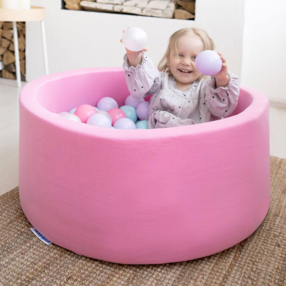 Это достаточно стильный элемент интерьера, который не займет много места в помещении. Высота бортиков составляет 33 см, что позволяет детям беспрепятственно залезать в бассейн, отдыхать и играть с шариками, развивая при этом ловкость и моторику рук.