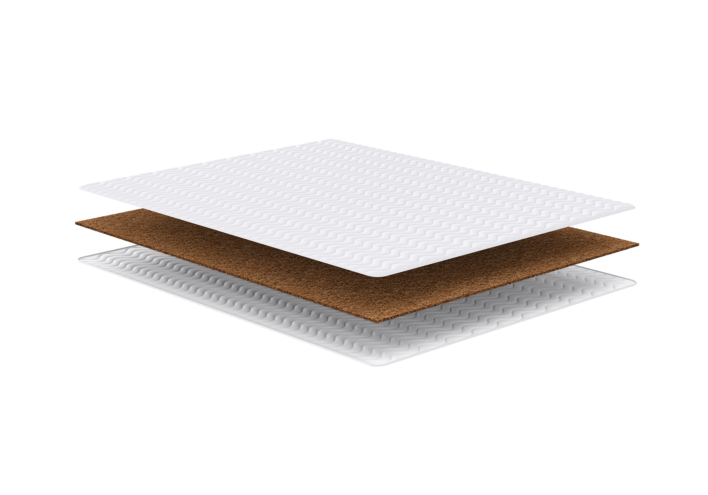 Топпер состоит из кокосовой койры. Предназначен для придания жёсткости слишком мягким матрасам и диванам, а также для устранения небольших прогибов и неровностей. Крепление осуществляется с помощью резинок по четырём углам. Чехол выполнен из натурального хлопка. Состав: — Тик, стеганный на синтепоне — Кокосовая койра