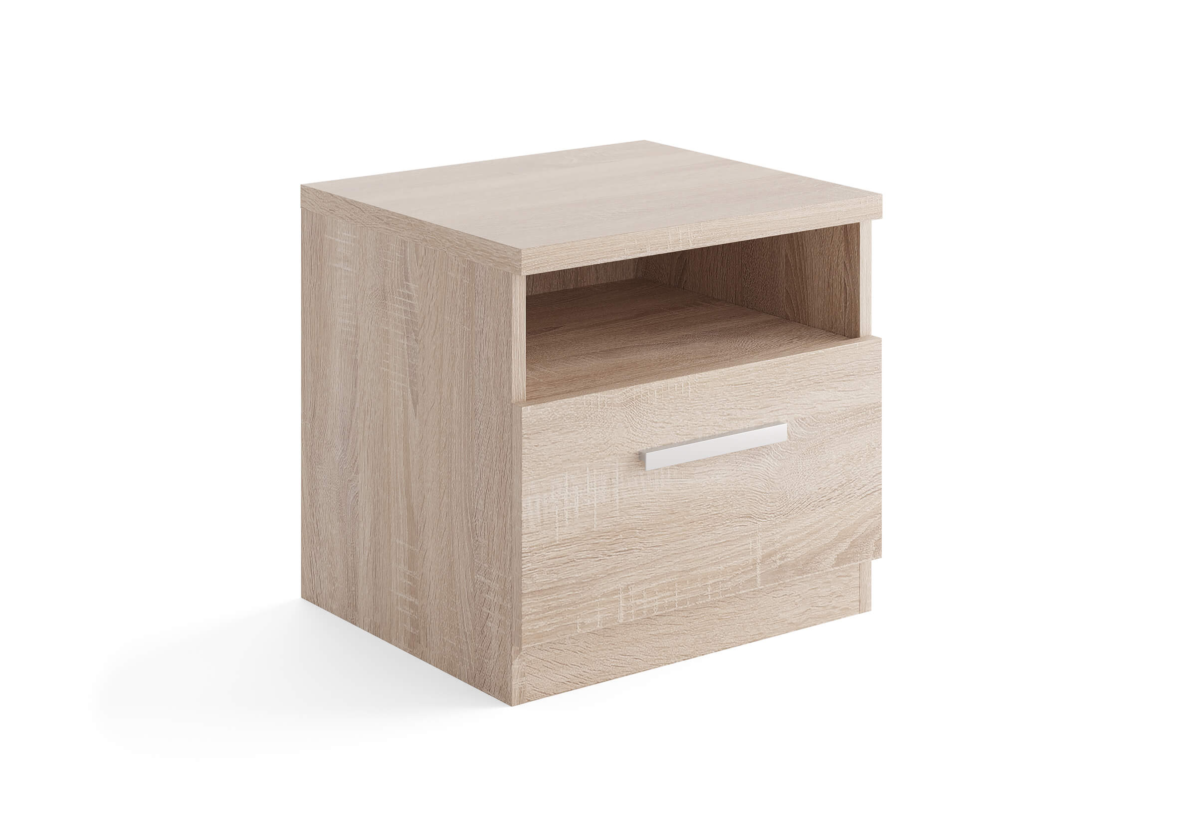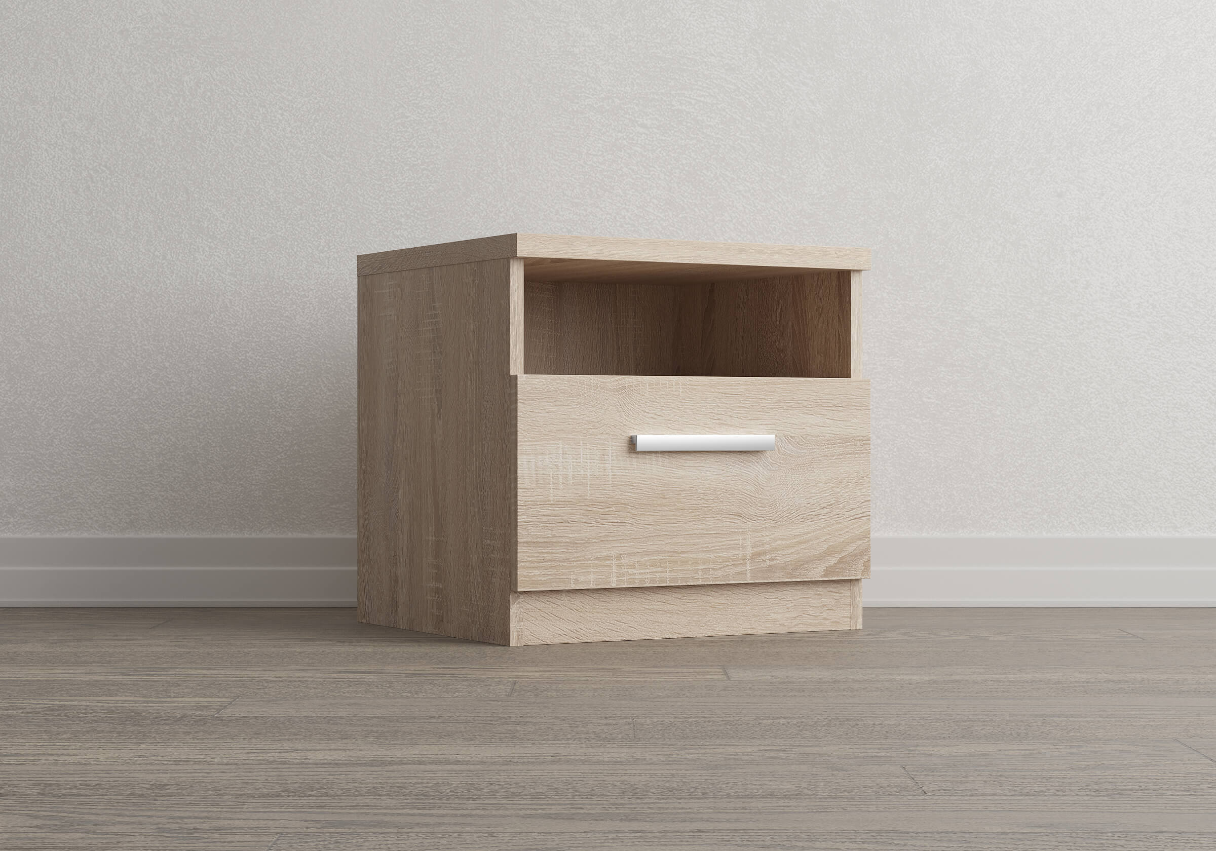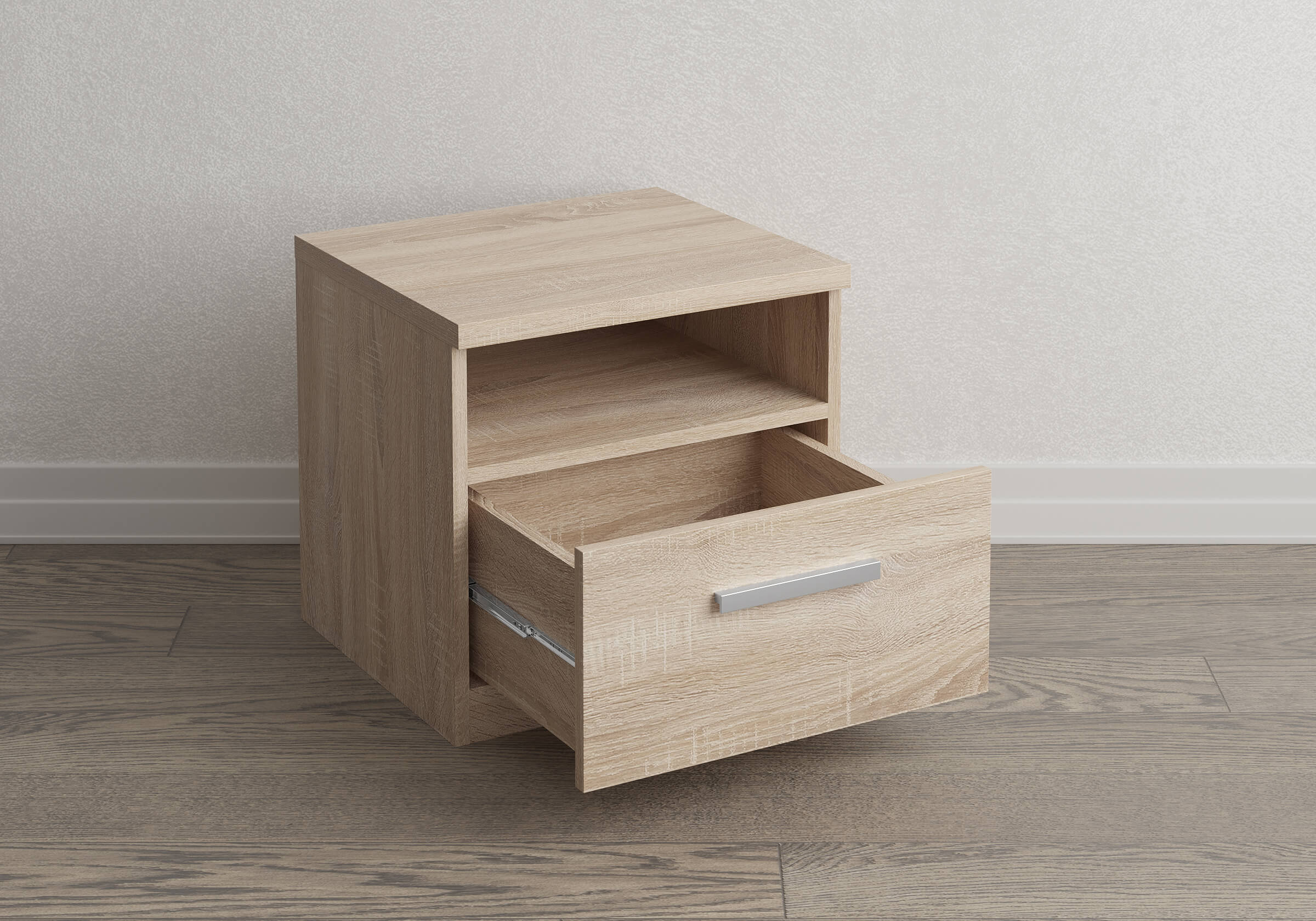 Прикроватная тумба с одним выдвижным ящиком и нишей сочетается с любыми моделями кроватей. Прямые углы, лаконичные металлические ручки, увеличенная толщина плиты ЛДСП 25 мм. Шариковые направляющие без доводчика. Стильная и практичная тумба прекрасно дополнит собой любой интерьер.
