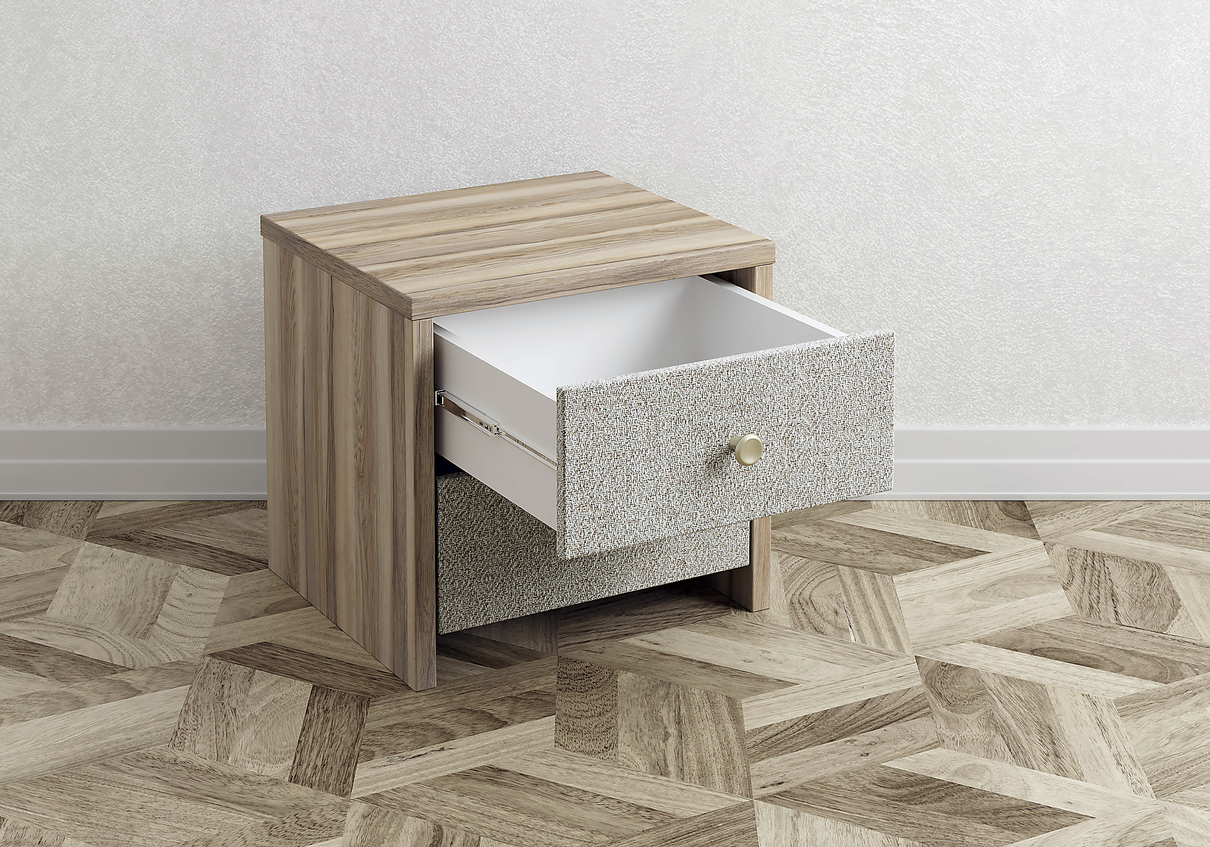 Прикроватная тумба с выдвижными ящикам сочетается с любыми моделями кроватей. Прямые углы, лаконичные металлические ручки, увеличенная толщина плиты ЛДСП 25 мм. Шариковые направляющие без доводчика. Фасады выдвижных ящиков выполняются в любой ткани на выбор. Стильная и практичная тумба прекрасно дополнит собой как кровать в полностью мягком исполнении, так и для комбинированных моделей из мягкого изголовья с ламинированными царгами.
