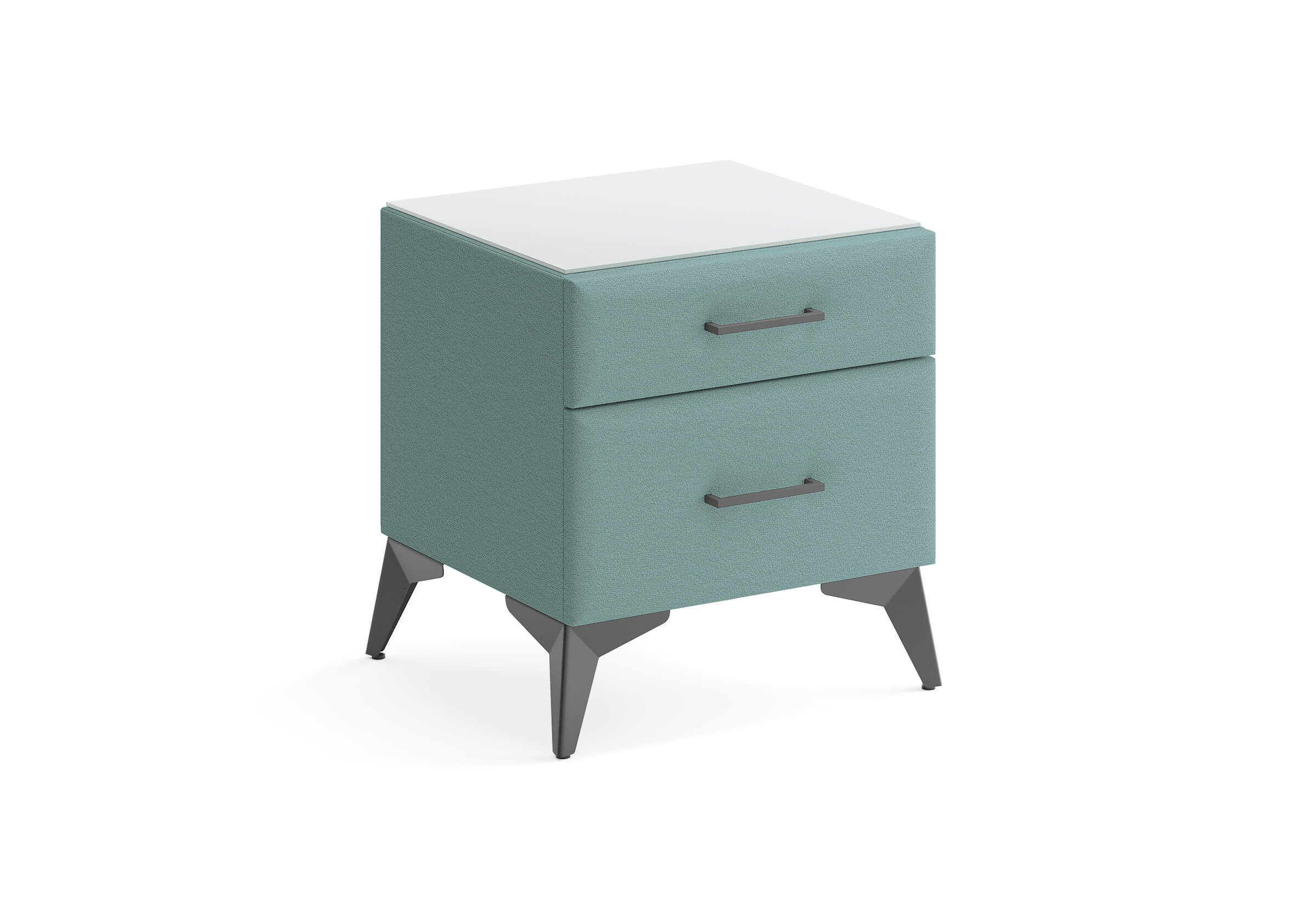 Тумба Merida представляет собой идеальное сочетание функциональности и эстетики. Тумба выполнена полностью в ткани. Высокие металлические опоры позволяют обеспечить легкое поддержание чистоты. Ящики выкатываются на направляющих скрытого монтажа с доводчиками и имеют разную высоту. Изящные металлические ручки дополняют образ.