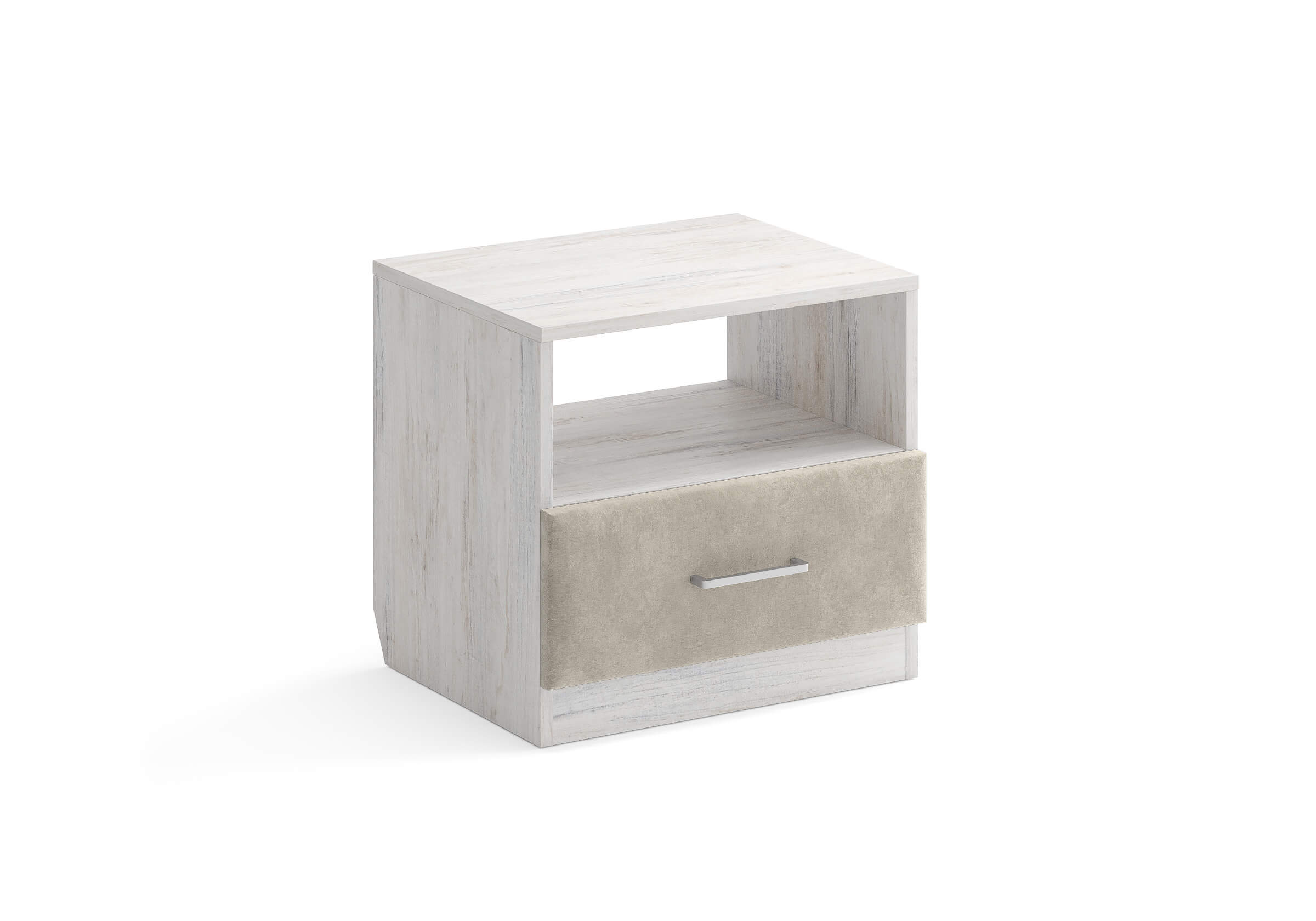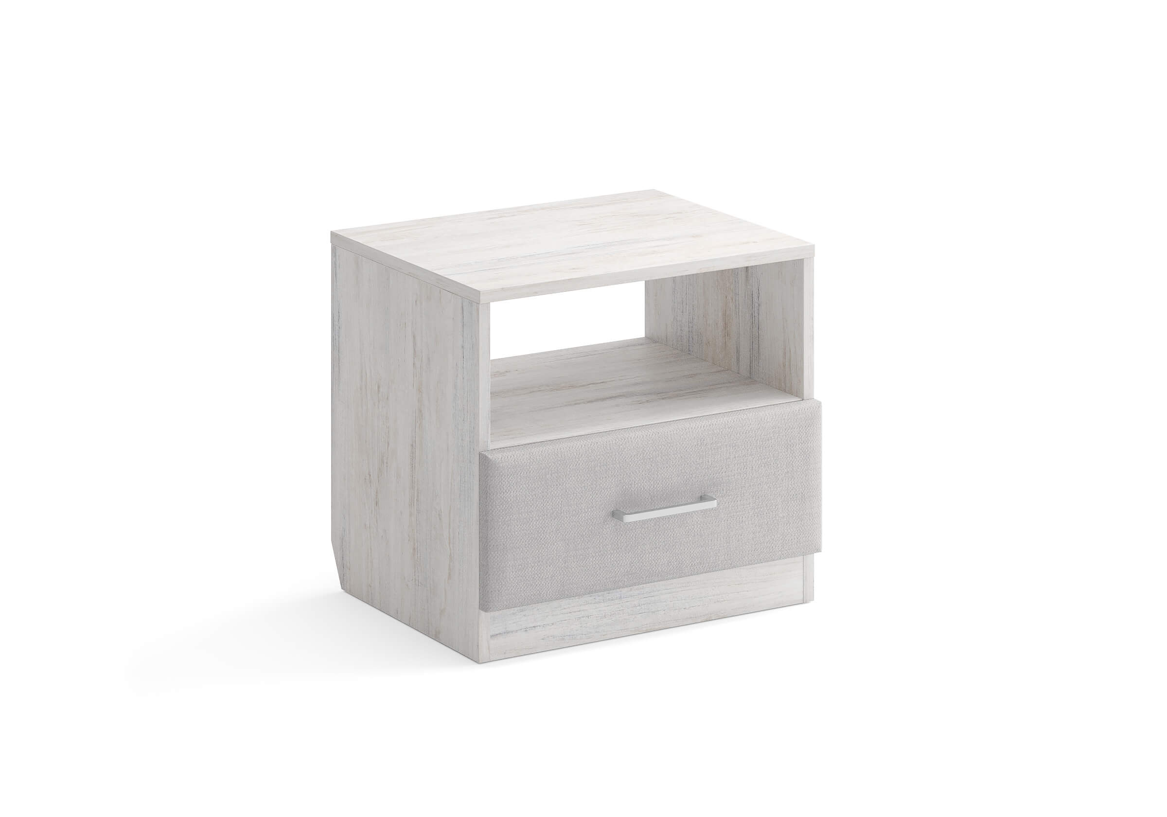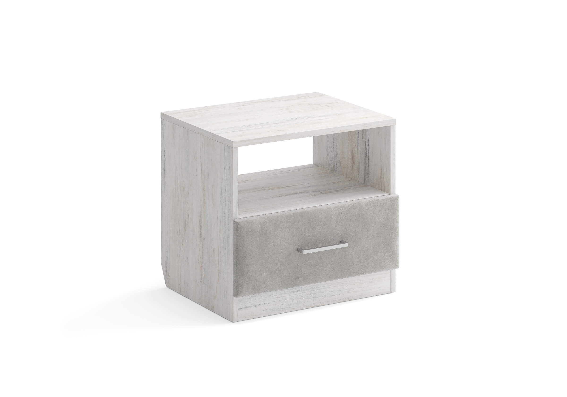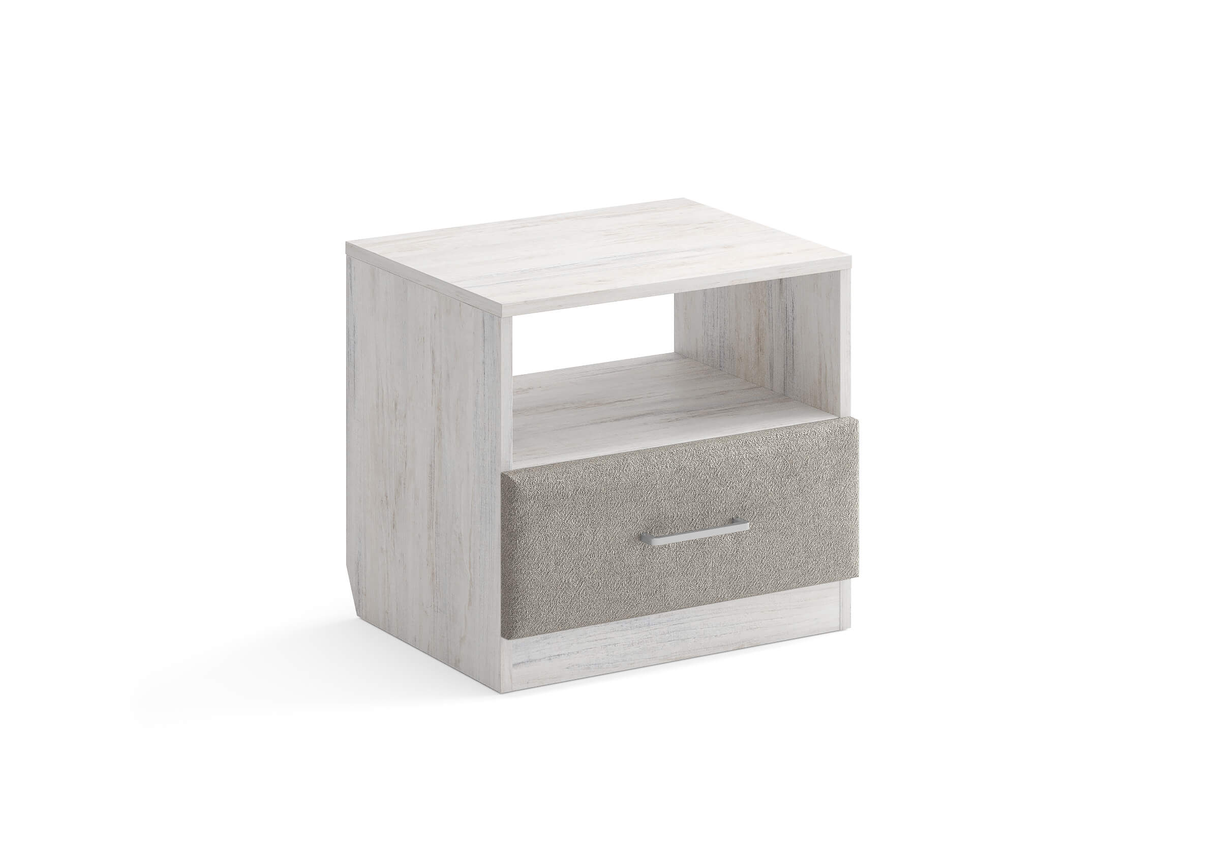 Элегантная комбинированная тумба, сочетающая в себе лаконичность ЛДСП и уют мягких фасадов ящиков, обтянутых тканью. Конструкция тумбы предусматривает открытую нишу для мелочей и вместительный выдвижной ящик с направляющими скрытого монтажа и доводчиками. Корпус из ЛДСП гарантирует долговечность и устойчивость к механическим повреждениям, а мягкие фасады в ткани и изящные металлические ручки добавят уют. Большое разнообразие текстур и цветовых решений для гармоничной интеграции в любой интерьер.