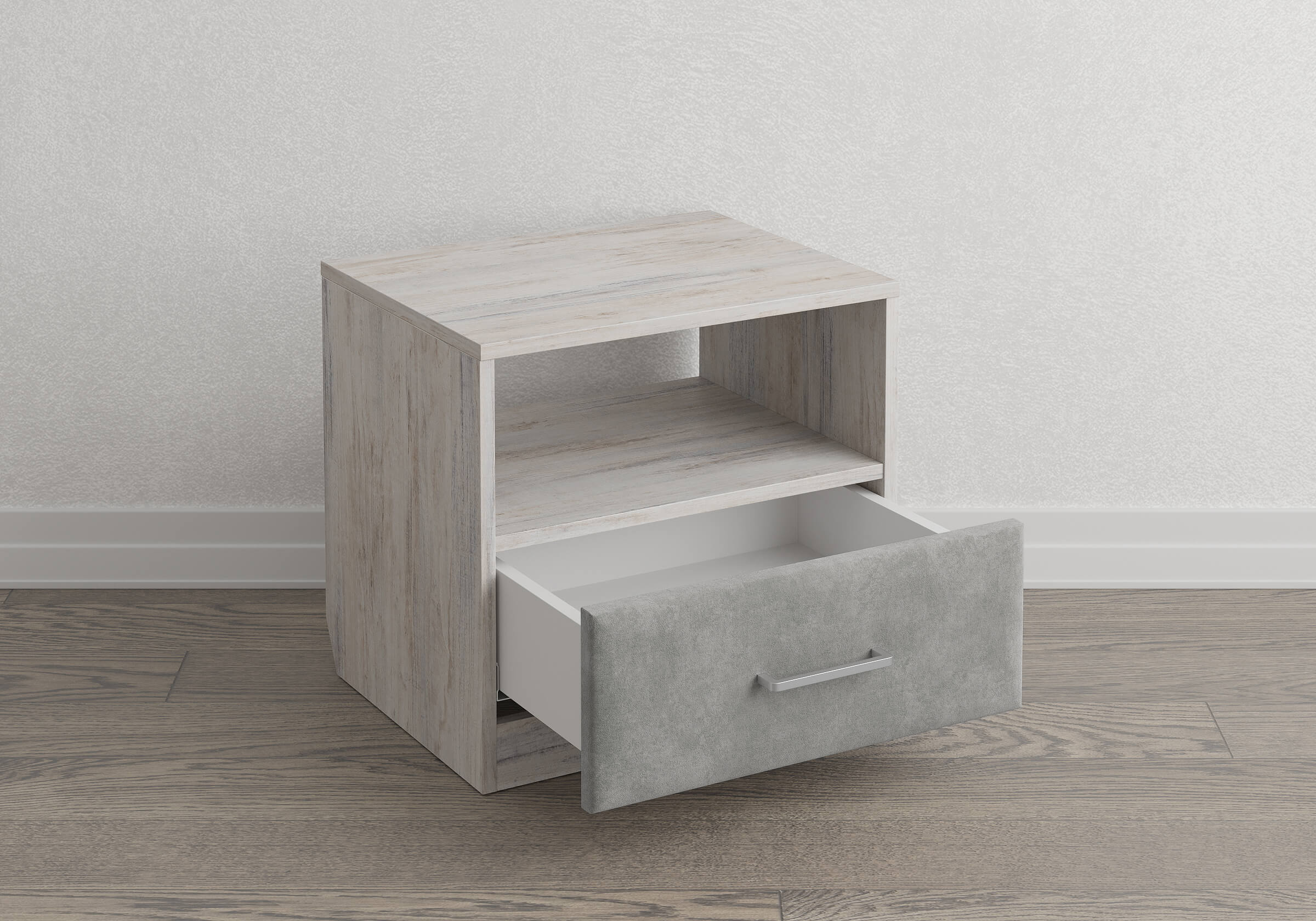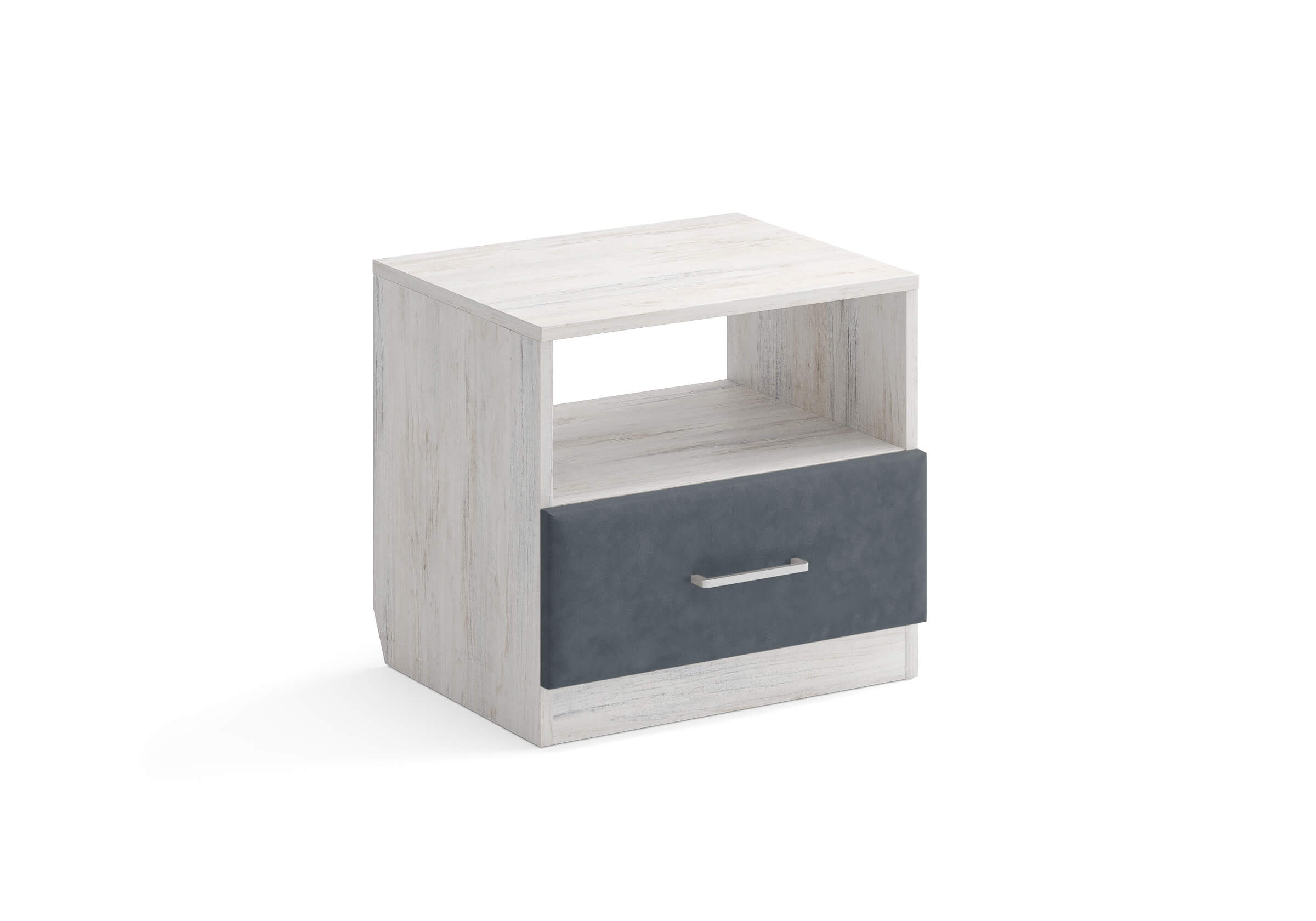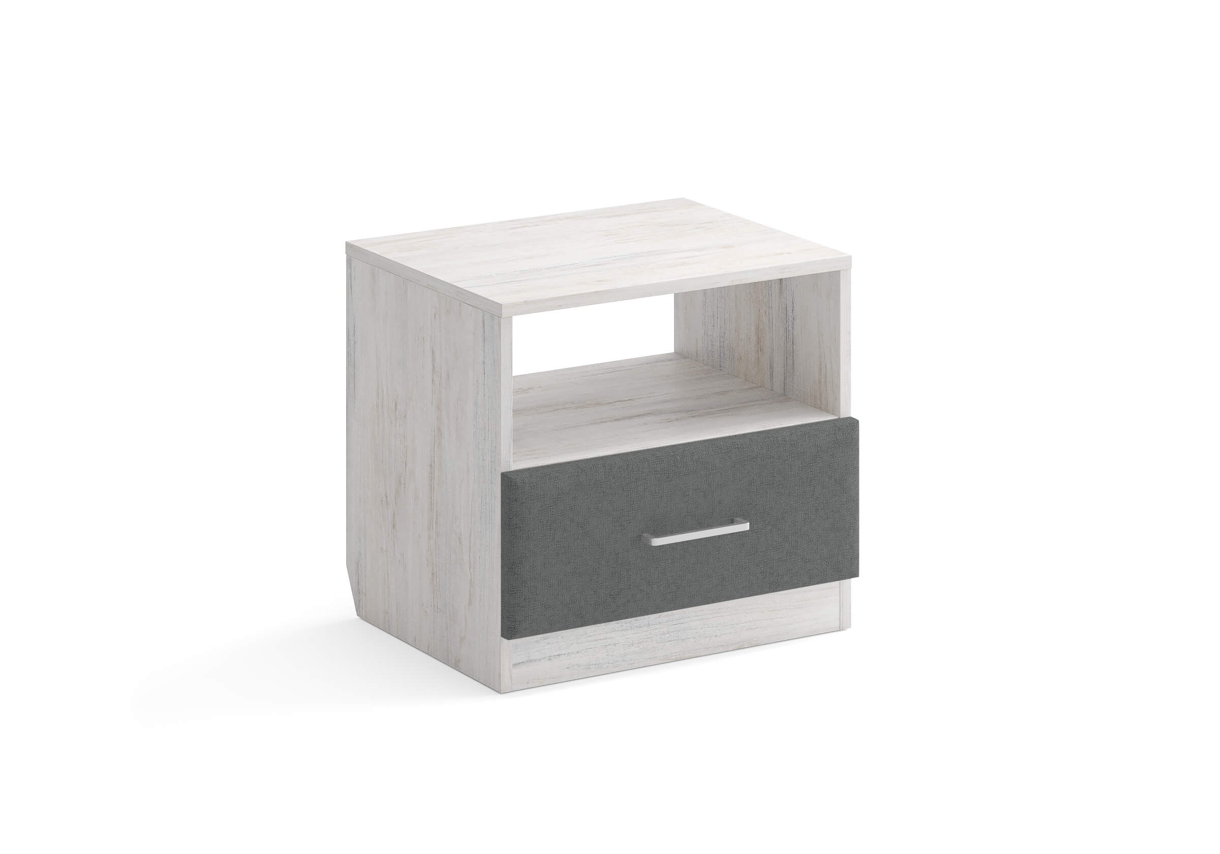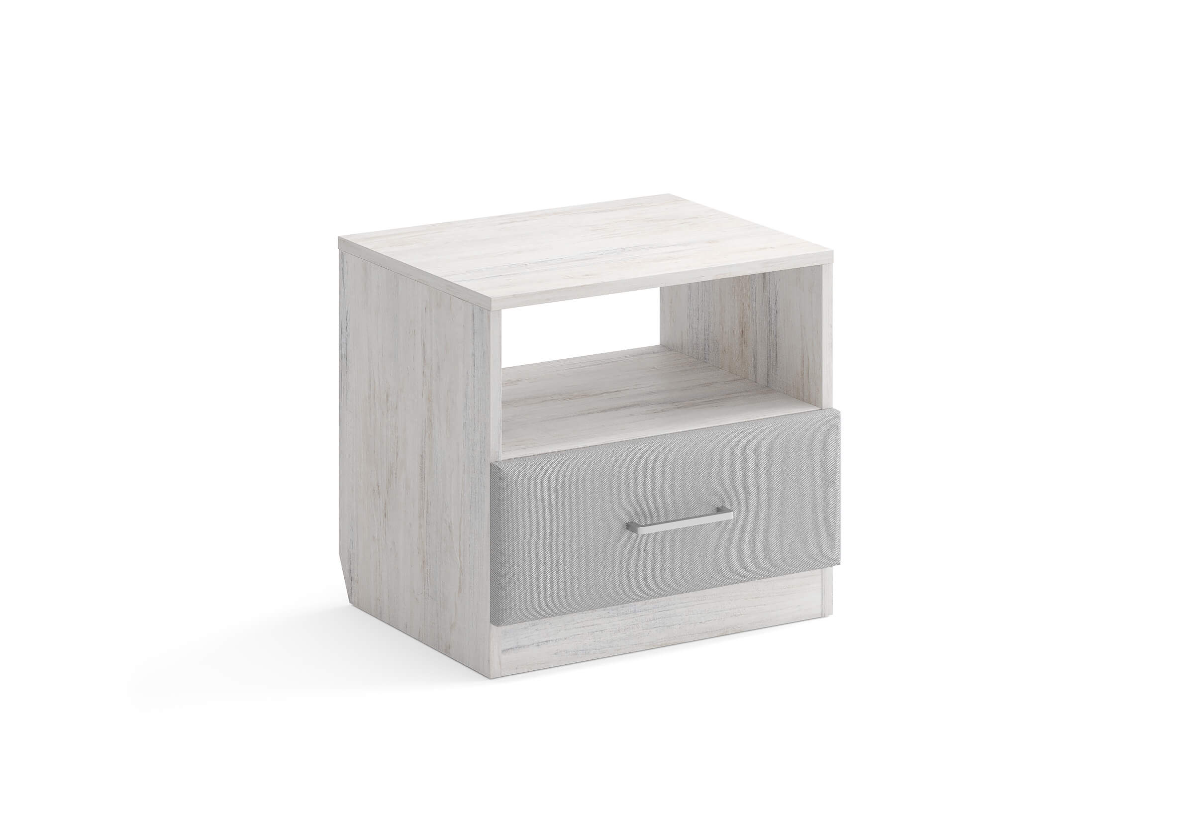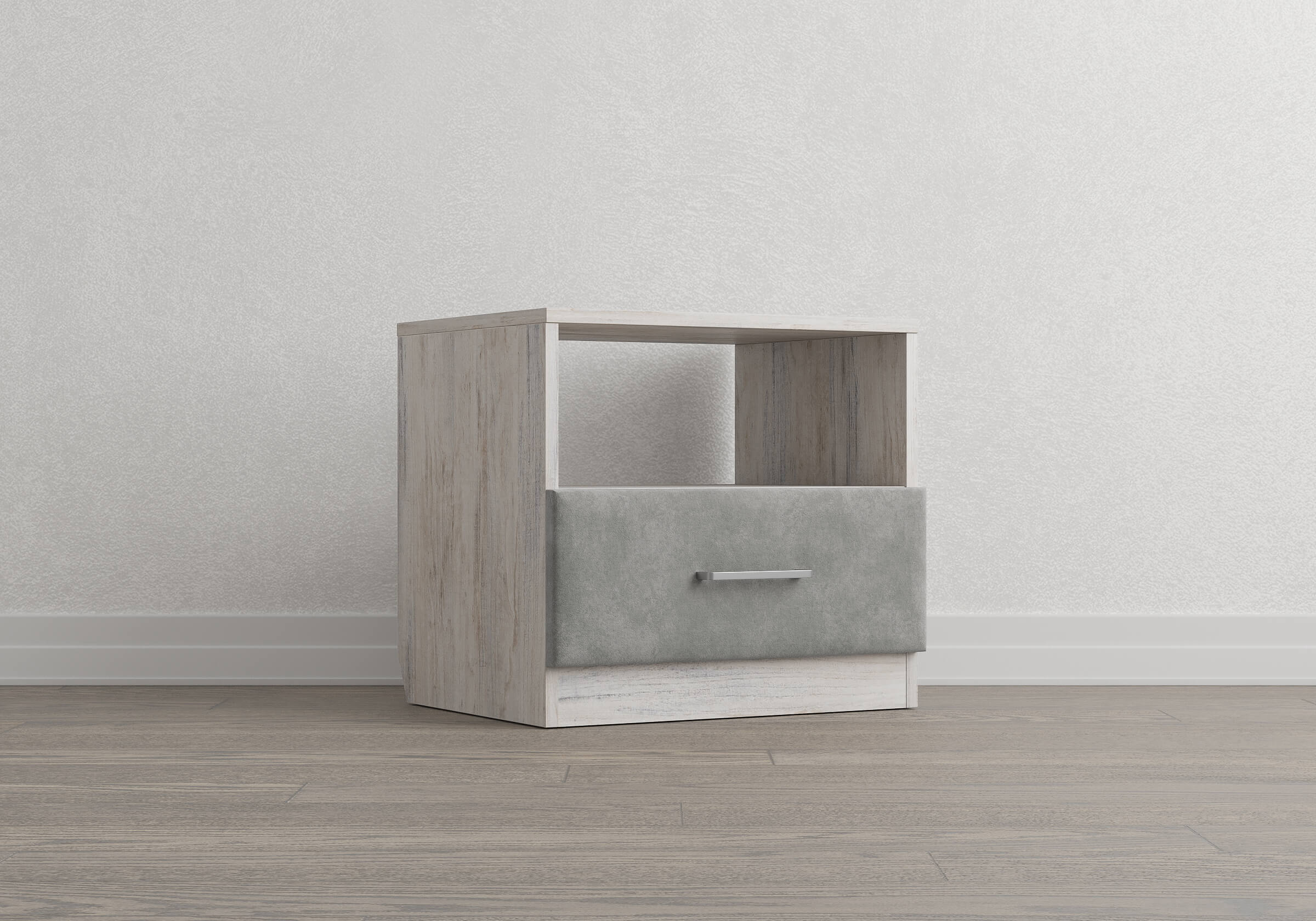 Элегантная комбинированная тумба, сочетающая в себе лаконичность ЛДСП и уют мягких фасадов ящиков, обтянутых тканью. Конструкция тумбы предусматривает открытую нишу для мелочей и вместительный выдвижной ящик с направляющими скрытого монтажа и доводчиками. Корпус из ЛДСП гарантирует долговечность и устойчивость к механическим повреждениям, а мягкие фасады в ткани и изящные металлические ручки добавят уют. Большое разнообразие текстур и цветовых решений для гармоничной интеграции в любой интерьер.