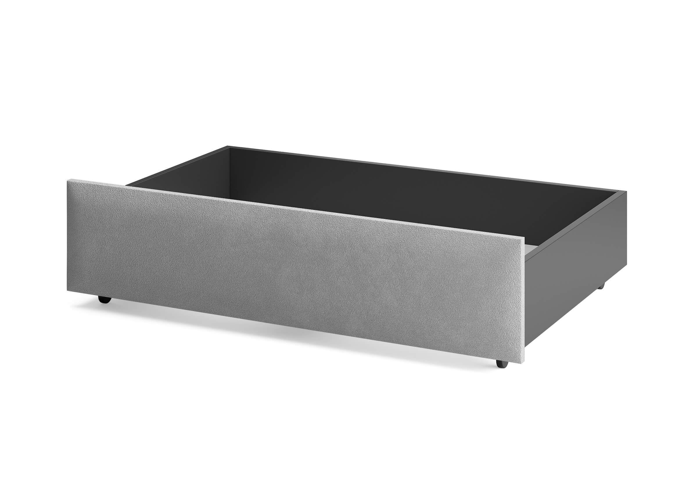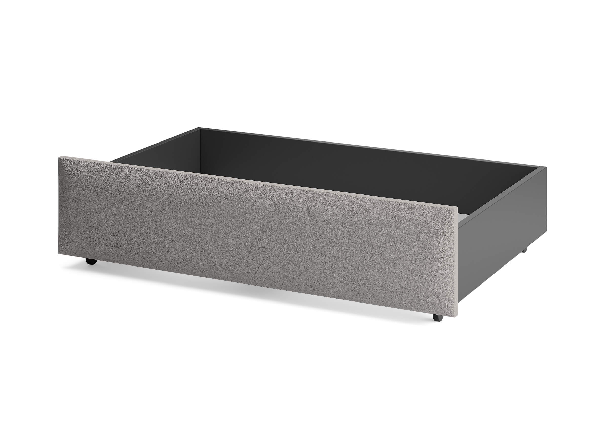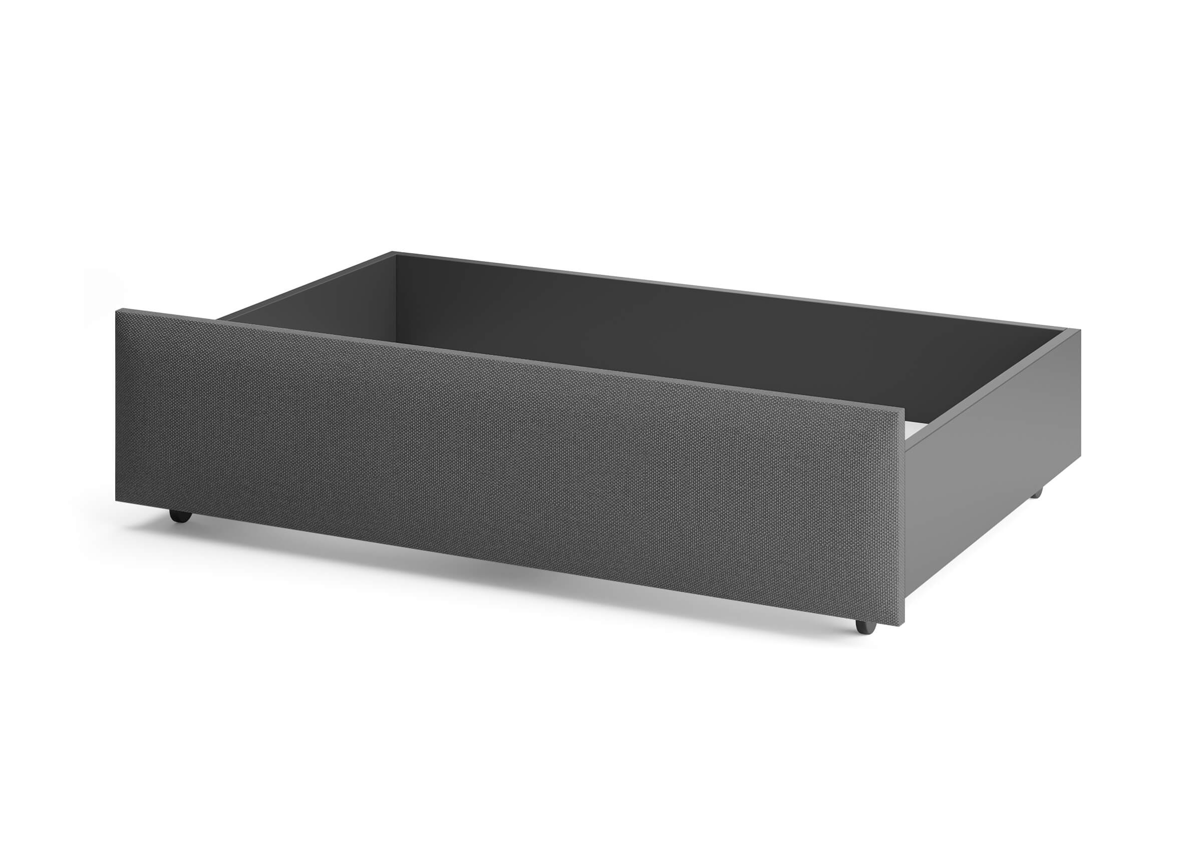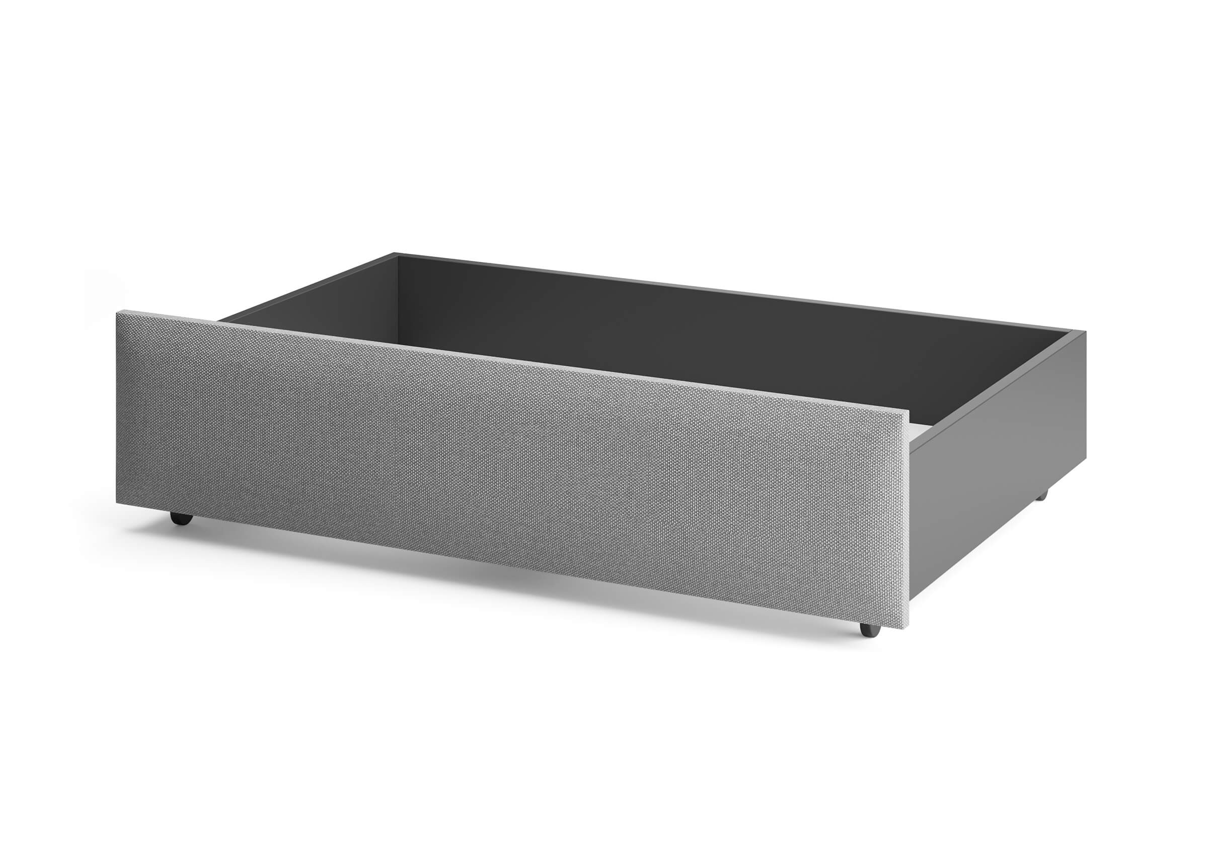 Ящик для хранения в ткани — лаконичное и функциональное решение для интерьера в современном, скандинавском и стиле минимализм. Ящики c мягкой обивкой фасада идеально сочетаются с кроватями Hanna и Julia, являются их функциональным дополнением — местом хранения. Ящики позволяют задействовать пространство под кроватью, не загромождая спальню. Они мобильны, их легко выкатывать и задвигать, что удобно для быстрого доступа к вещам, а также легкой уборки под кроватью. Фасад ящика мягкий, выполнен в тканевой обивке. Материал исполнения такой же как у кроватей Hanna, Julia — практичная рогожка багама. Корпус – ЛДСП графит. Надежные, поворотные колесные опоры с радиусом поворота 360 градусов.