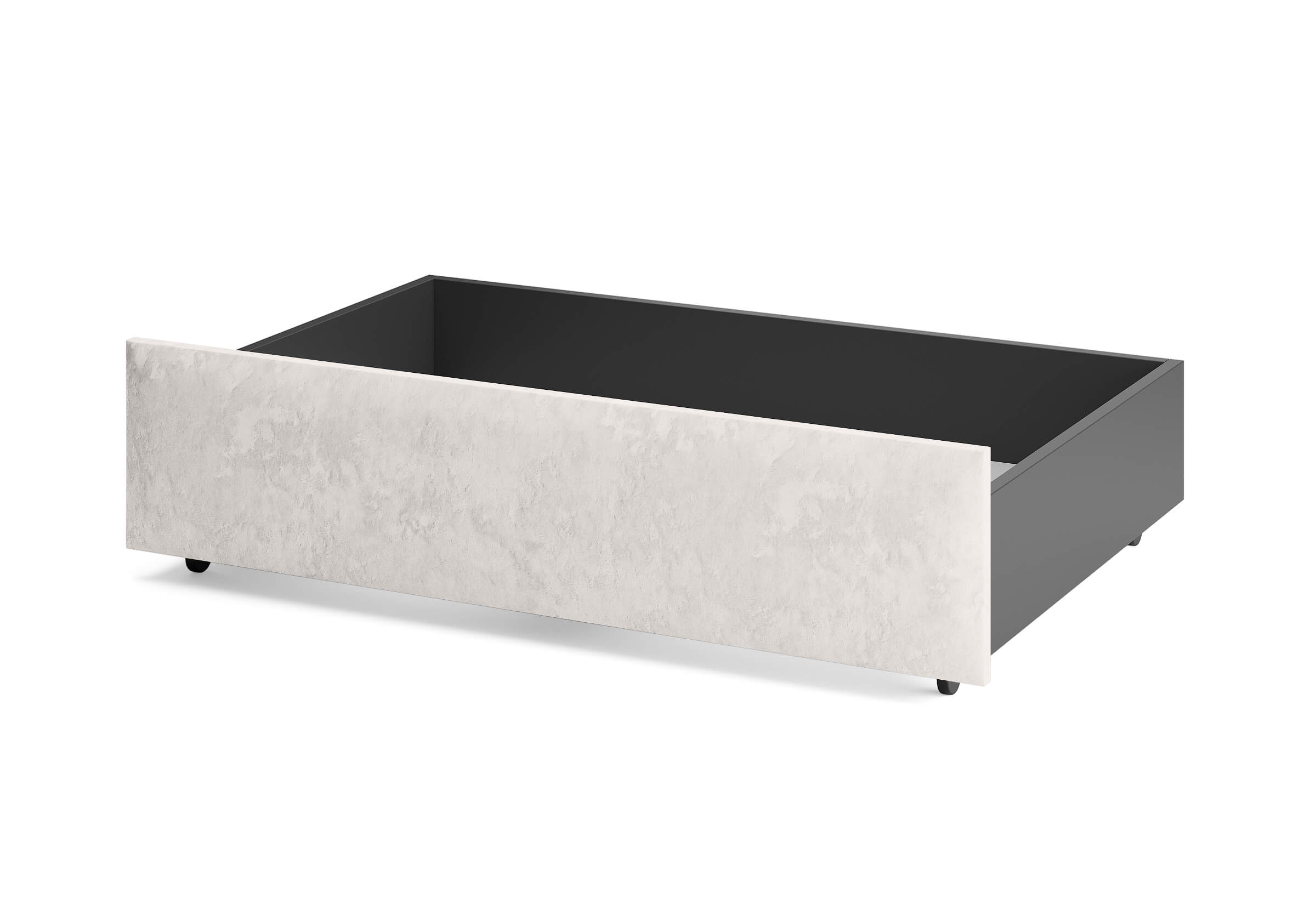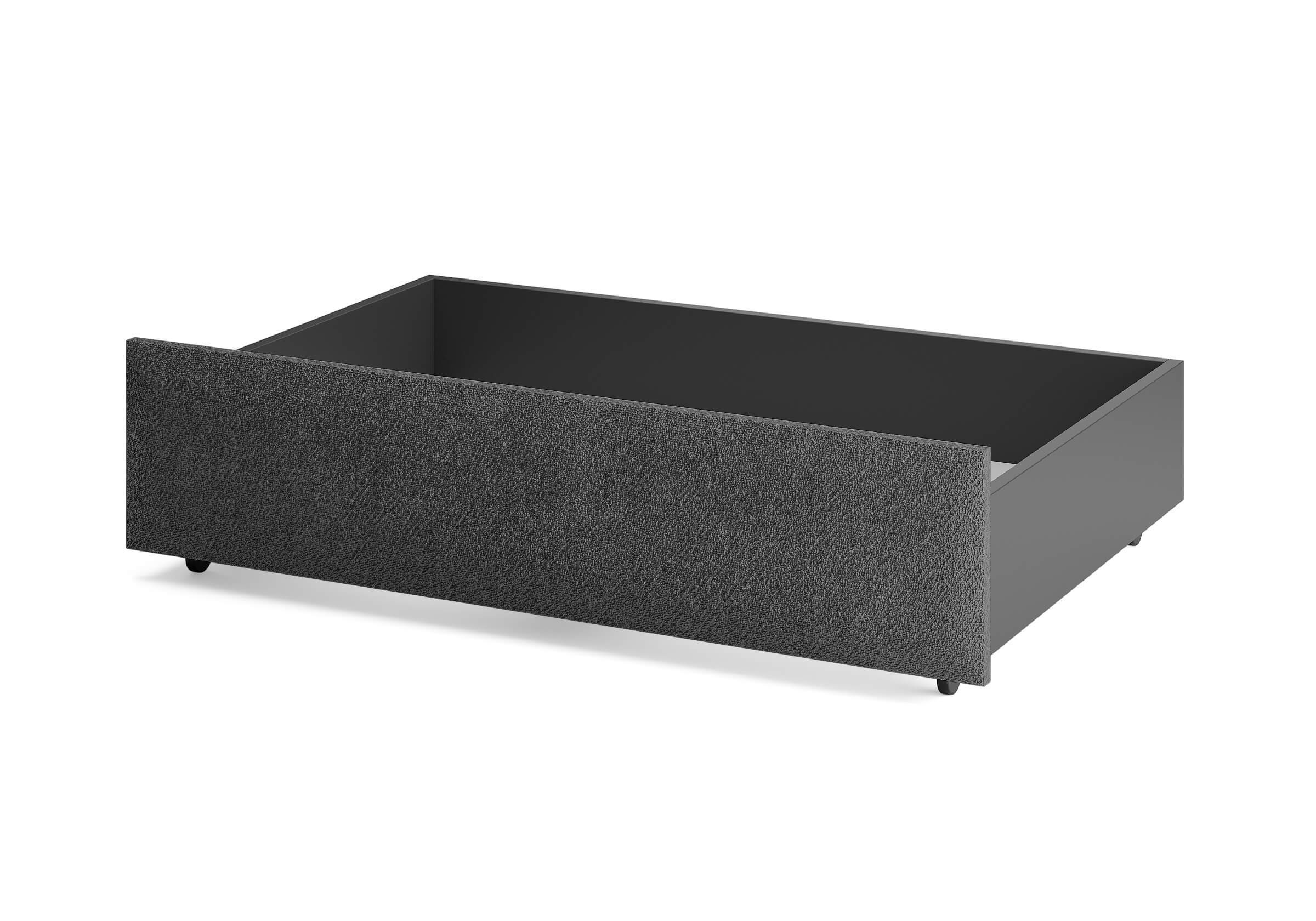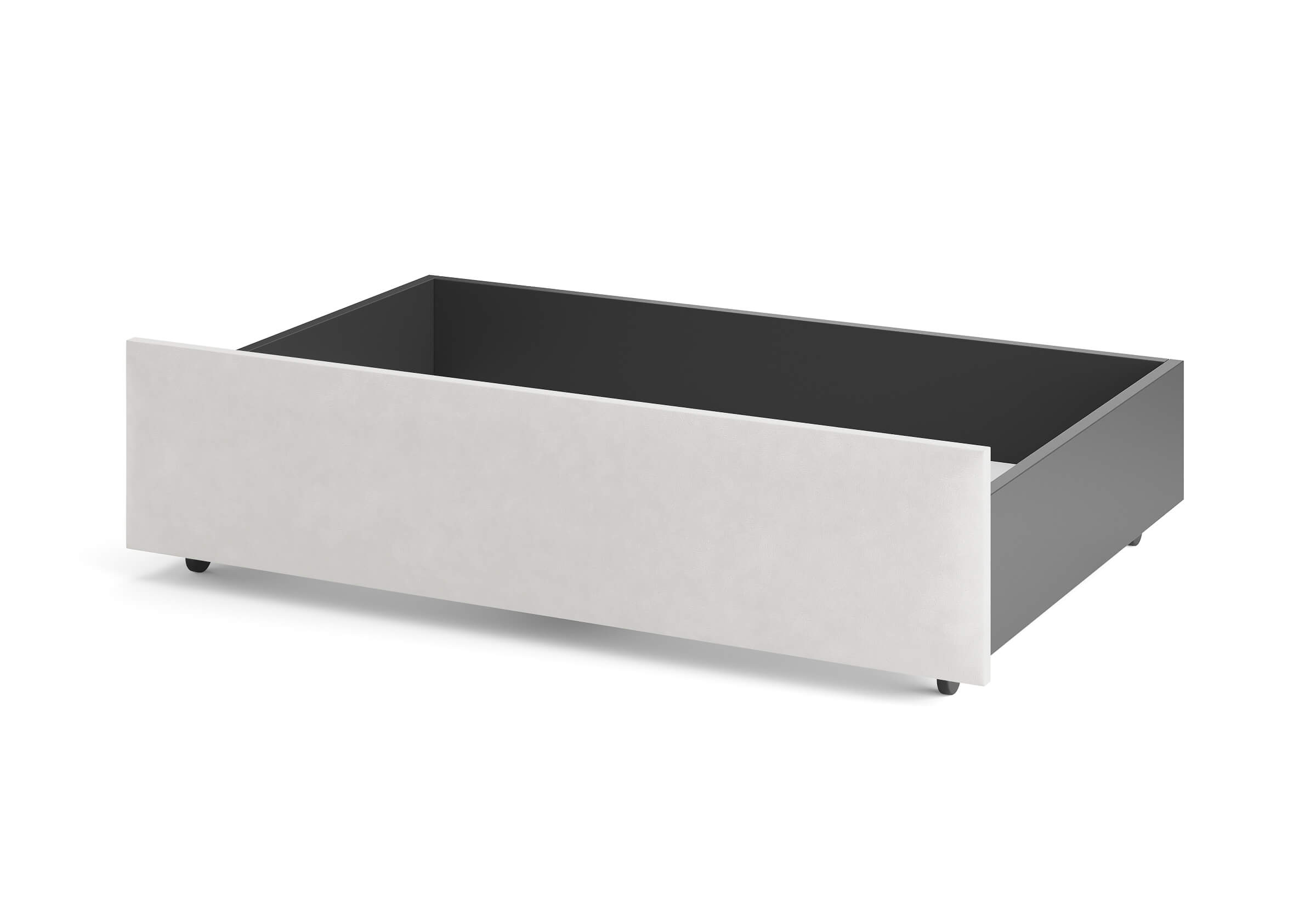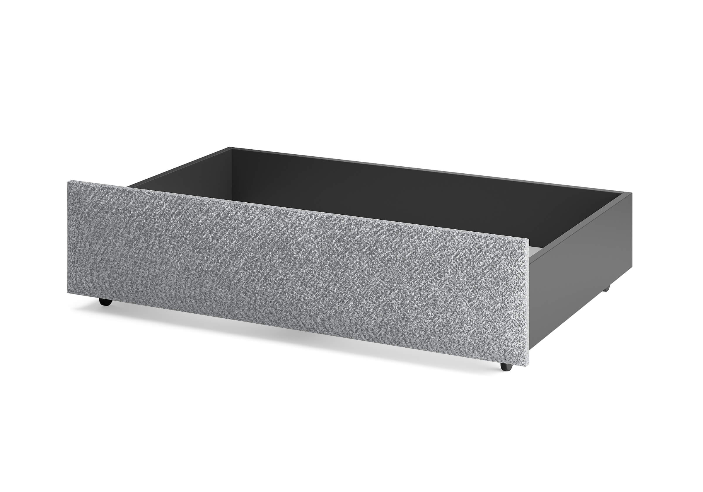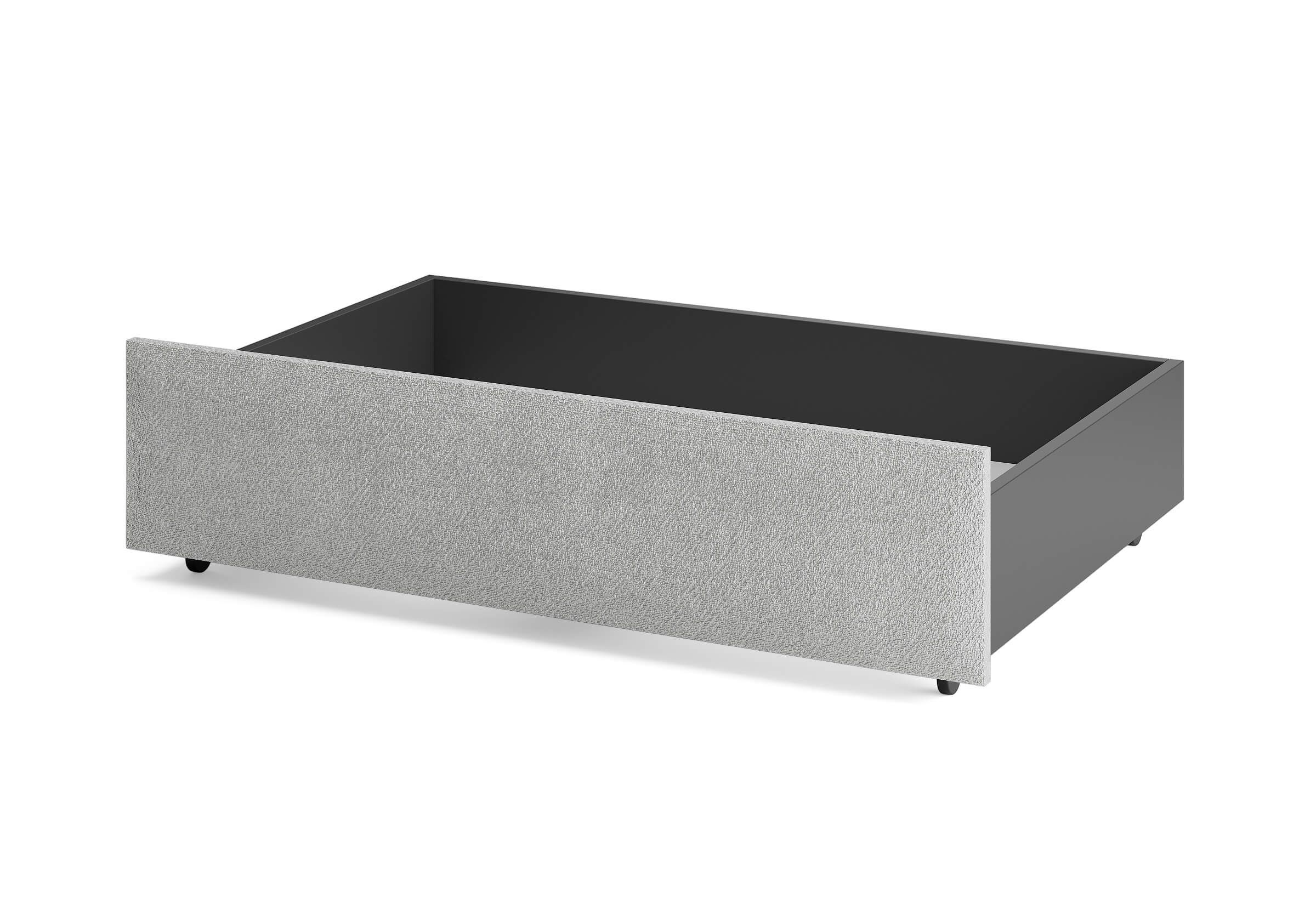 Ящик для хранения в ткани — лаконичное и функциональное решение для интерьера в современном, скандинавском и стиле минимализм. Ящики c мягкой обивкой фасада идеально сочетаются с кроватями Hanna и Julia, являются их функциональным дополнением — местом хранения. Ящики позволяют задействовать пространство под кроватью, не загромождая спальню. Они мобильны, их легко выкатывать и задвигать, что удобно для быстрого доступа к вещам, а также легкой уборки под кроватью. Фасад ящика мягкий, выполнен в тканевой обивке. Материал исполнения такой же как у кроватей Hanna, Julia — практичная рогожка багама. Корпус – ЛДСП графит. Надежные, поворотные колесные опоры с радиусом поворота 360 градусов.
