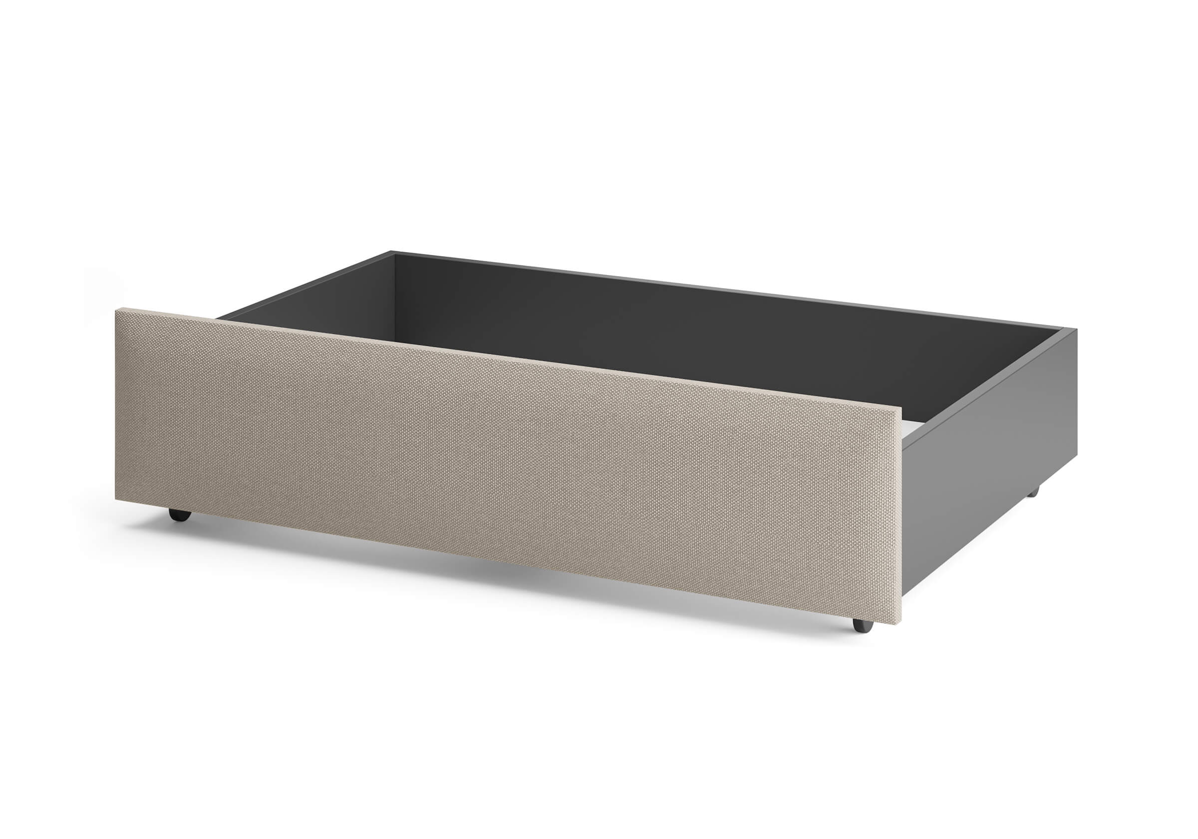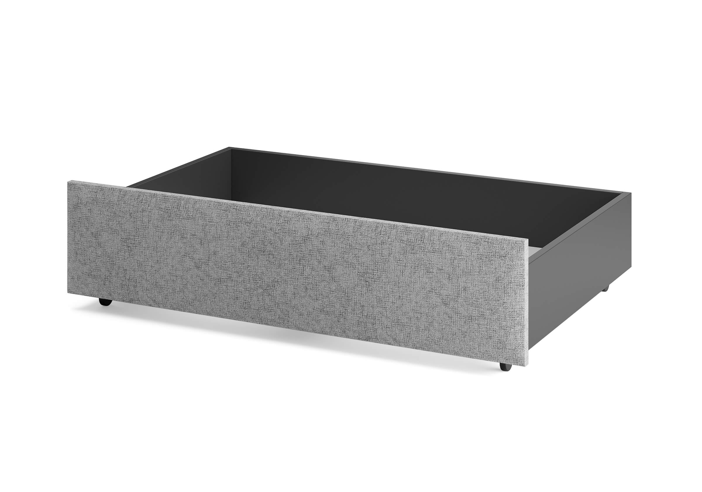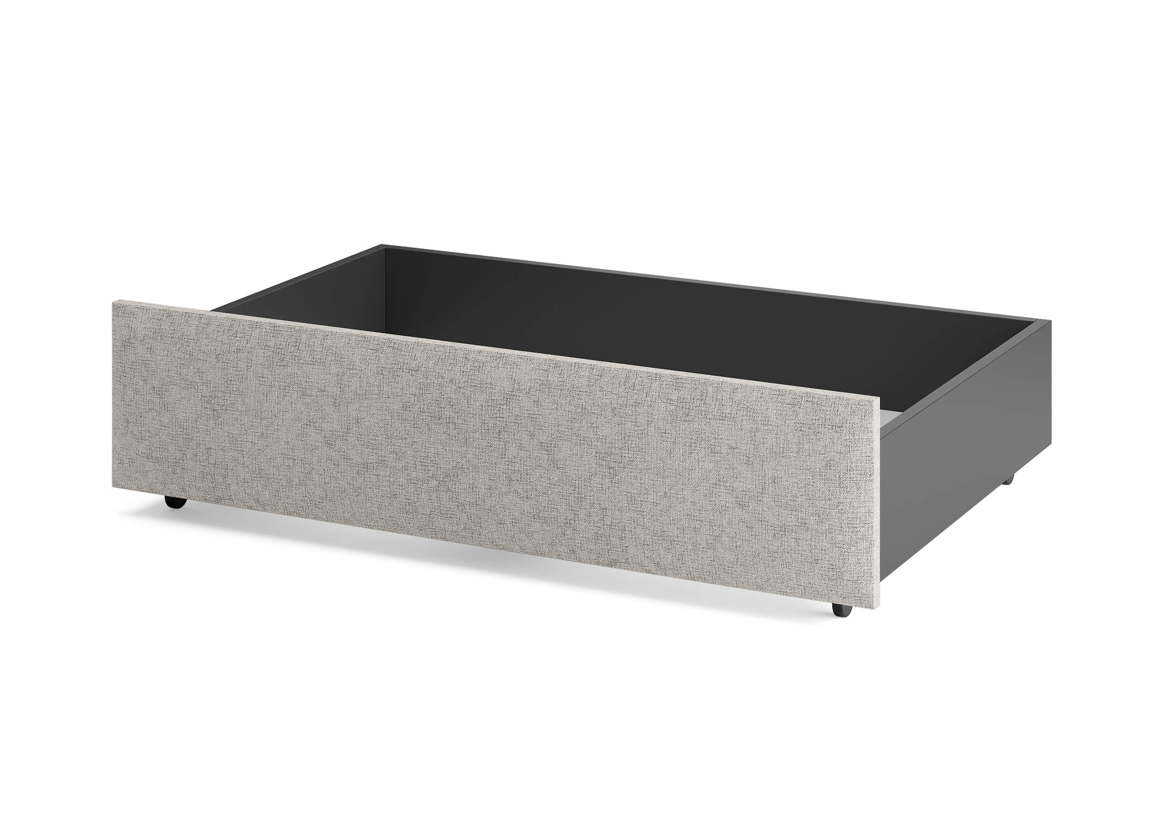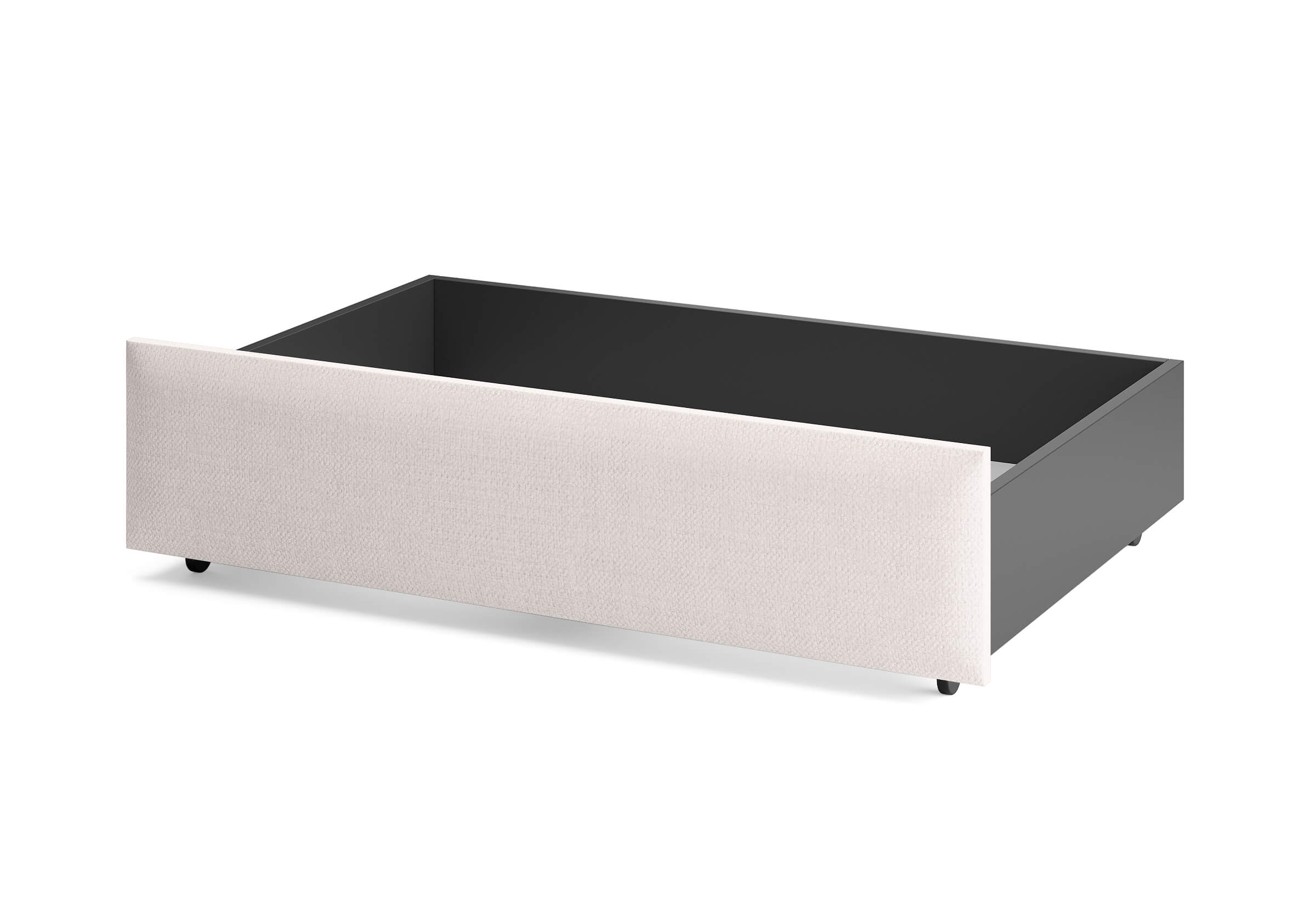 Ящик для хранения в ткани — лаконичное и функциональное решение для интерьера в современном, скандинавском и стиле минимализм. Ящики c мягкой обивкой фасада идеально сочетаются с кроватями Hanna и Julia, являются их функциональным дополнением — местом хранения. Ящики позволяют задействовать пространство под кроватью, не загромождая спальню. Они мобильны, их легко выкатывать и задвигать, что удобно для быстрого доступа к вещам, а также легкой уборки под кроватью. Фасад ящика мягкий, выполнен в тканевой обивке. Материал исполнения такой же как у кроватей Hanna, Julia — практичная рогожка багама. Корпус – ЛДСП графит. Надежные, поворотные колесные опоры с радиусом поворота 360 градусов.