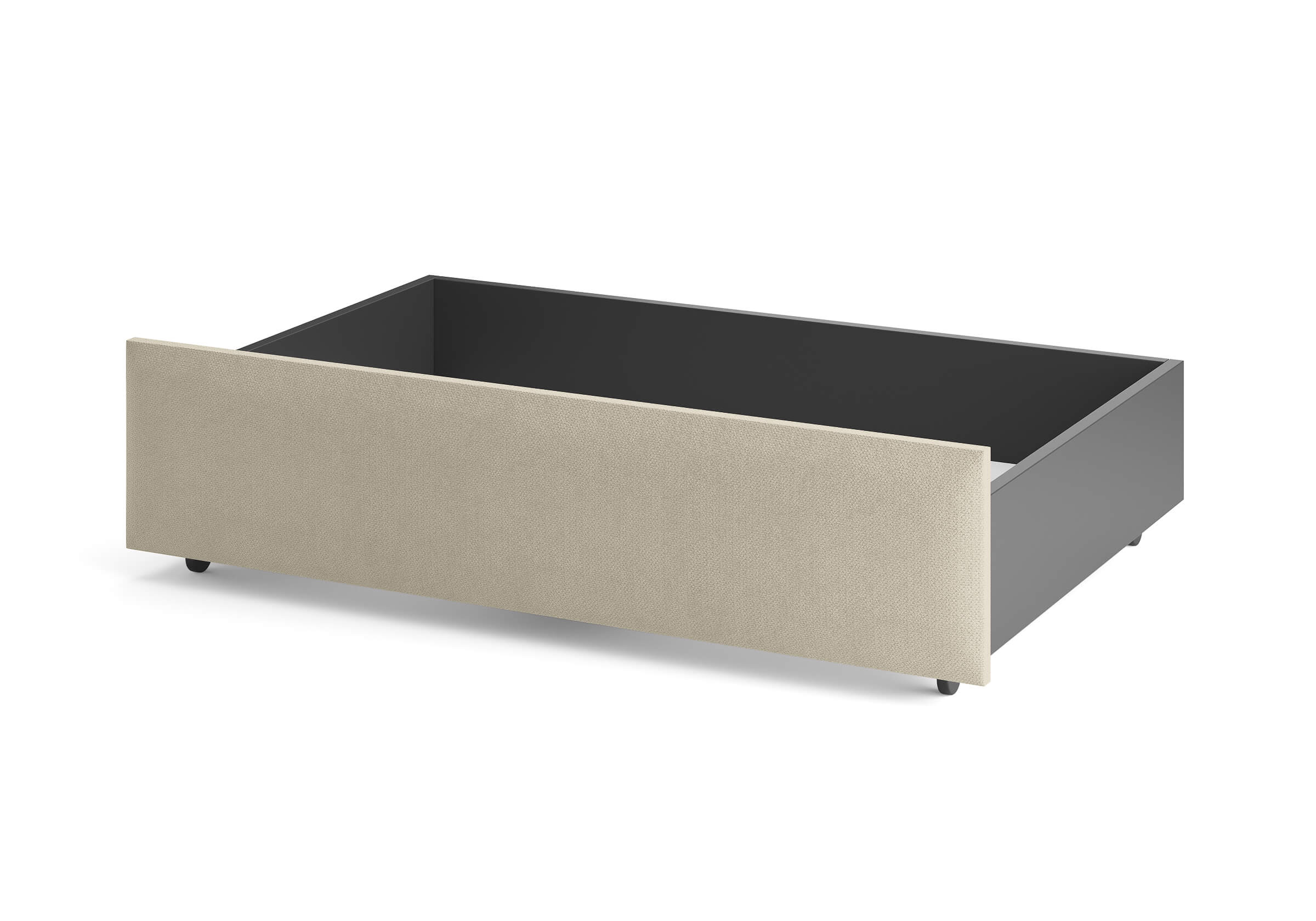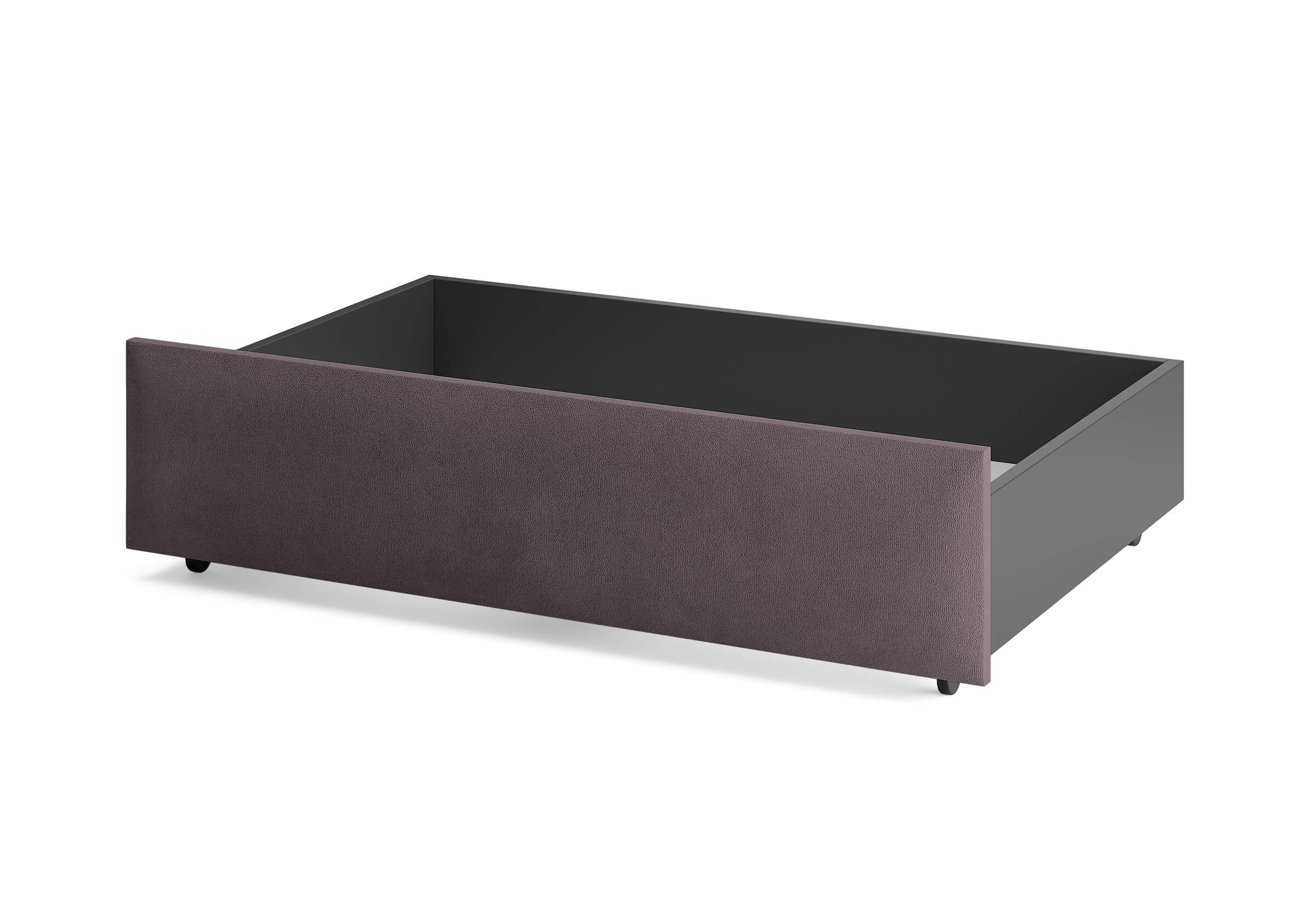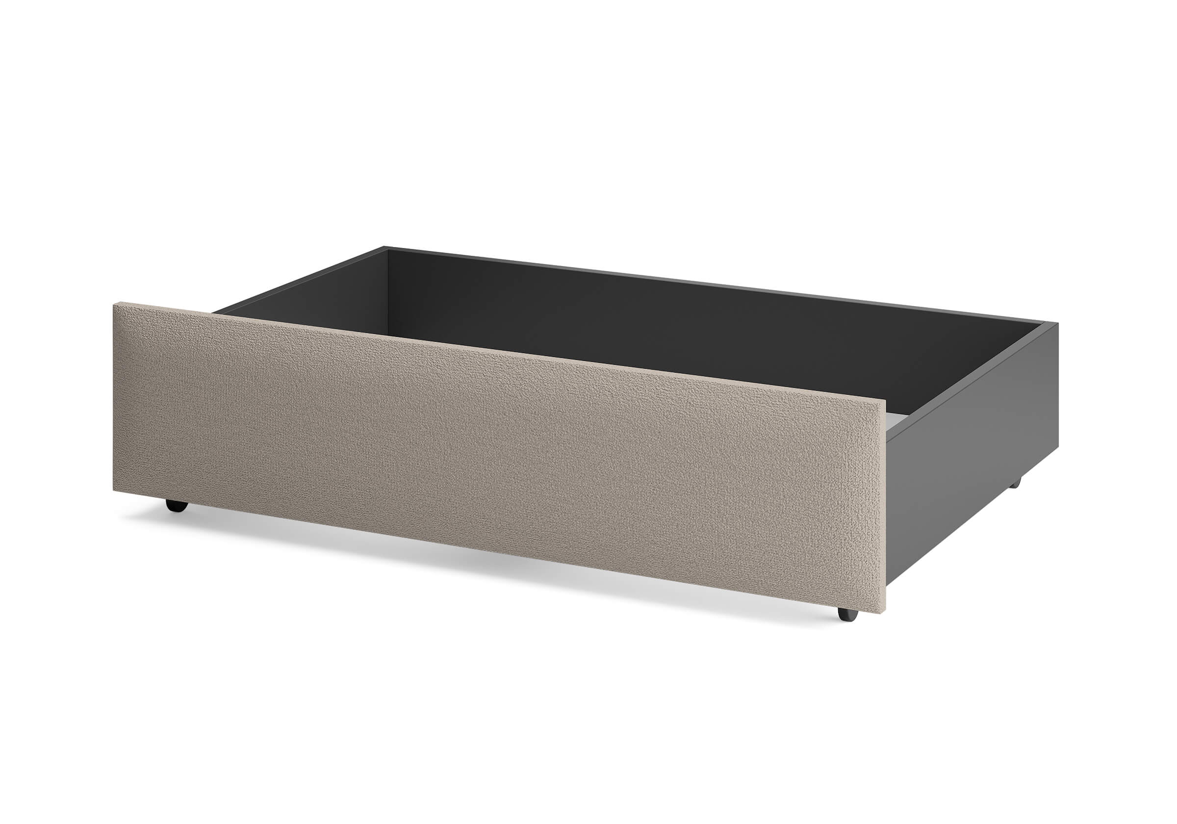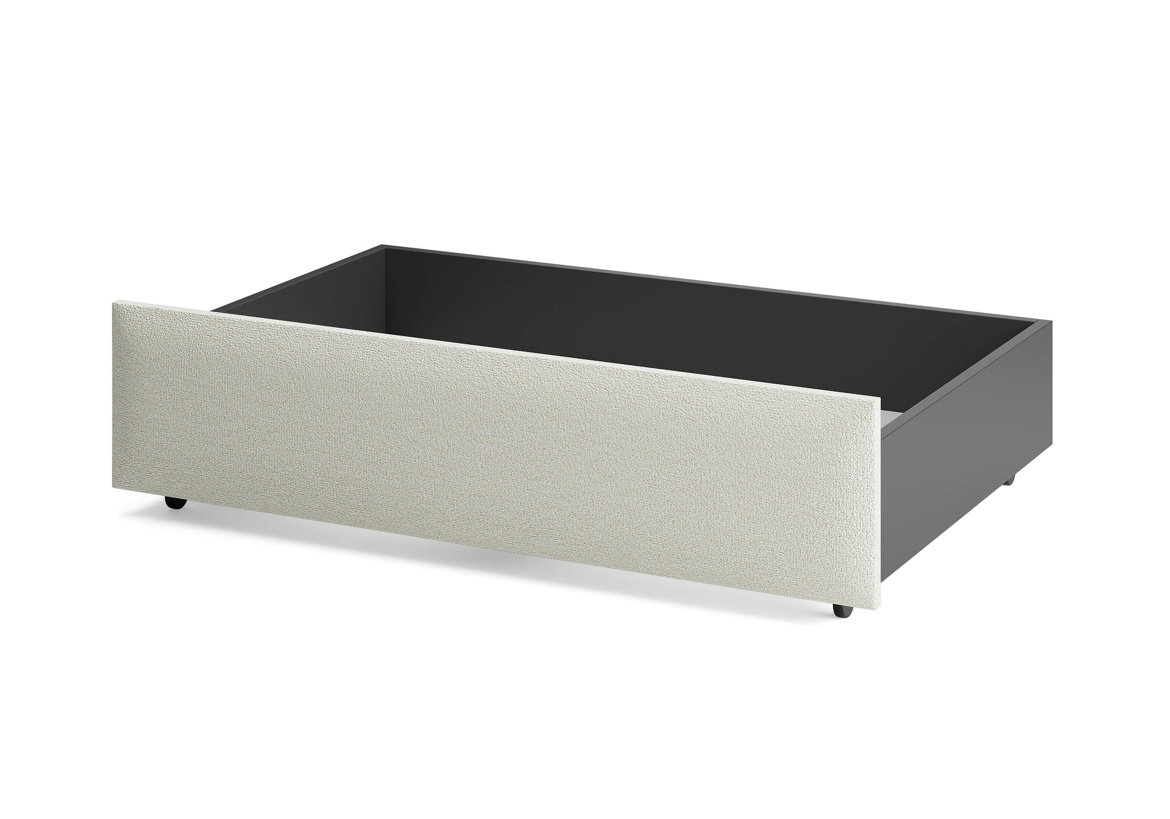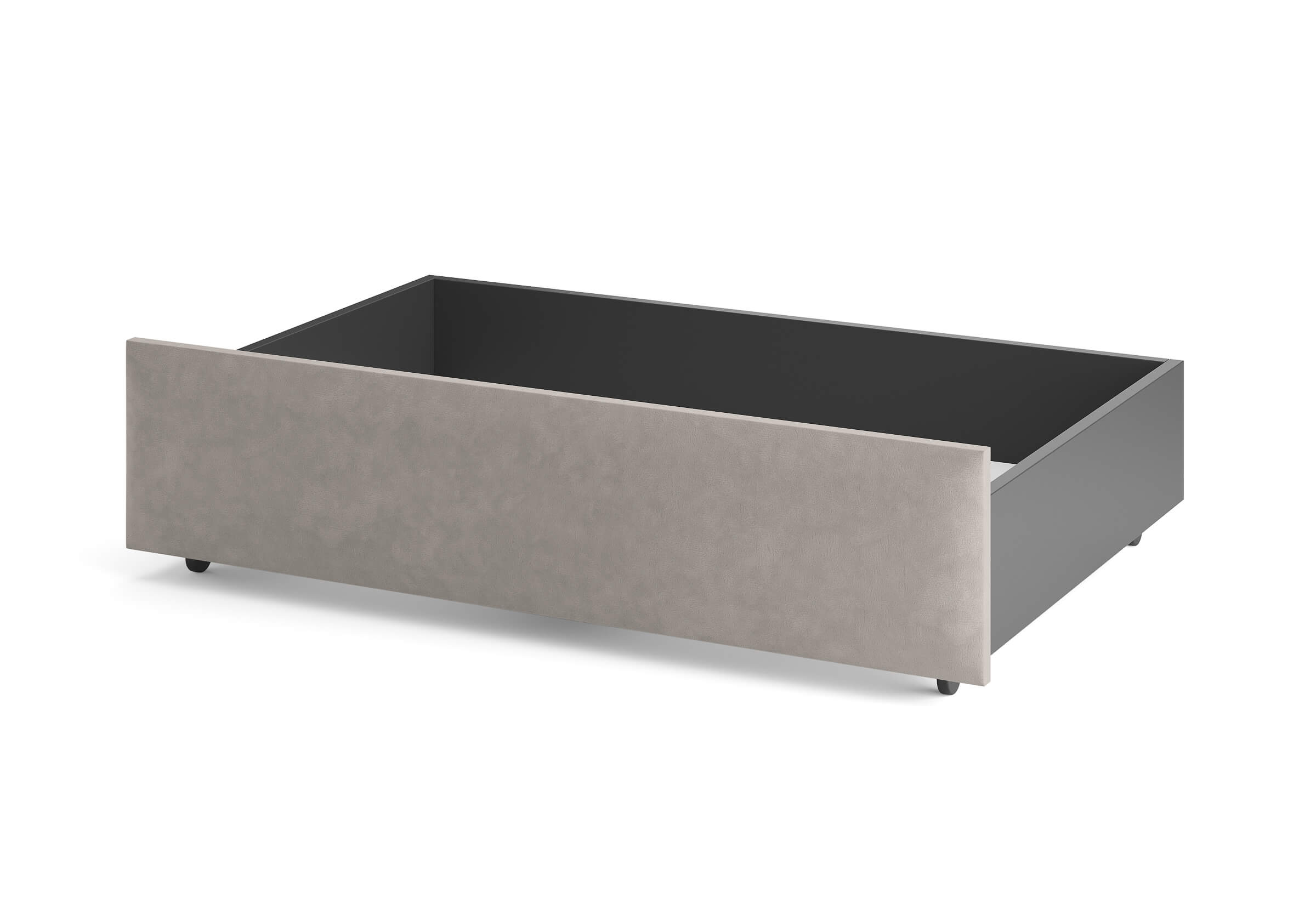 Ящик для хранения в ткани — лаконичное и функциональное решение для интерьера в современном, скандинавском и стиле минимализм. Ящики c мягкой обивкой фасада идеально сочетаются с кроватями Hanna и Julia, являются их функциональным дополнением — местом хранения. Ящики позволяют задействовать пространство под кроватью, не загромождая спальню. Они мобильны, их легко выкатывать и задвигать, что удобно для быстрого доступа к вещам, а также легкой уборки под кроватью. Фасад ящика мягкий, выполнен в тканевой обивке. Материал исполнения такой же как у кроватей Hanna, Julia — практичная рогожка багама. Корпус – ЛДСП графит. Надежные, поворотные колесные опоры с радиусом поворота 360 градусов.