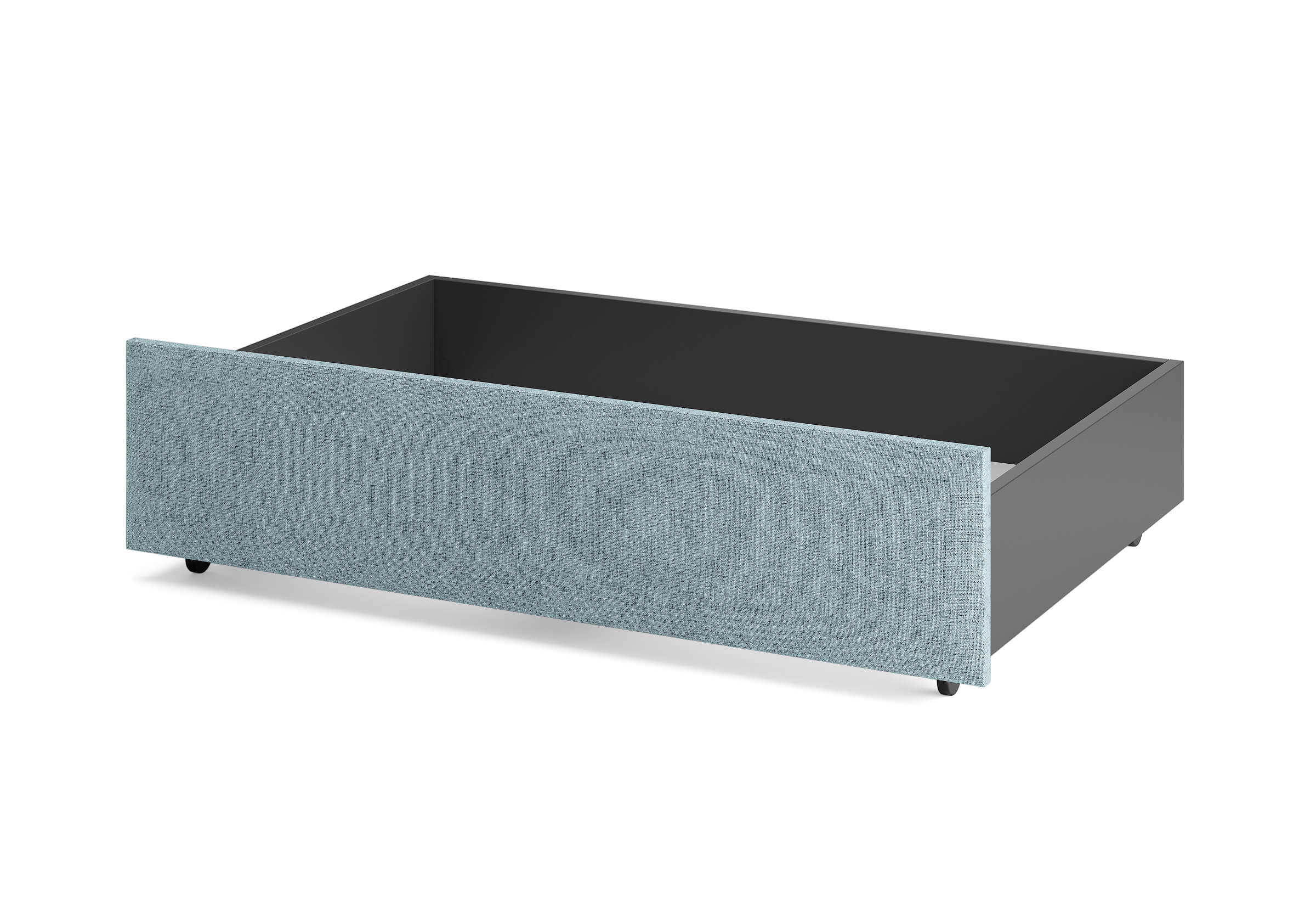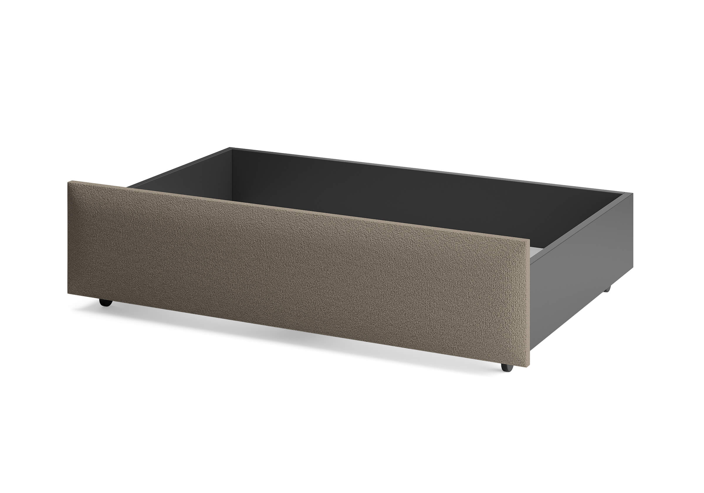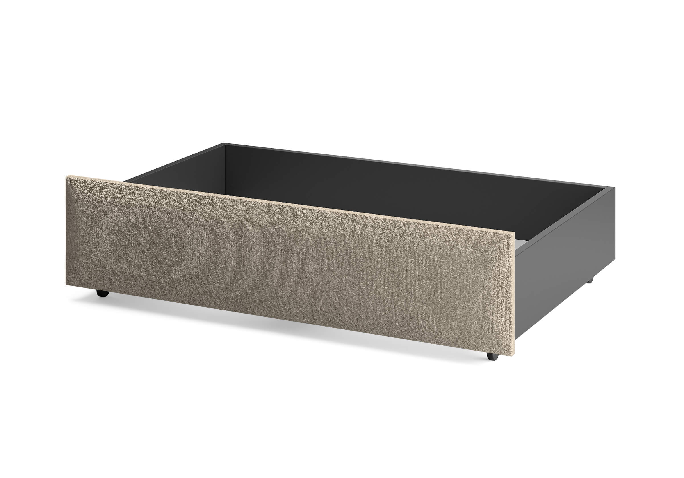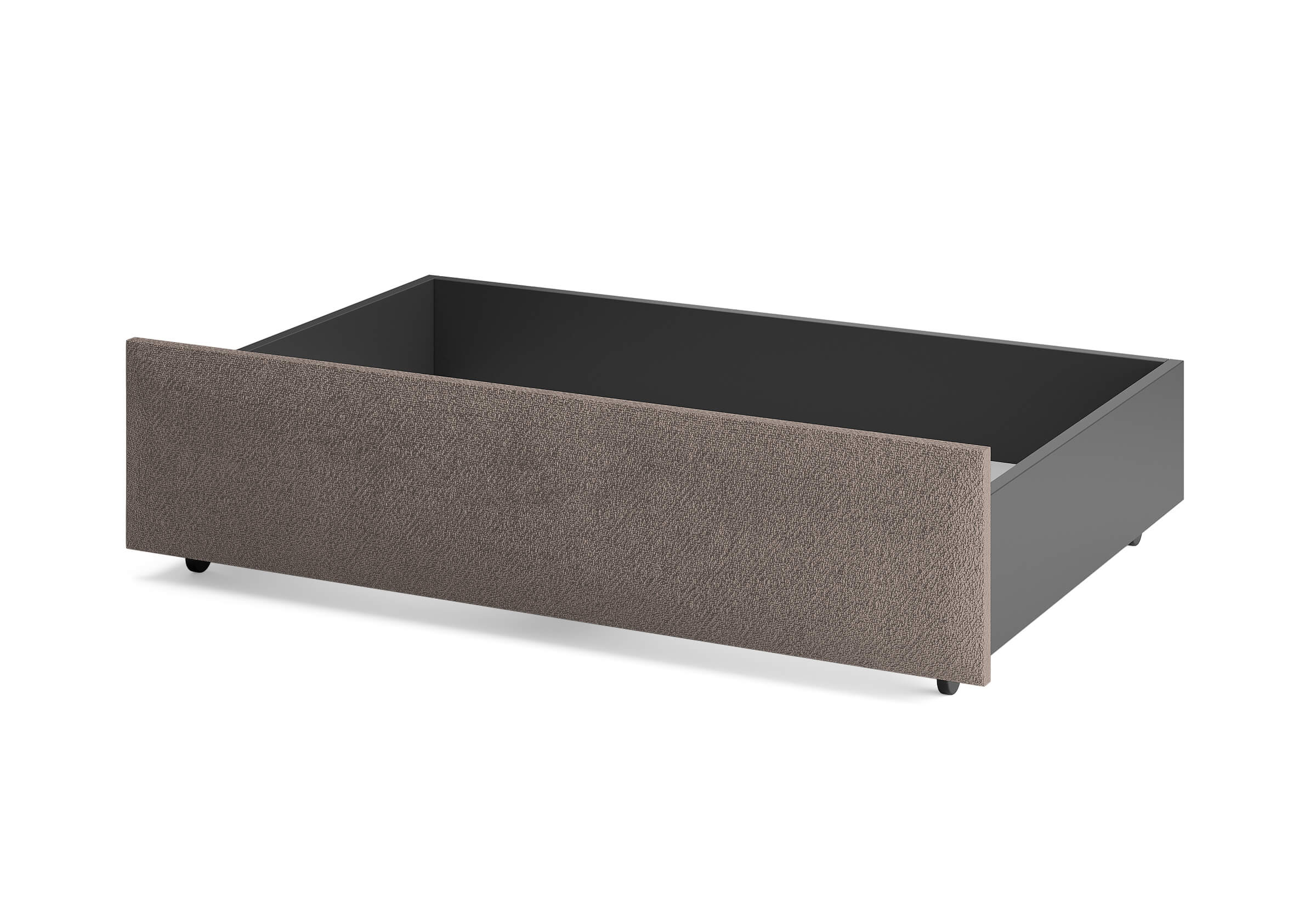 Ящик для хранения в ткани — лаконичное и функциональное решение для интерьера в современном, скандинавском и стиле минимализм. Ящики c мягкой обивкой фасада идеально сочетаются с кроватями Hanna и Julia, являются их функциональным дополнением — местом хранения. Ящики позволяют задействовать пространство под кроватью, не загромождая спальню. Они мобильны, их легко выкатывать и задвигать, что удобно для быстрого доступа к вещам, а также легкой уборки под кроватью. Фасад ящика мягкий, выполнен в тканевой обивке. Материал исполнения такой же как у кроватей Hanna, Julia — практичная рогожка багама. Корпус – ЛДСП графит. Надежные, поворотные колесные опоры с радиусом поворота 360 градусов.